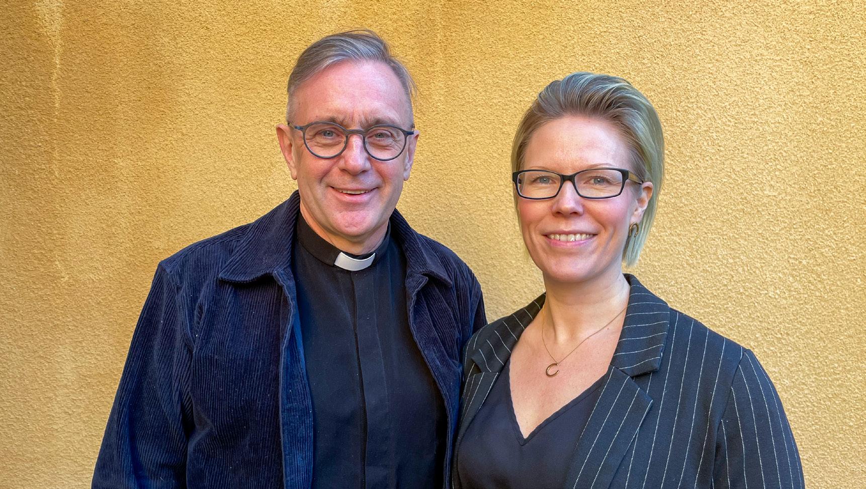 Att skriva musik är roligt men ingen lek. Kyrkoherde Anders Lennartsson har studerat psalmernas sjungna teologier och knådar ord och melodier tillsammans med kantor Jenny Nordström. De gör det bra, båda har fått Anders Frostenssons stipendium för textförfattande. FOTO: CATHRINE GUSTAVSSON