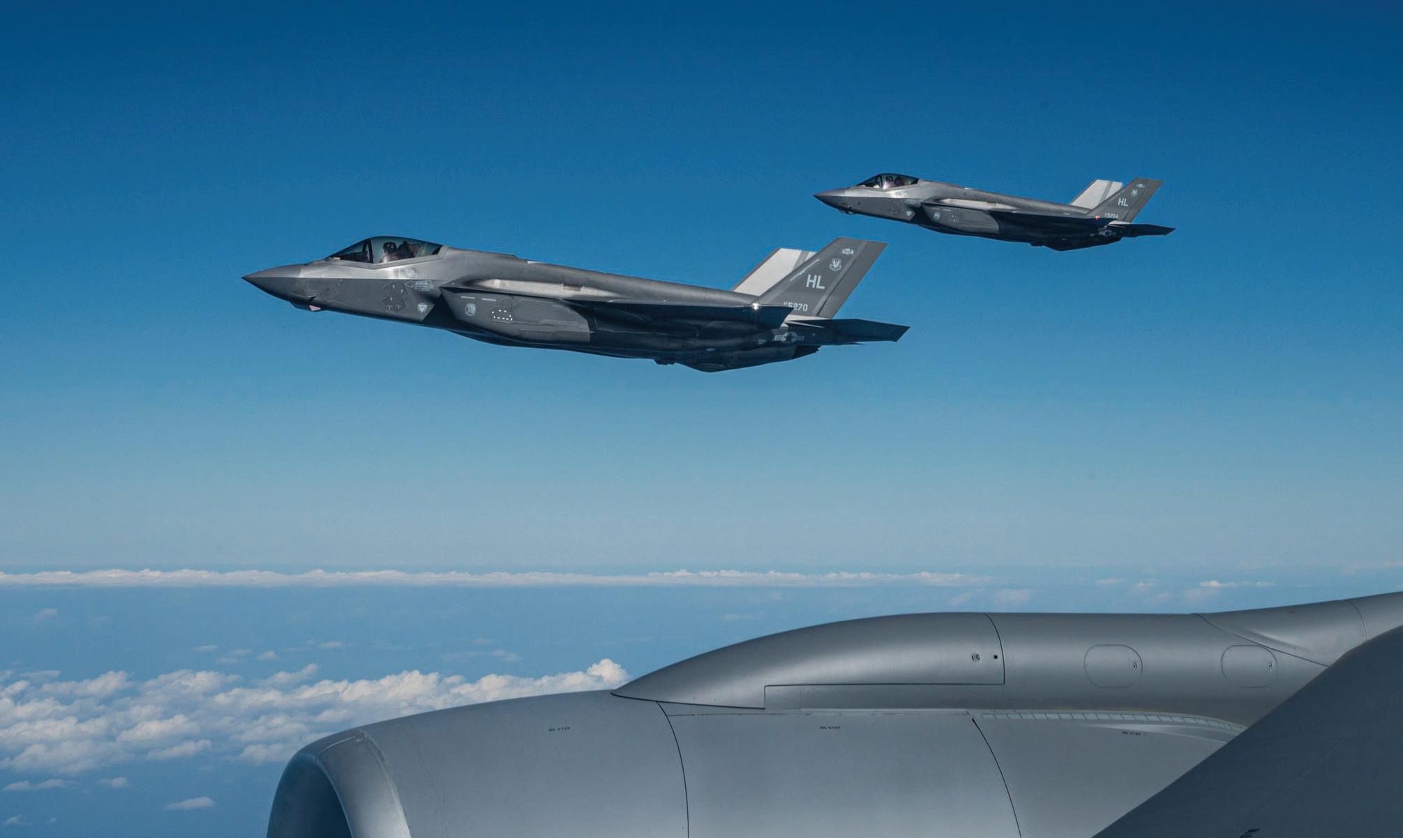 US Air Force F-35s operate near Kadena Airbase, Japan.