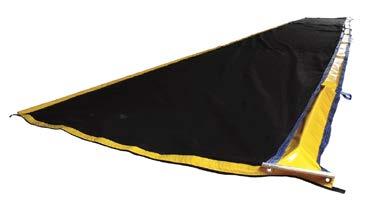 A non-woven geotextile skirt below the float chamber restricts water flow and allows the suspended sediment to settle. A PVC coated chain pocket is attached to the bottom of the geofabric skirt to provide sufficient ballast to keep it taut.