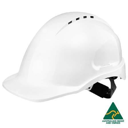 The Narrow Brim, vented hard hat provides head protection that conforms to Australian Safety Standards.
