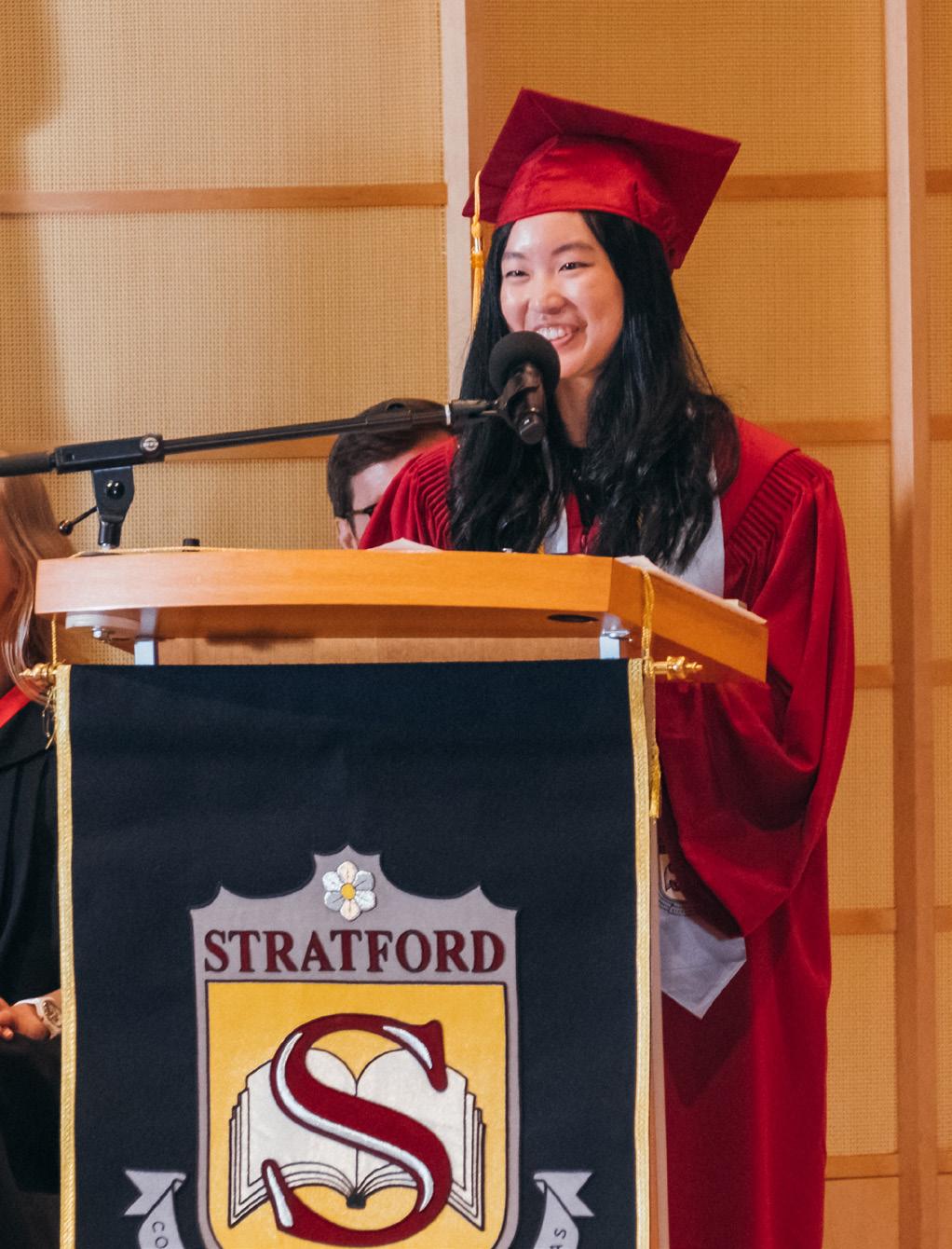 I began by saying thank you to the faculty and our parents. I would like to end by saying thank you to my classmates. One thing that is special about our grade is how we supported each other through all of these times—the good, the bad, and the weird. I am thankful for the random hallway conversations, learning more about which student you would sacrifice to aliens thanks to Mr. Brogan’s attendance questions, and our heartfelt sharing in advisory sessions. This graduating class is a special group of people. Our desire to be responsible for one another and foster inclusion is the legacy we leave at Stratford Hall. That, and being Mr. Pulfer’s first Chemistry class at Stratford Hall to activate the fire alarm.