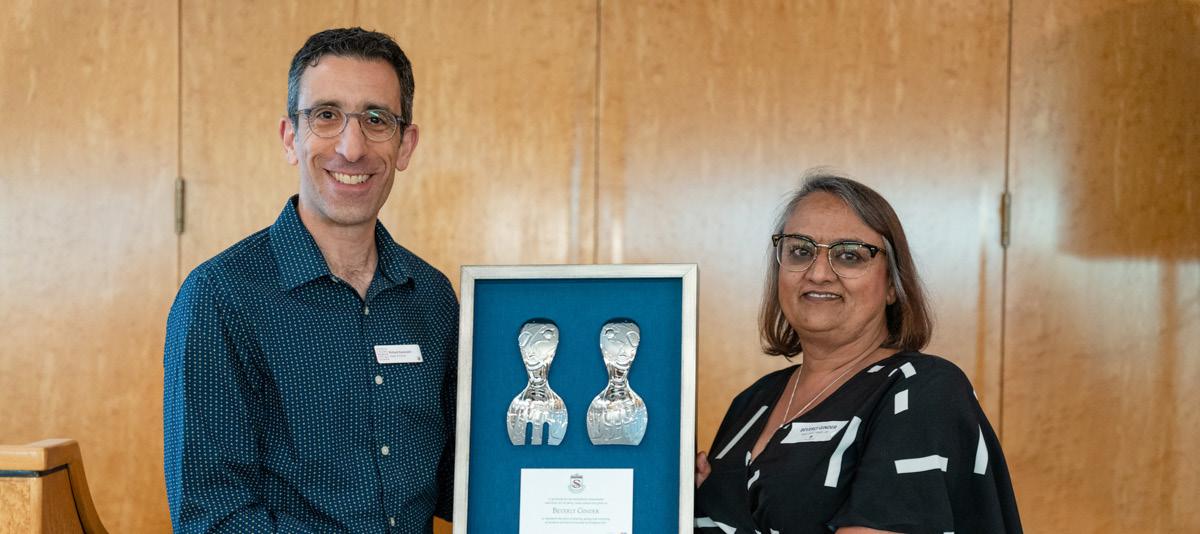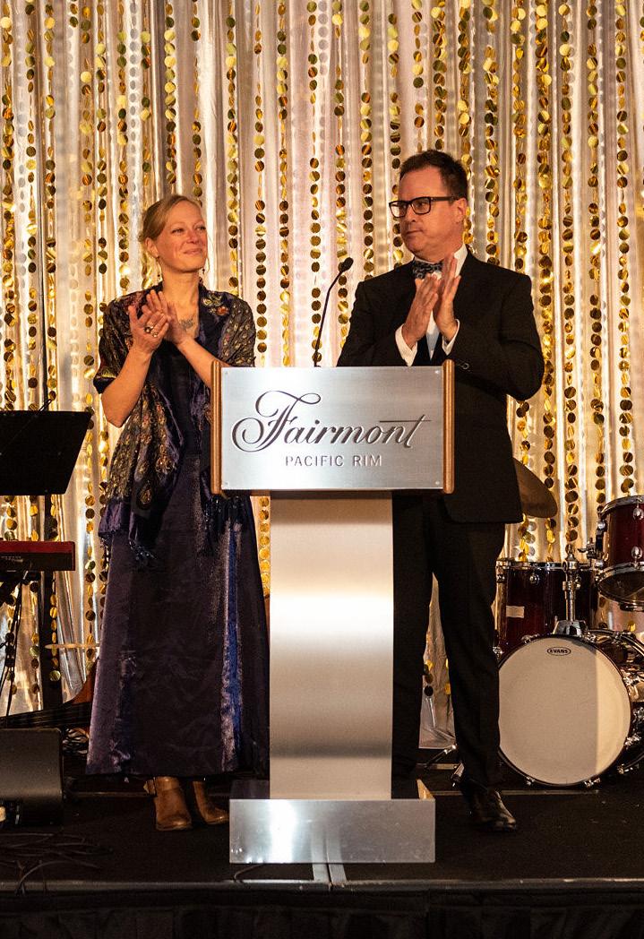 Grace Young receiving the Founders Award from Mrs. Cindy Leung and Mrs. Elaine Lee.