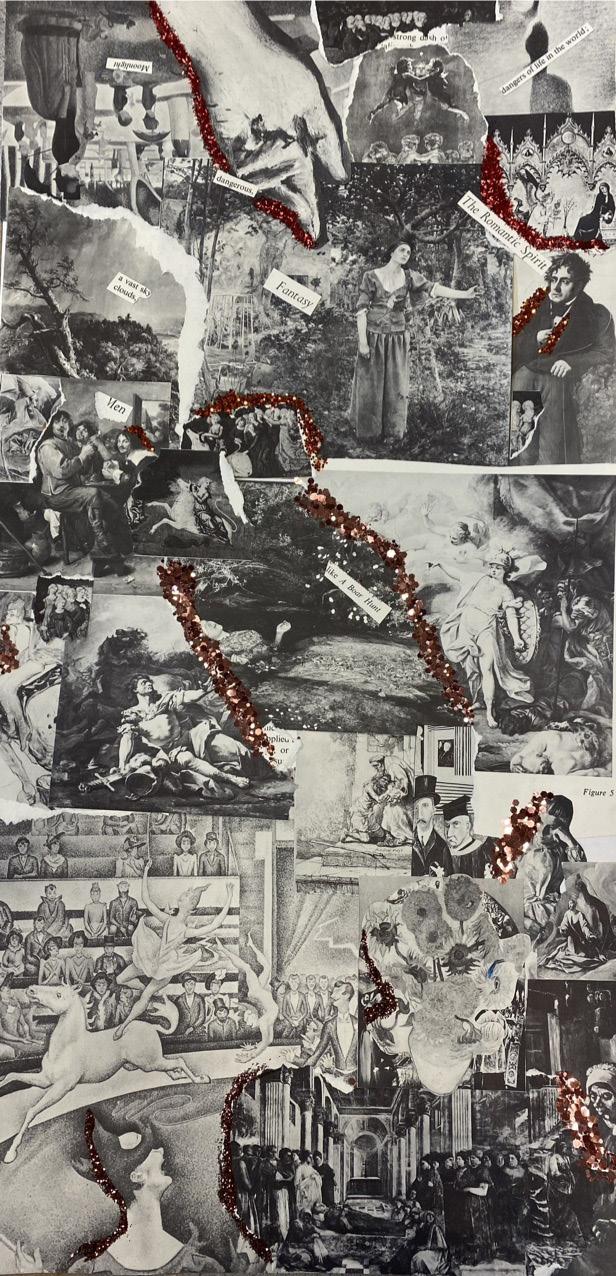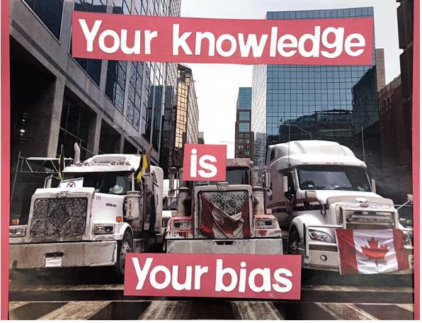 I wanted all of my pieces to explore the theme of daily experiences in real life. An artist’s work is from the expression of their thoughts and emotions. I made the art very personal with aspects of things that relate to who I am as a person. The emotions can be perceived in the art with different techniques I used to show my thoughts. I chose specific things that I liked and disliked as a way for me to have self-expression. My exhibit explores my favourite sport, music, social issues, nature and more. My pieces Your Knowledge Is Your Bias, Schoolwork Stress, New Driver and Manifestation display the duality of success and struggles. The artist who profoundly inspired me is Barbara Krueger. This artist uses the aesthetics of their artistic expression to convey their message in their art. A few of my pieces are similar to hers as I used the same layering techniques for my collages. I used several different art media such as sculpture, drawings, collages and paintings. I chose these as the message is conveyed to the viewer in many ways. The materials I used varied from basic acrylic paint on canvas to found object materials that were in my closet. Using several different materials represents the diversity and complexity of daily life as there is always a variety of experiences. I have exhibited my artwork in a way that the audience will find visually appealing. For my exhibit, I clustered the pieces that related more next to each other.