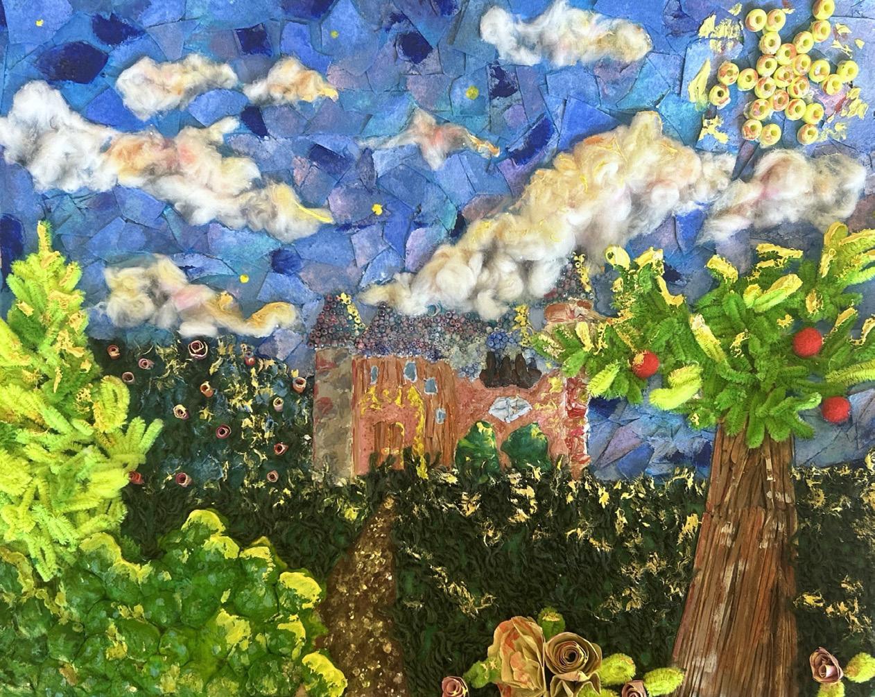For my exhibition I decided to explore the concept of dreams. I explored this subject through my own childhood daydreams, cloud gazing, the feel of dreamscapes, nightmares and relating it to the environment around me. Since the exhibition is called A Piece of Mind, I decided to make the exhibition more personal since daydreaming and dreams were a big part of my childhood, considering it had influenced my imagination and creativity. Dreams also have a variety of aspects which is what makes it interesting to explore. My work mainly revolves around the surrealist movement as that time period explored aspects of imagination and dream-like elements. I decided to work with more textured materials for this exhibition since it adds depth and dimension. I used a vibrant colour palette initially since I was going for a more euphoric feeling to my exhibition. However, that slowly changed as I also explored darker themes associated with dreams. I focused on nightmares and the feelings associated with it. Through this, I explored the notion of getting “caught up in our heads” and how too much daydreaming and reminiscing about your childhood can detach us from reality and the present. The colour palette started to contain darker values which added to the tone of the pieces. Throughout the exhibition, the notion of dreams expanded to explore all different aspects, the good and bad. Everyone has dreams and can daydream as an escape, which is what I want my exhibition to show.