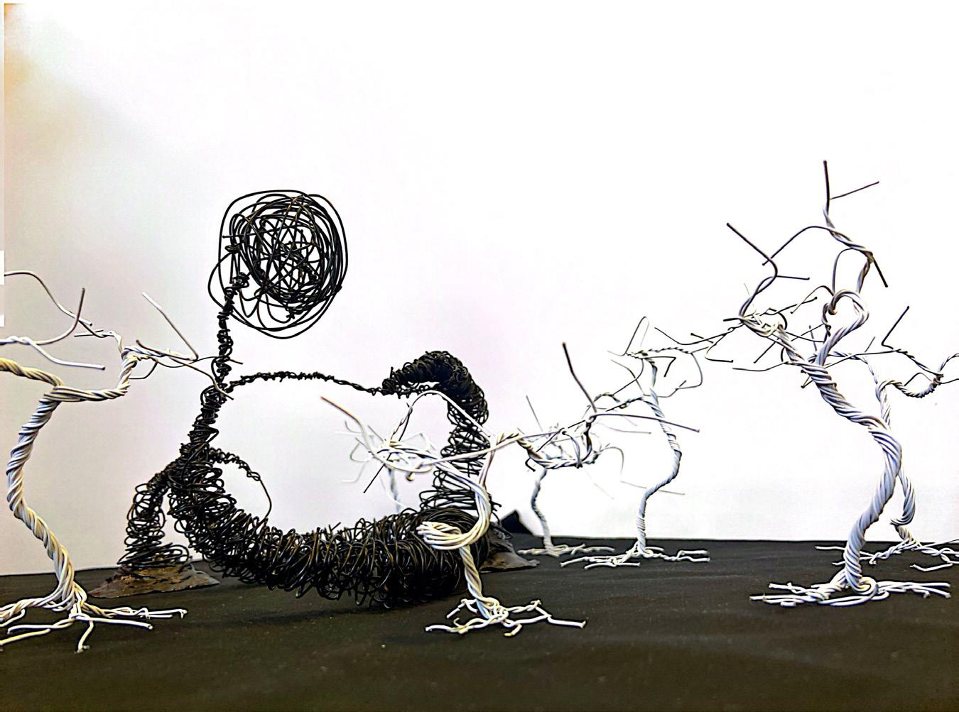 This exhibition delves into life after my 2021 diagnosis of emerging borderline personality disorder, aiming to highlight the impact of mental illness on daily life. Through diverse mediums, including 3D pieces like Genesis, I depict the multifaceted responses and coping strategies to mental health challenges. Escapist portrays the turmoil and distress my diagnosis caused, while Stay Out! illustrates the paranoia and fear that often accompany BPD, leading to isolation and depression. Two Crows on the Fence explores the importance of community in overcoming addiction, as feeding neighborhood crows provided a sense of belonging amidst struggles with socialization and isolation. Inspired by manga artist Jjunko Mmizuno, The Cuckoo Bug delves into the loss of self associated with BPD and explores gender identity struggles. Contrasting Mizuno’s themes of power and erotica, it reflects feelings of discomfort and displacement. Genesis shifts focus towards progress and healing, acknowledging the journey and reflecting on the struggles overcome. They serve as a testament to resilience and growth amidst the challenges of BPD.