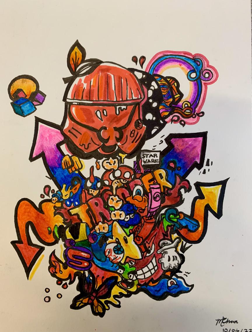 My body of work all follows themes of escapism, nostalgia, and imagination. My pieces are all related to significant things in my life. Characters, places, or things I used for escapism. I always focused on or used different things in the past through my childhood and even until present to escape stress, problems, and conflicts in my life. Throughout my life I’ve moved through different art styles, and the order of pieces follows each style I focused on throughout eras of my life, beginning with black and white pencil on paper, moving to bright colours and markers on construction paper, acrylic on canvas, then finally digital mediums. By approaching my own life with reflection, I translated my personal methods of escapism to art. To viewers the art should be able to draw them in with the vibrant colours and details, distracting them from the outside world and allowing them a taste of how I felt as a kid with escapism.