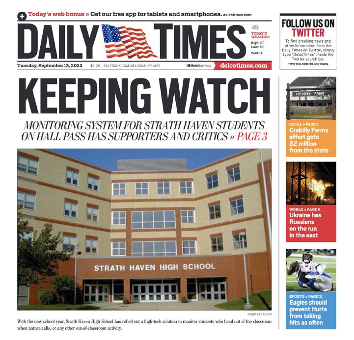 The September 13 Delco Times ran a front page news story on the introduction of the e-hallpass to Strath Haven. The Times received passionate Facebook responses to the change, including parents who likened it to “1984.”