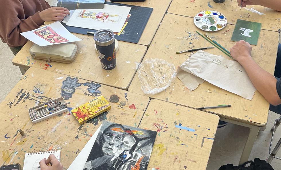 CREATIVE SPIRITS • TOP LEFT: AP Art and Design 2D students’ style and preferences are distinct, yet they come together during the class to branch out and improve.