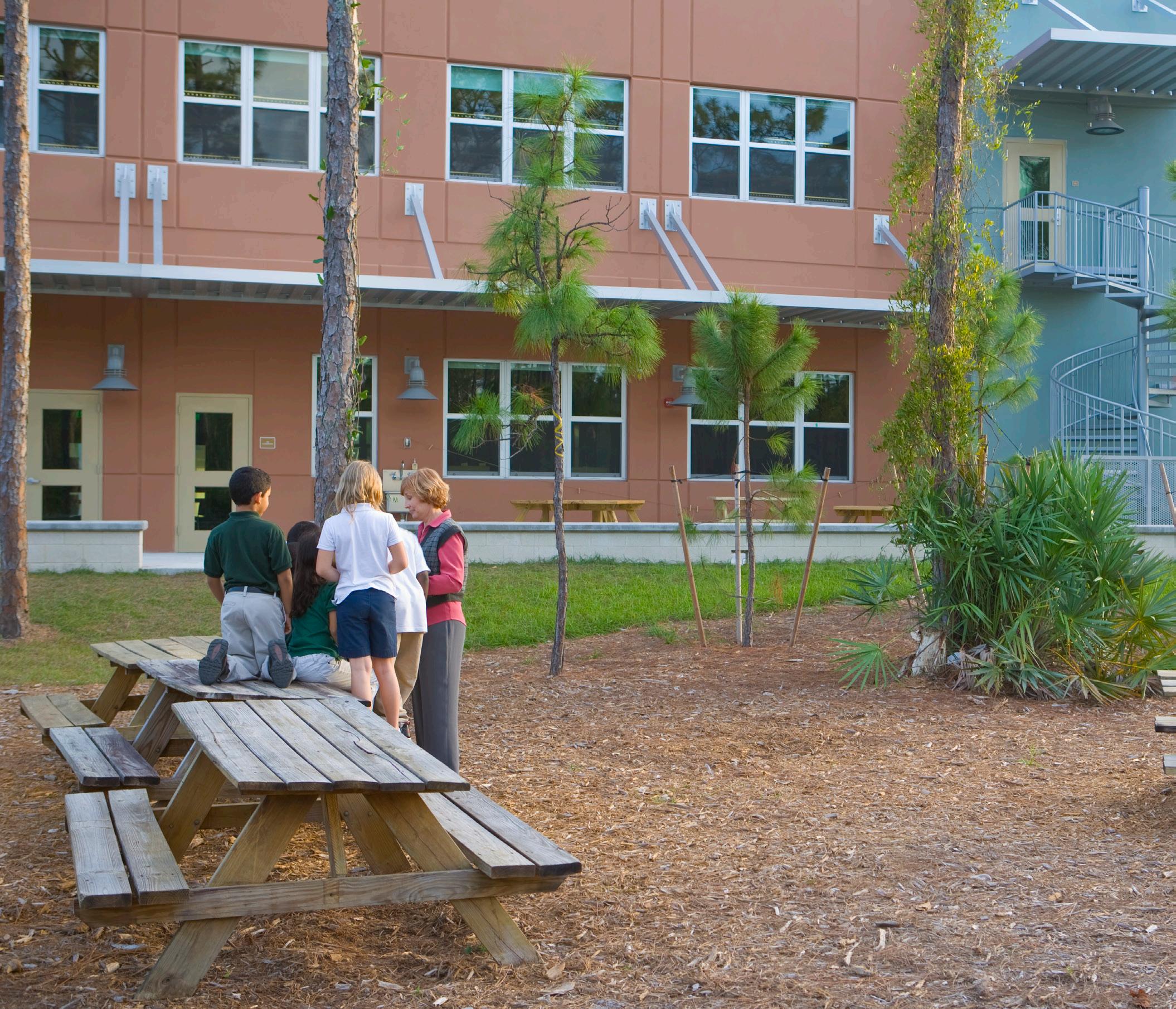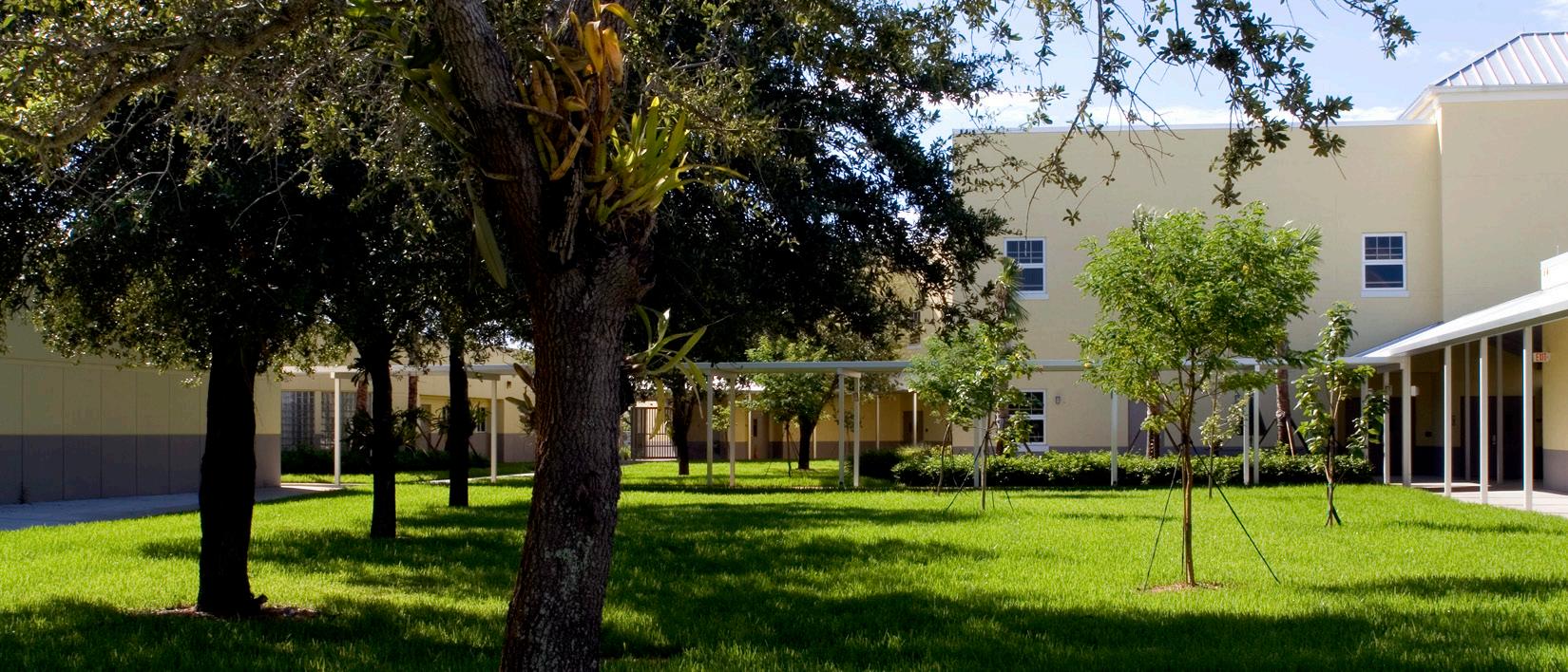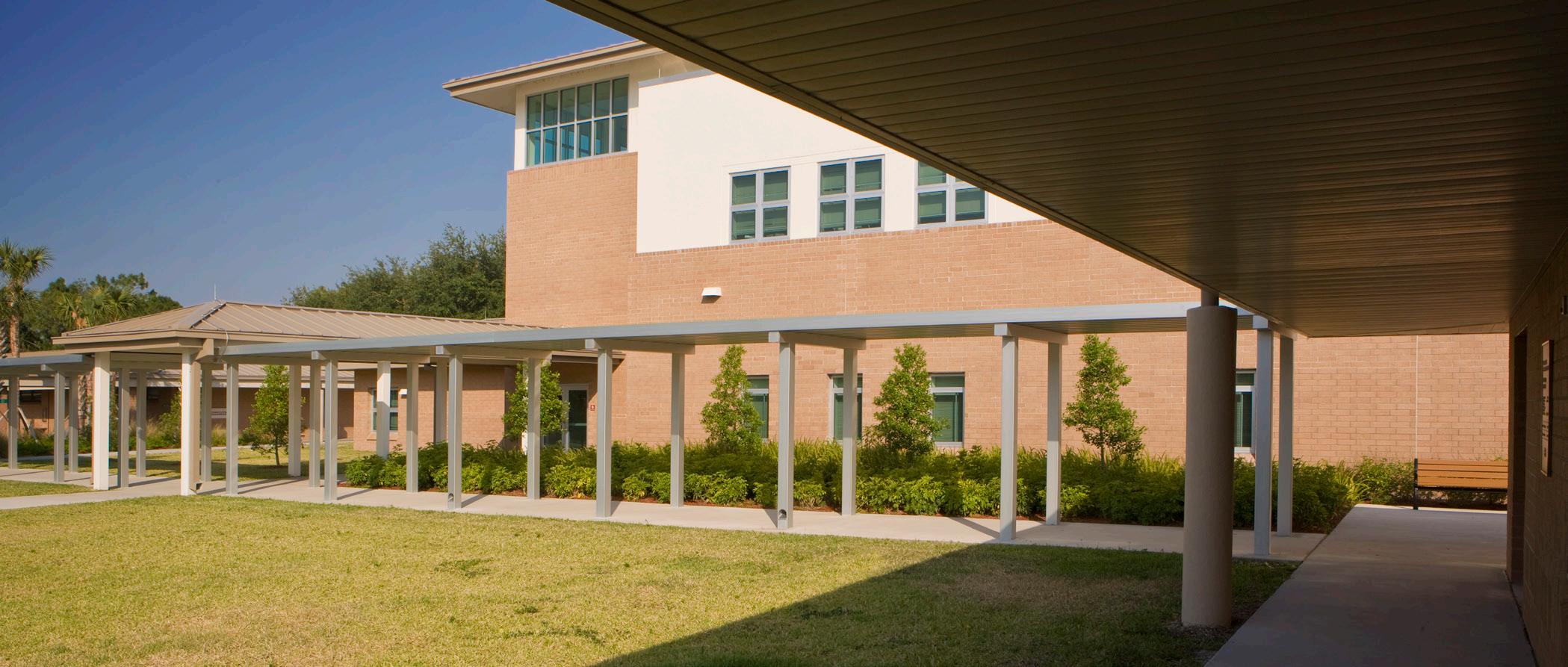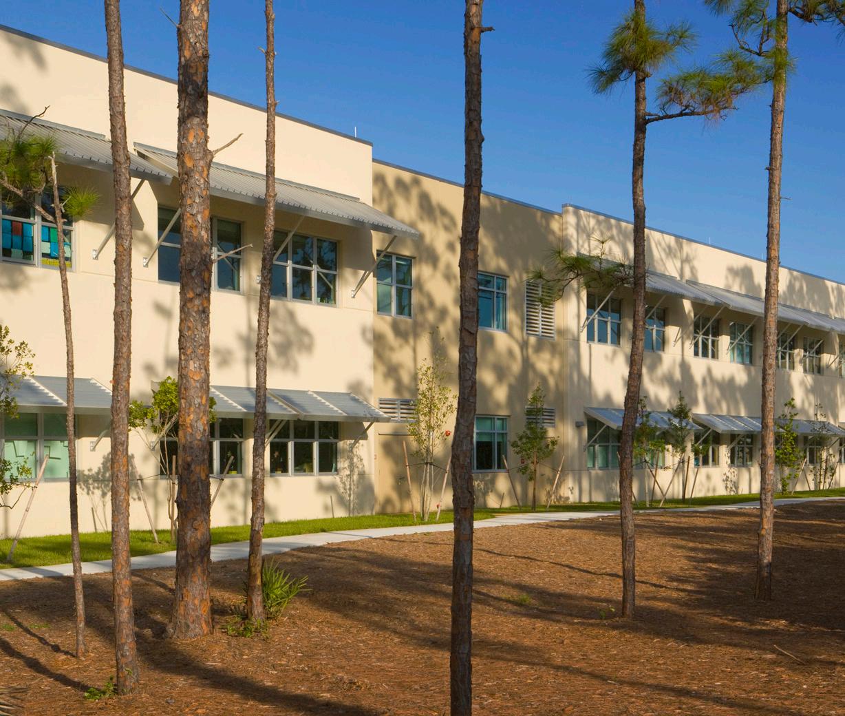Pine Jog Elementary School was the first LEED® Gold Certified public school in the State of Florida. The education curriculum utilizes the entire Pine Jog Nature Preserve with designed learning places in and around the structures that bring the outdoors inside and vice versa. These opportunities include butterfly gardens, water re use demonstration areas, understanding solar paths and energy through the creation of an interactive sun dial area, and biological life cycle study areas.