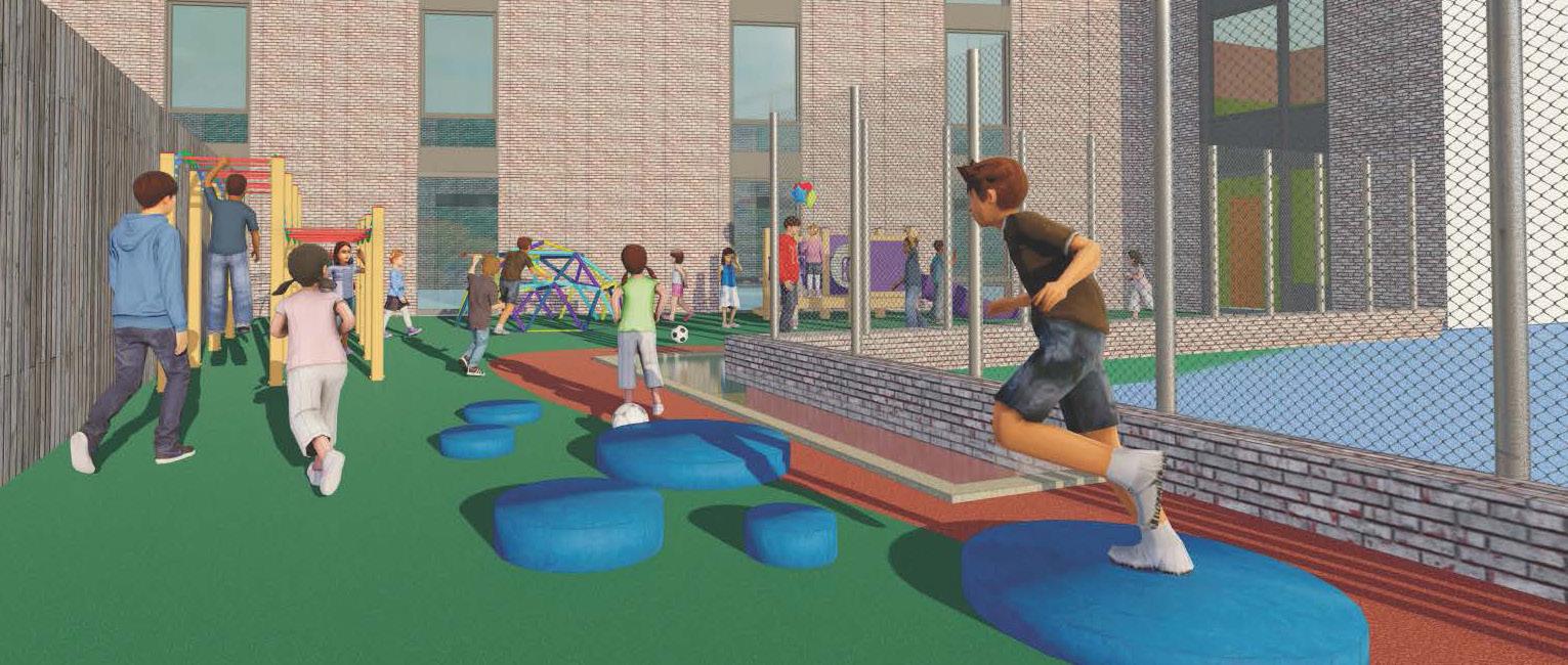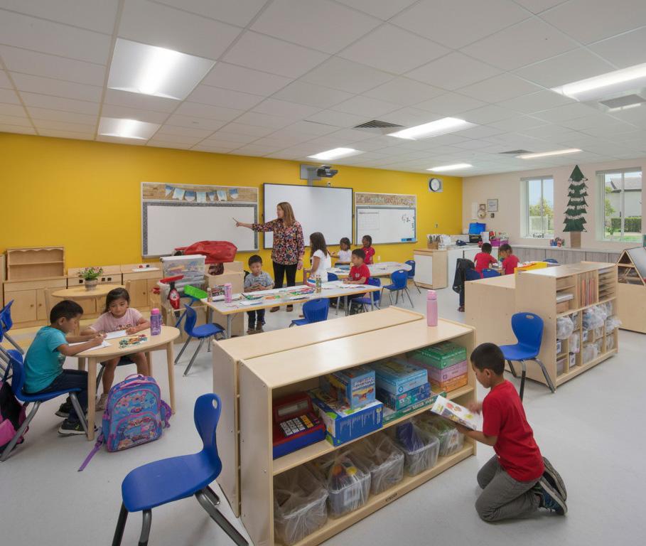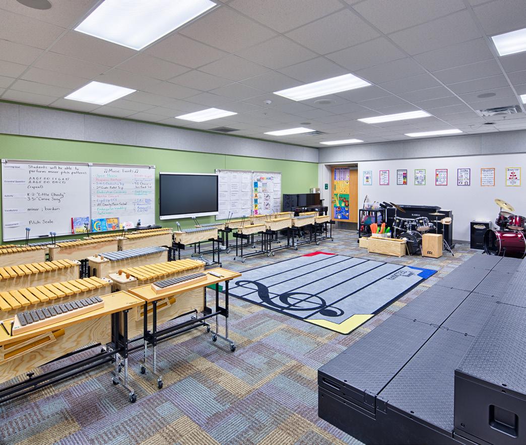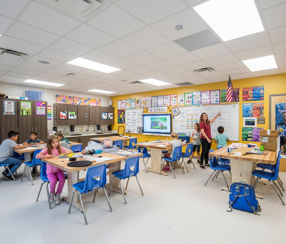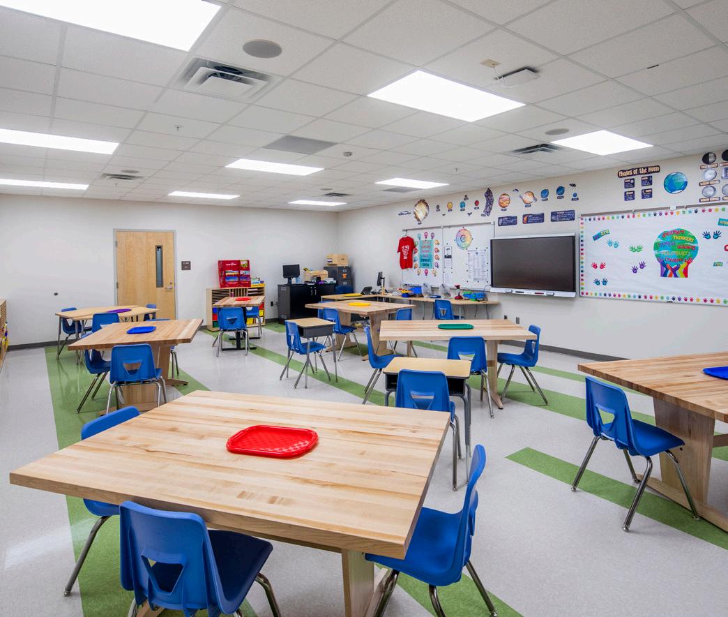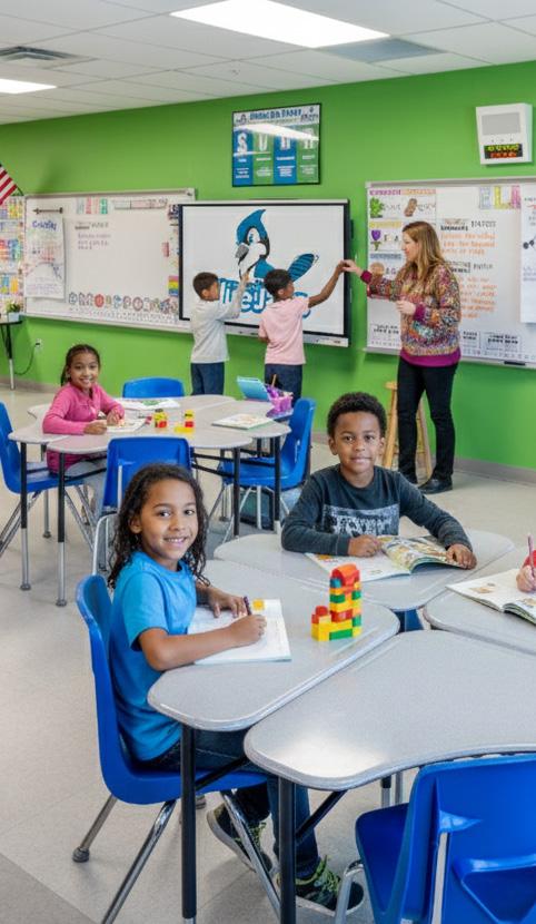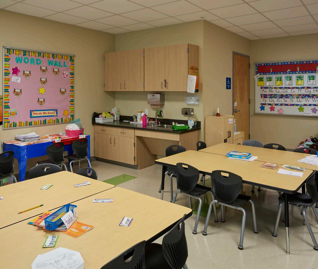 Minnie J. Niblack Elementary School is a fast-track replacement utilizing a customized Stratus prototype. The original 70-year-old campus, underenrolled with fewer than 300 students, will be replaced with a twostory design accommodating 525 student stations. The compact footprint maximizes the limited site while minimizing wetland impact. Its increased visibility reinforces the school’s historic role and marks it as the first built under the new Columbia County Schools referendum. The design includes inclassroom bathrooms with shared vestibules, campus-wide wireless, and state-of-the-art technology—transforming the school into a secure, flexible, future ready facility tailored to local pedagogy.