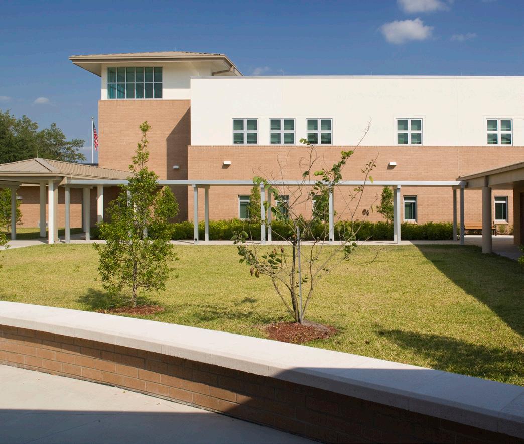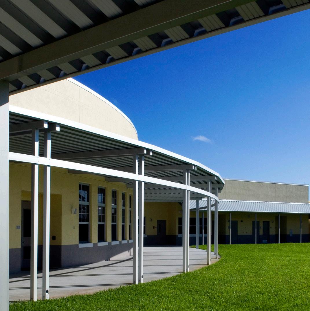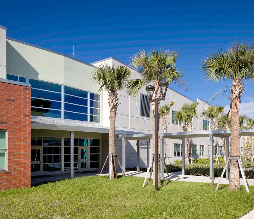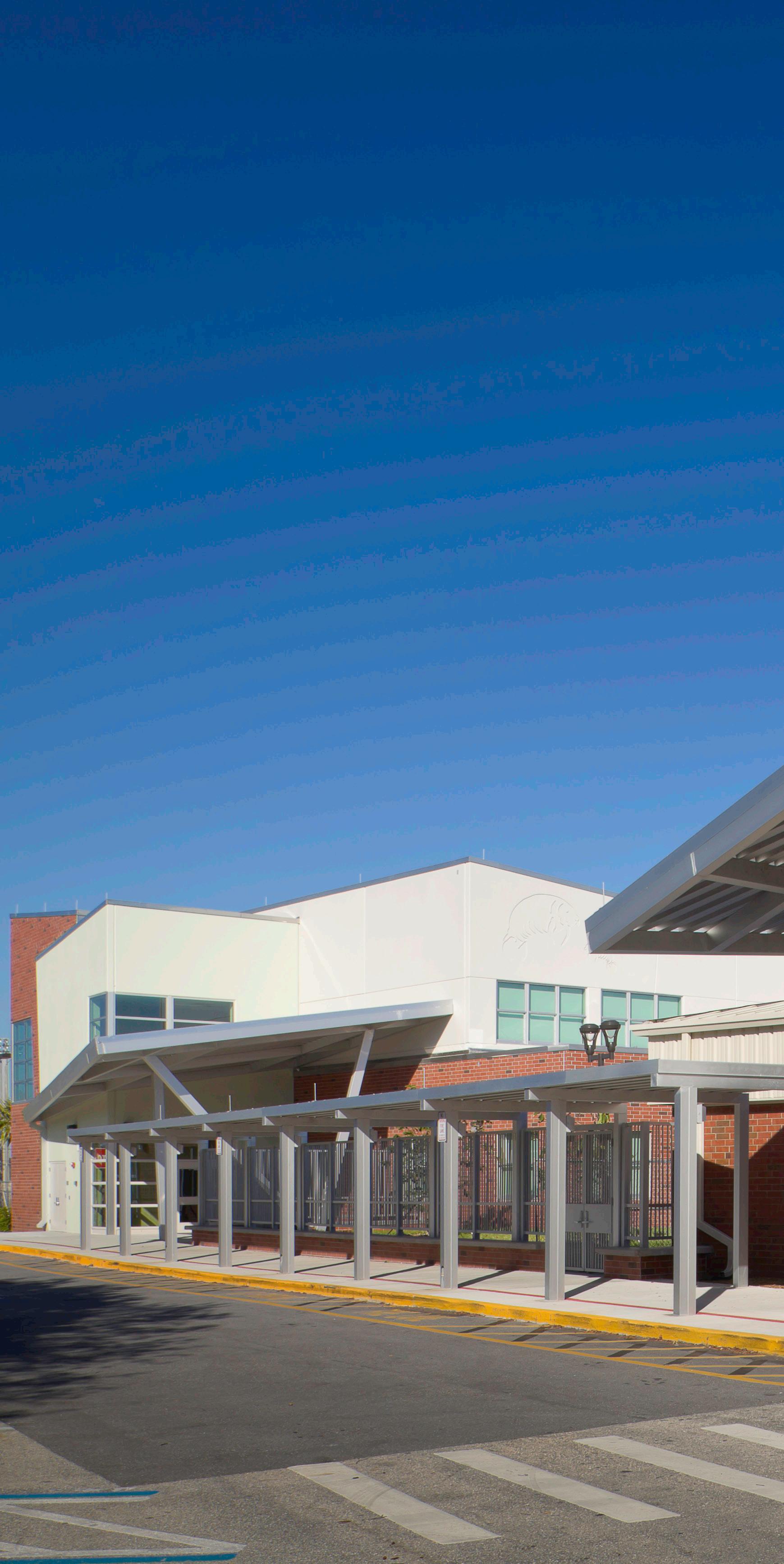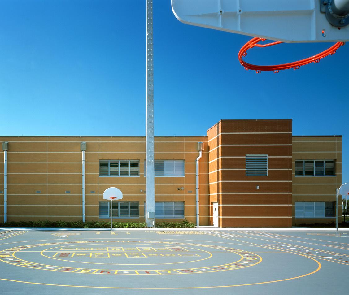 The school was designed with two onestory structures: a 103,000 SF academic “core” building and a 1,500 SF field structure. The core contains large multi-purpose spaces for art, music, dining, and media events and is surrounded by a perimeter of “universal” classrooms – modules designed to accommodate programs including kindergarten, primary, intermediate, exceptional education, and skills laboratories. Structurally upgraded, the facility further serves as a hurricane shelter. Sunrise Park Elementary is located on a site with a middle school and a nature preserve. Stratus designed a campus setting while also providing amenities for the middle school and resolving traffic congestion. New amenities include a physical education pavilion, two baseball fields, and basketball courts.