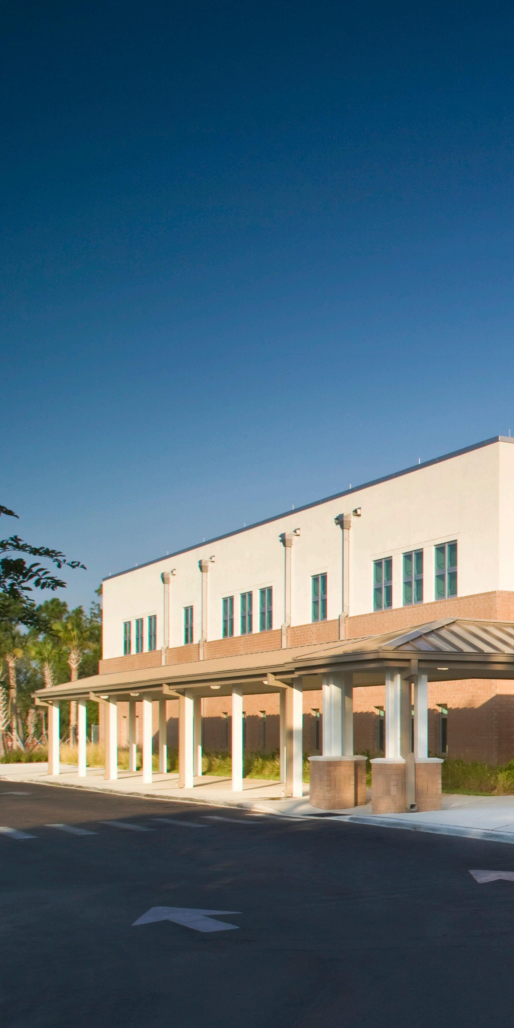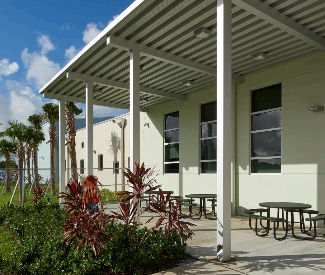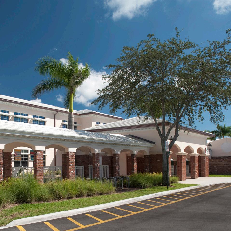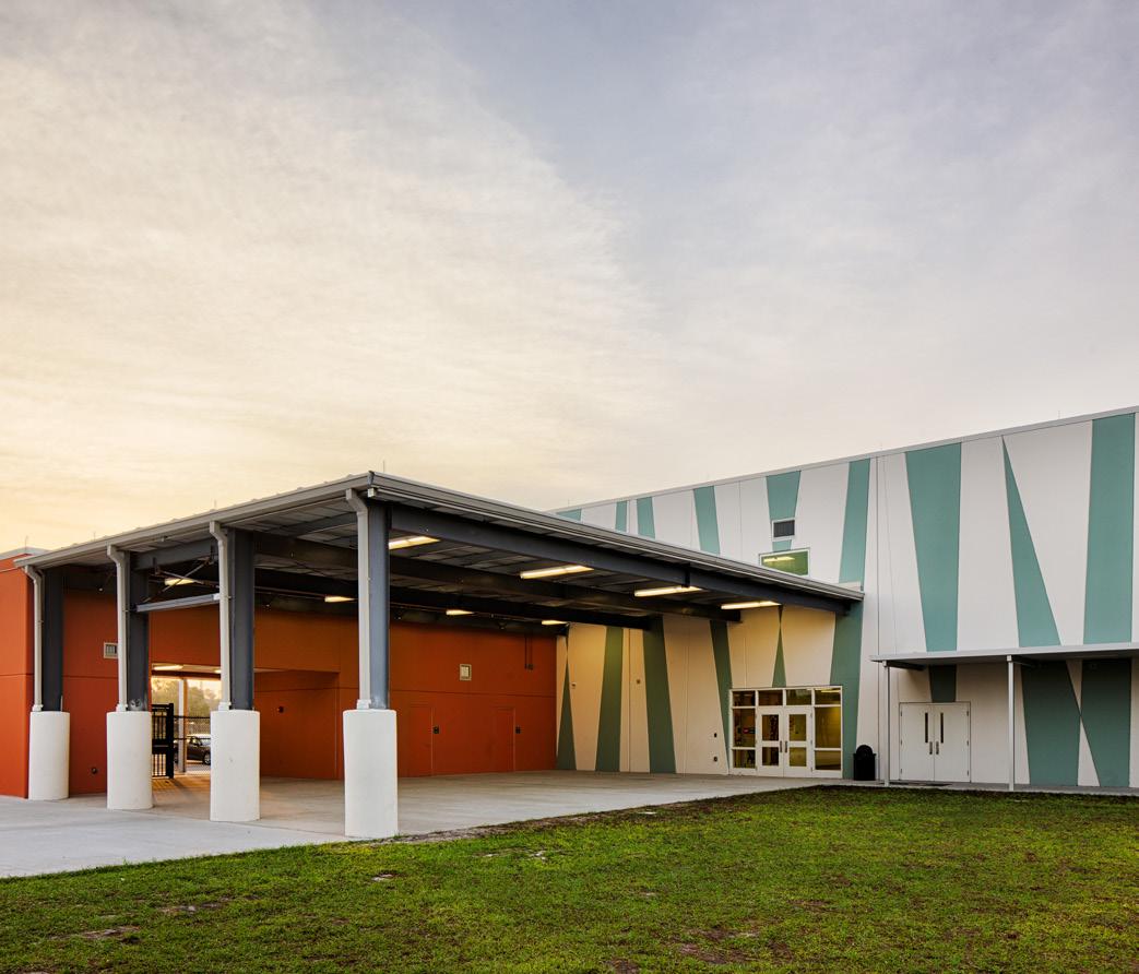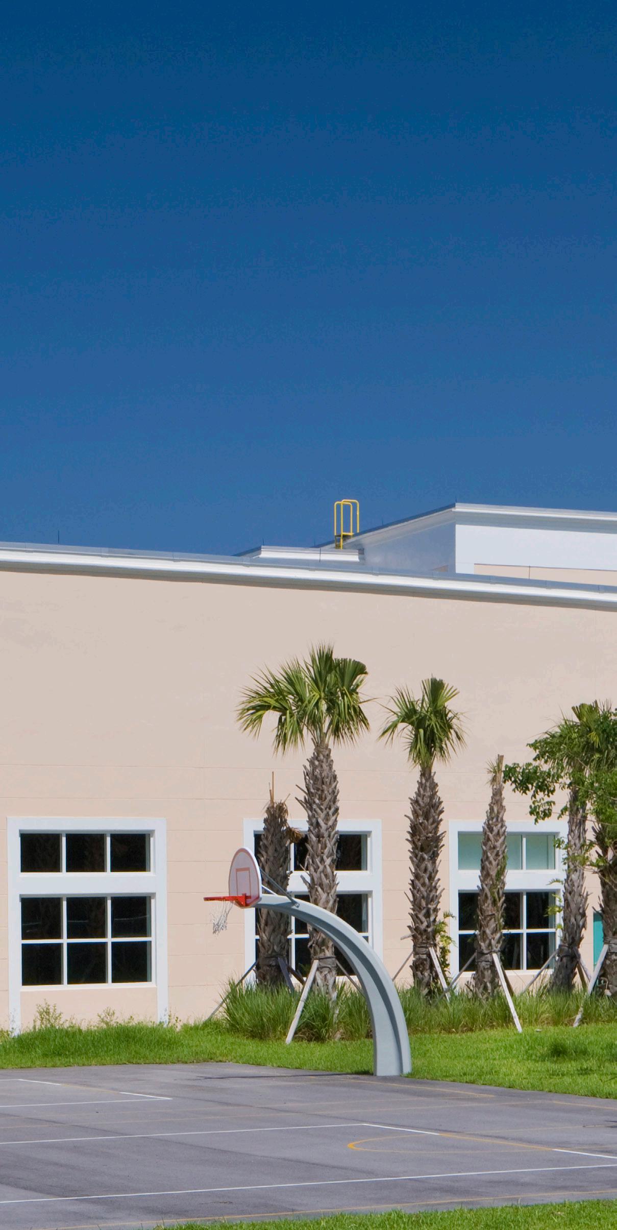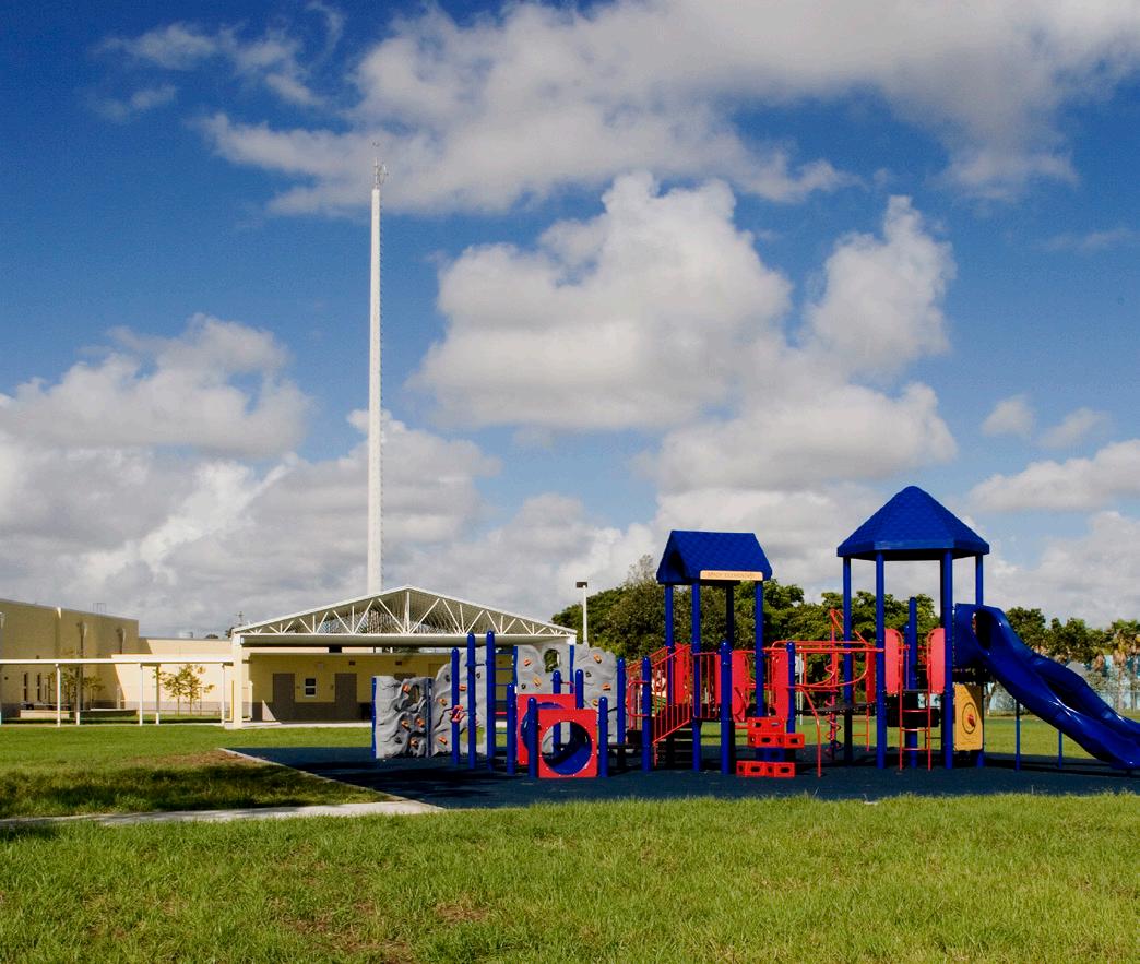 The school was designed with two onestory structures: a 103,000 SF academic “core” building and a 1,500 SF field structure. The core contains large multi-purpose spaces for art, music, dining, and media events and is surrounded by a perimeter of “universal” classrooms – modules designed to accommodate programs including kindergarten, primary, intermediate, exceptional education, and skills laboratories. Structurally upgraded, the facility further serves as a hurricane shelter. Sunrise Park Elementary is located on a site with a middle school and a nature preserve. Stratus designed a campus setting while also providing amenities for the middle school and resolving traffic congestion. New amenities include a physical education pavilion, two baseball fields, and basketball courts.