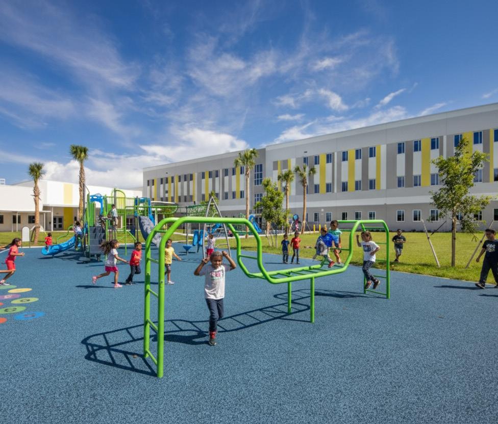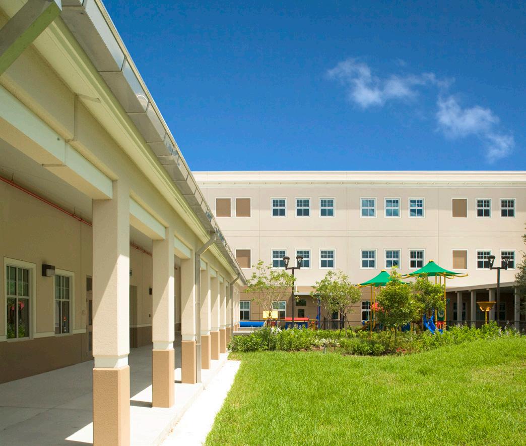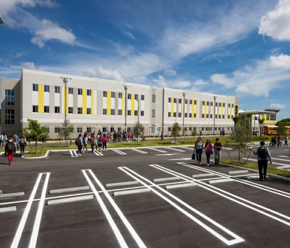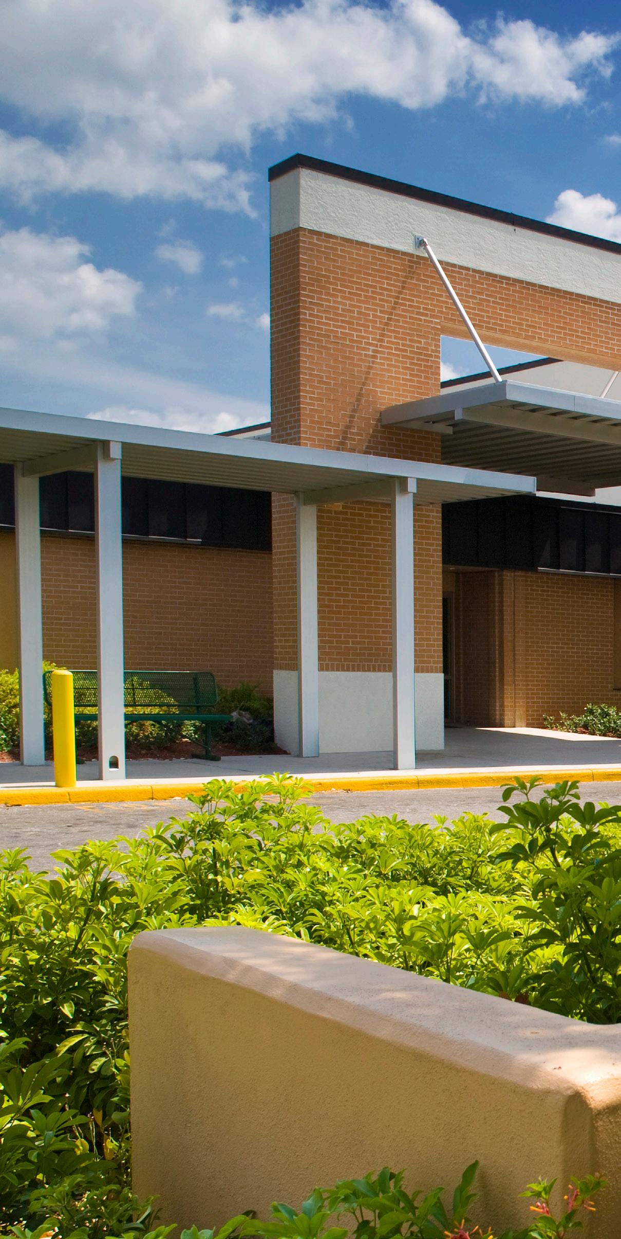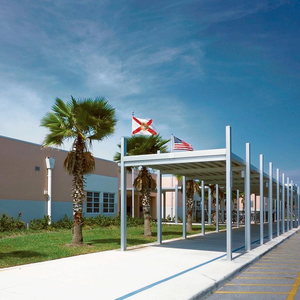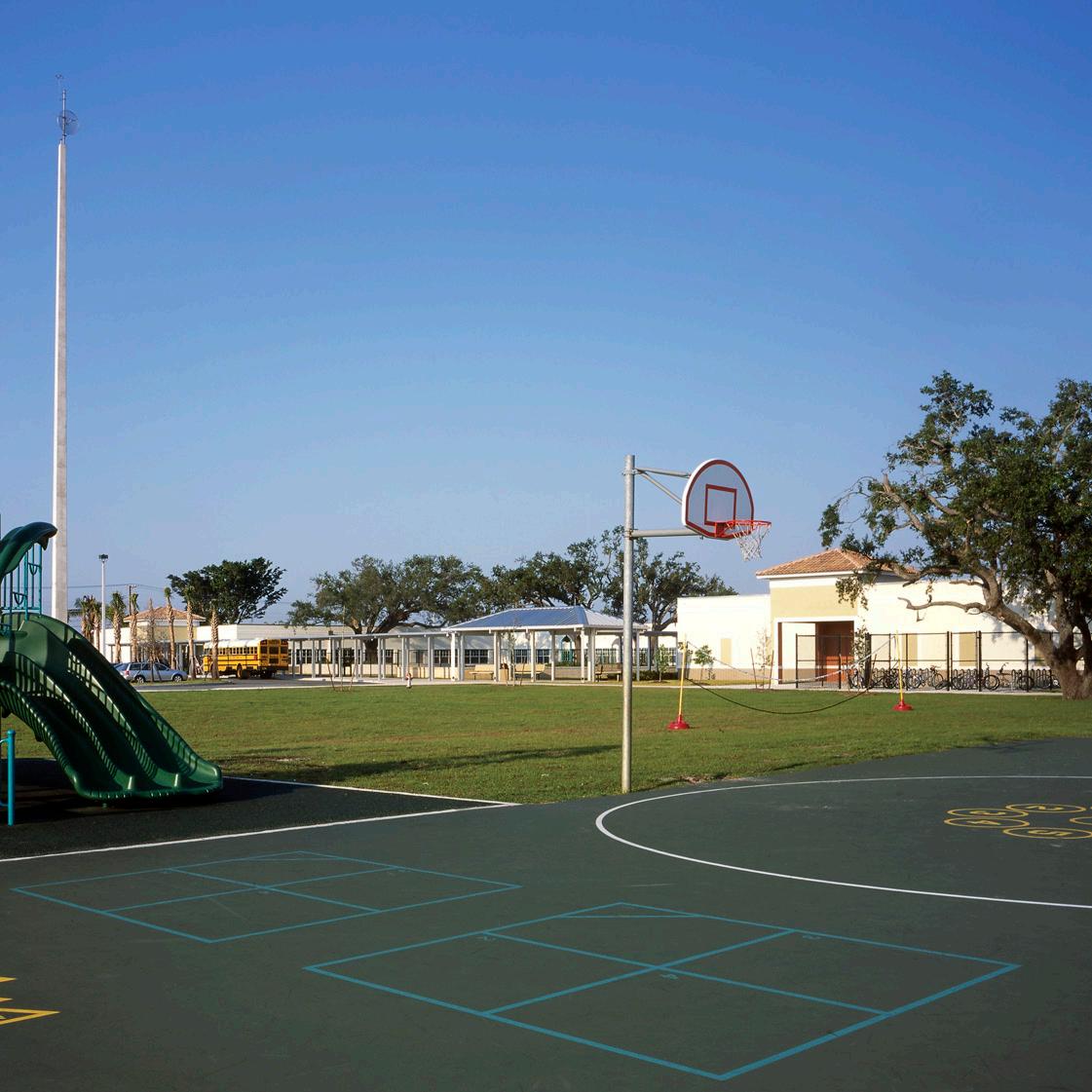 The school was designed with two onestory structures: a 103,000 SF academic “core” building and a 1,500 SF field structure. The core contains large multi-purpose spaces for art, music, dining, and media events and is surrounded by a perimeter of “universal” classrooms – modules designed to accommodate programs including kindergarten, primary, intermediate, exceptional education, and skills laboratories. Structurally upgraded, the facility further serves as a hurricane shelter. Sunrise Park Elementary is located on a site with a middle school and a nature preserve. Stratus designed a campus setting while also providing amenities for the middle school and resolving traffic congestion. New amenities include a physical education pavilion, two baseball fields, and basketball courts.