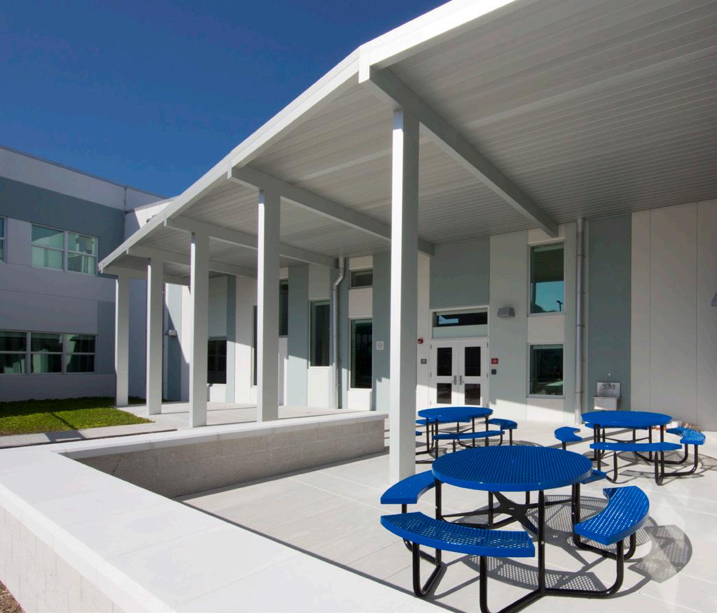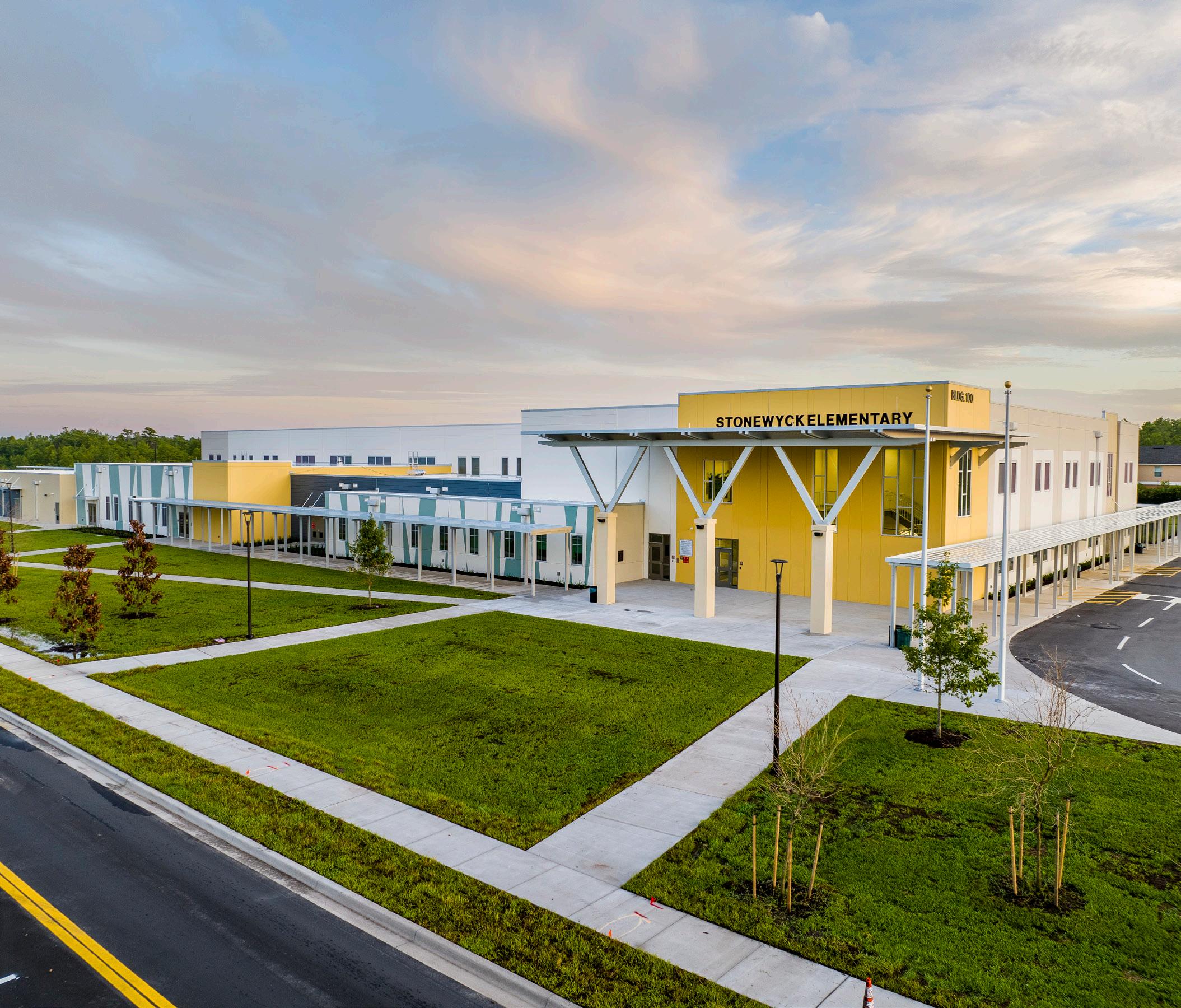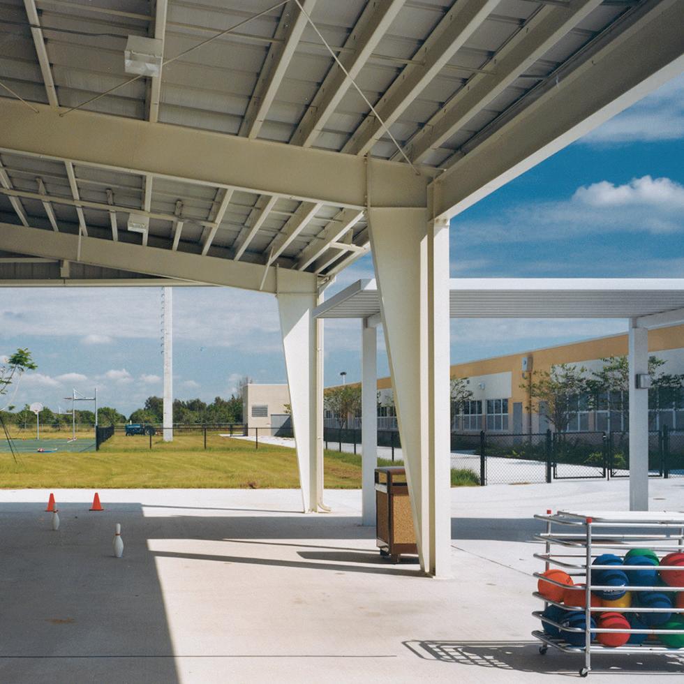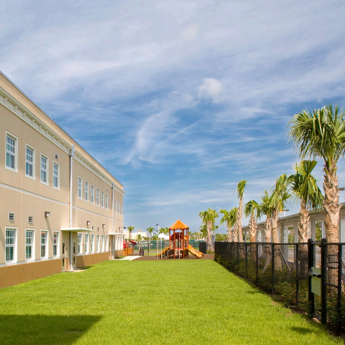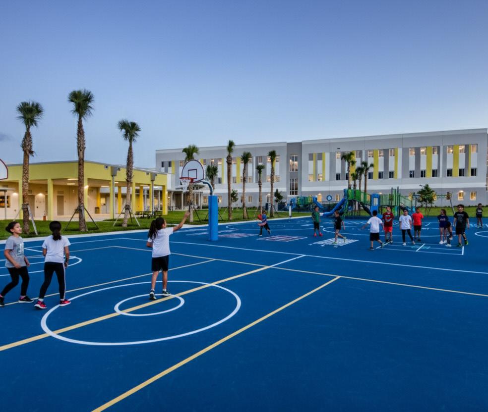 The school was designed with two onestory structures: a 103,000 SF academic “core” building and a 1,500 SF field structure. The core contains large multi-purpose spaces for art, music, dining, and media events and is surrounded by a perimeter of “universal” classrooms – modules designed to accommodate programs including kindergarten, primary, intermediate, exceptional education, and skills laboratories. Structurally upgraded, the facility further serves as a hurricane shelter. Sunrise Park Elementary is located on a site with a middle school and a nature preserve. Stratus designed a campus setting while also providing amenities for the middle school and resolving traffic congestion. New amenities include a physical education pavilion, two baseball fields, and basketball courts.