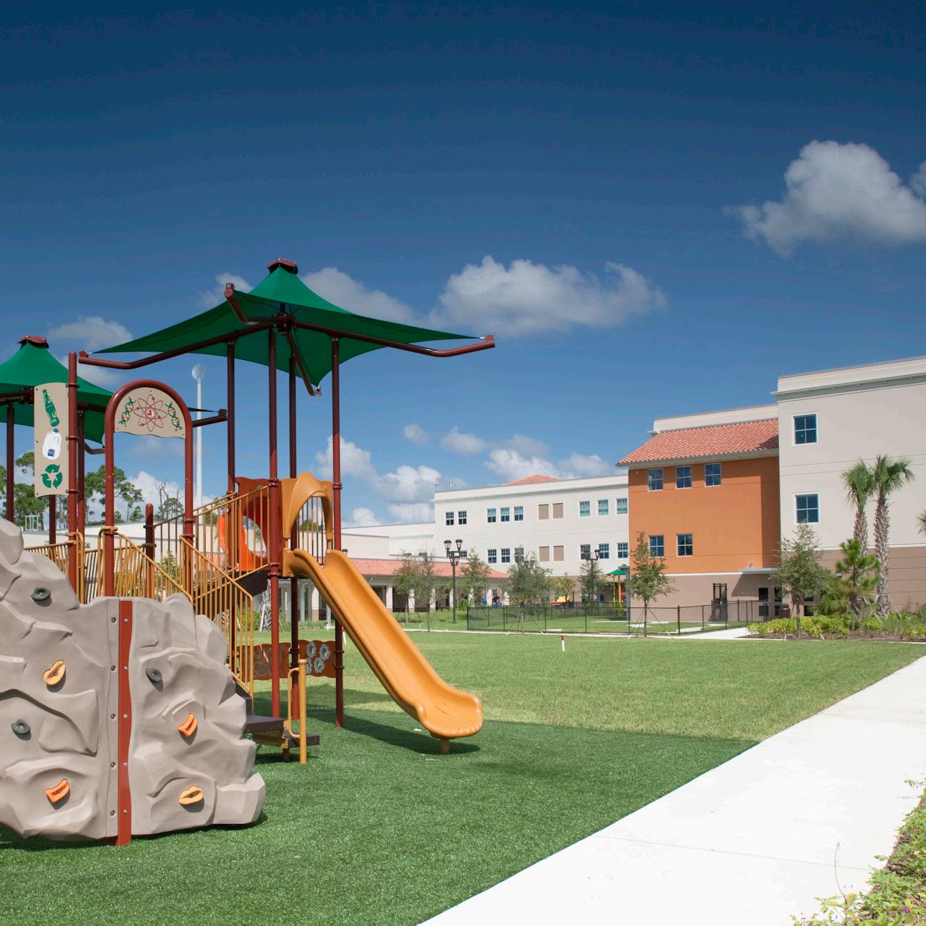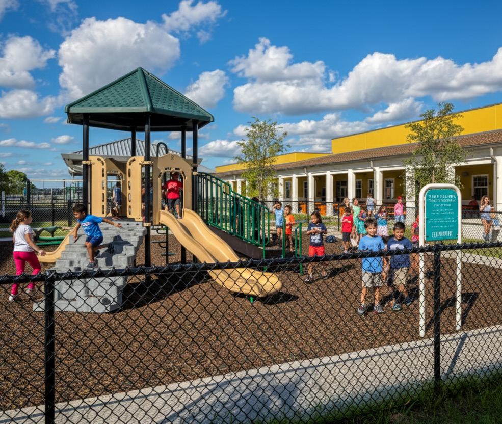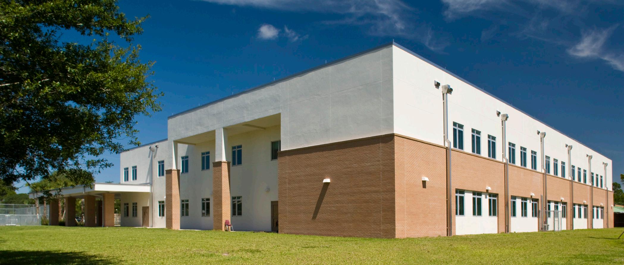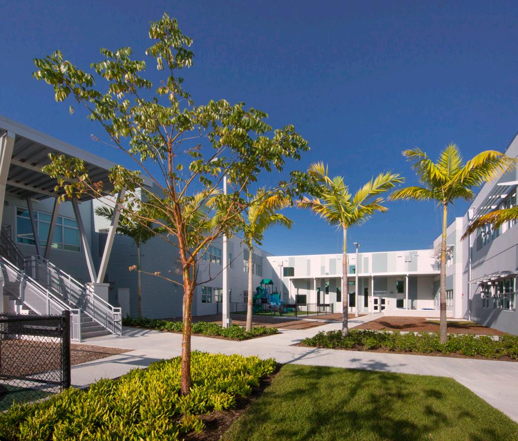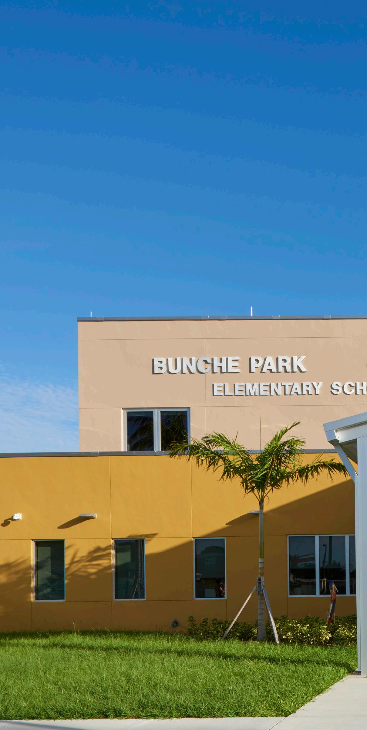 The school was designed with two onestory structures: a 103,000 SF academic “core” building and a 1,500 SF field structure. The core contains large multi-purpose spaces for art, music, dining, and media events and is surrounded by a perimeter of “universal” classrooms – modules designed to accommodate programs including kindergarten, primary, intermediate, exceptional education, and skills laboratories. Structurally upgraded, the facility further serves as a hurricane shelter. Sunrise Park Elementary is located on a site with a middle school and a nature preserve. Stratus designed a campus setting while also providing amenities for the middle school and resolving traffic congestion. New amenities include a physical education pavilion, two baseball fields, and basketball courts.
