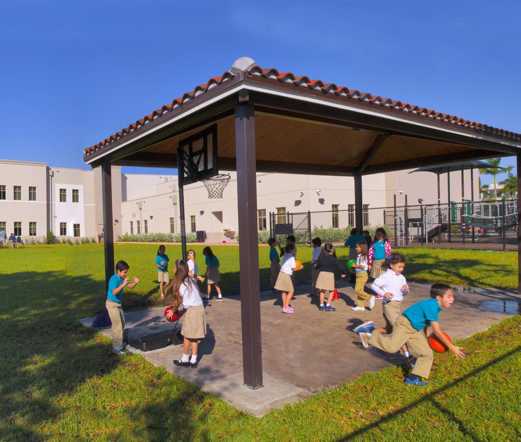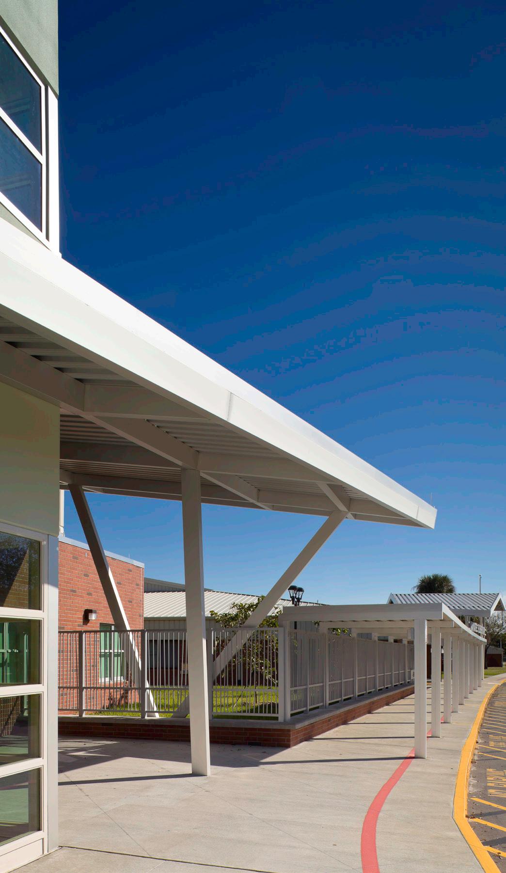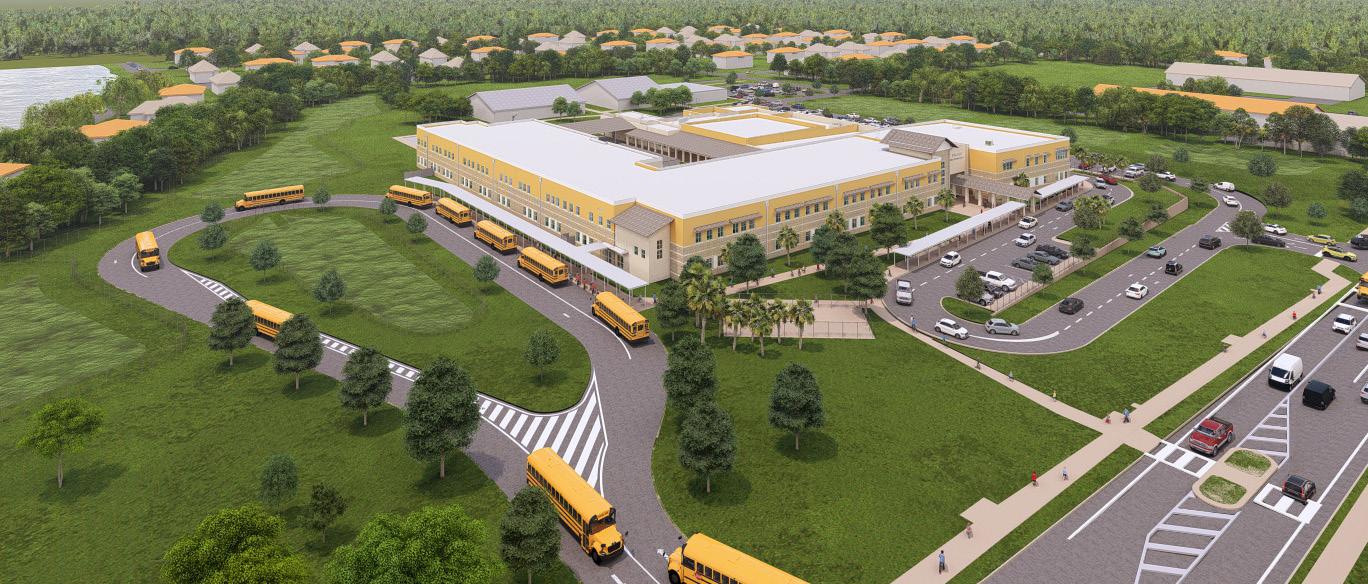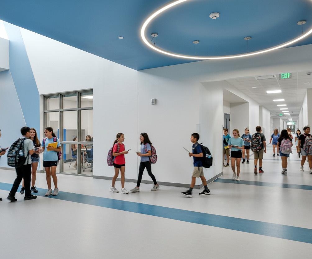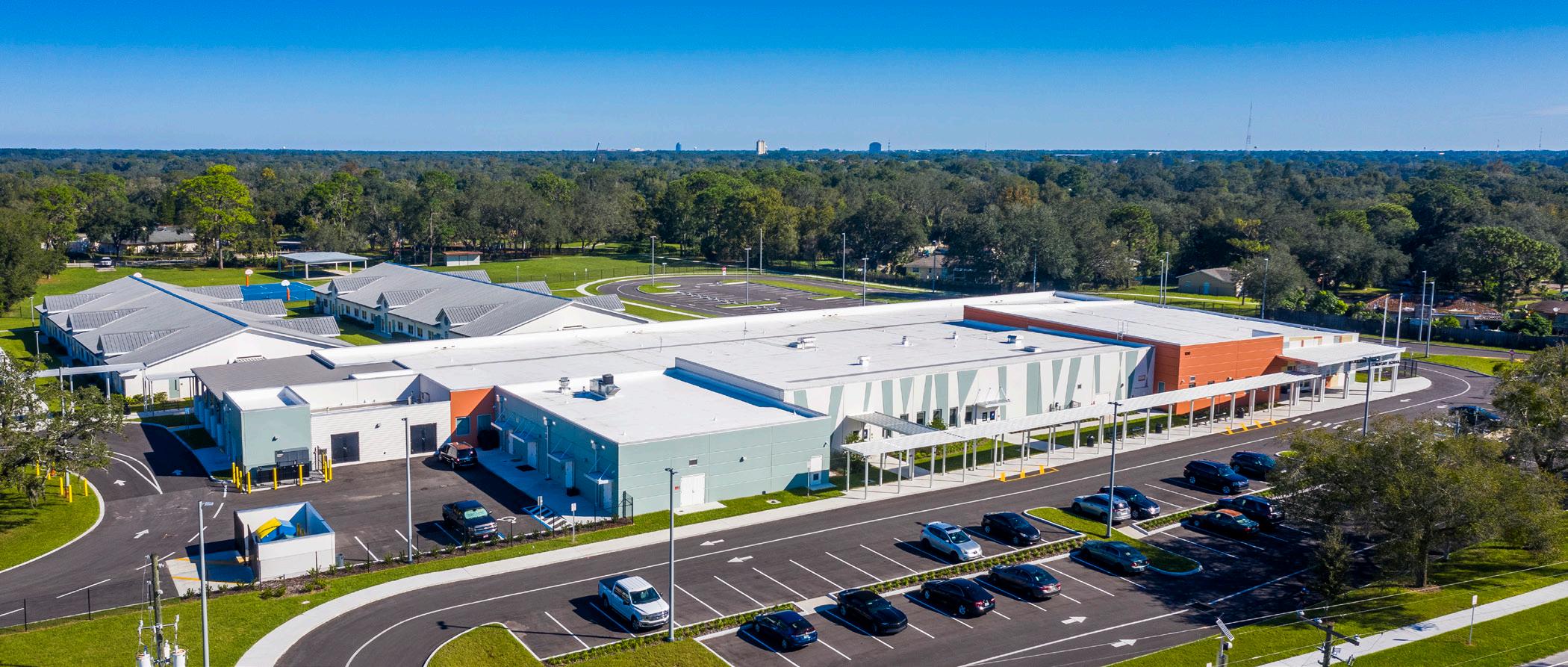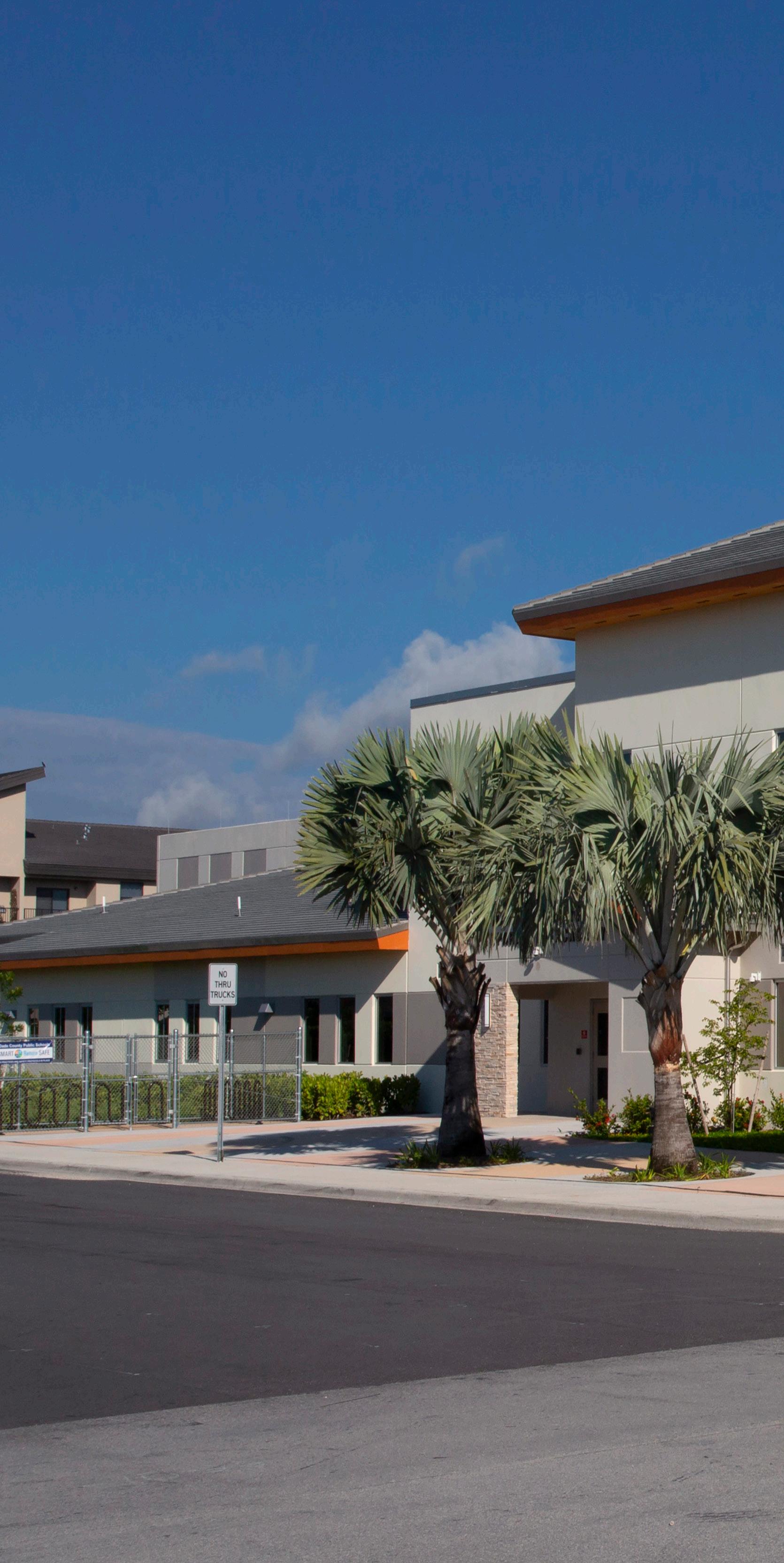 The school was designed with two onestory structures: a 103,000 SF academic “core” building and a 1,500 SF field structure. The core contains large multi-purpose spaces for art, music, dining, and media events and is surrounded by a perimeter of “universal” classrooms – modules designed to accommodate programs including kindergarten, primary, intermediate, exceptional education, and skills laboratories. Structurally upgraded, the facility further serves as a hurricane shelter. Sunrise Park Elementary is located on a site with a middle school and a nature preserve. Stratus designed a campus setting while also providing amenities for the middle school and resolving traffic congestion. New amenities include a physical education pavilion, two baseball fields, and basketball courts.