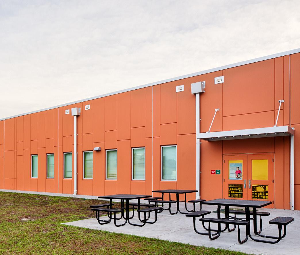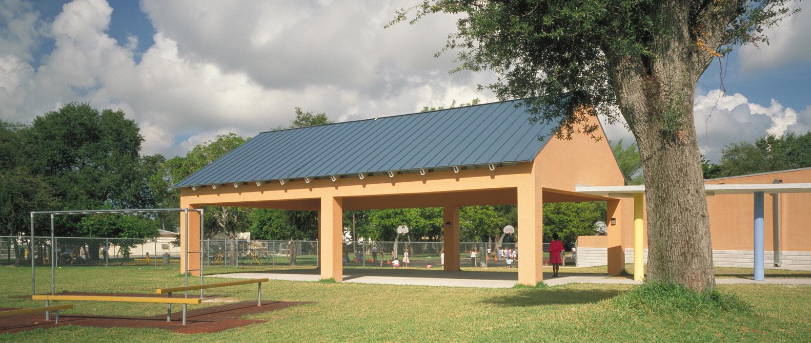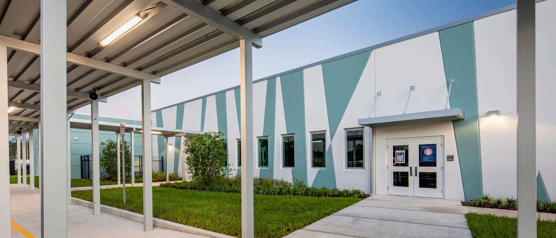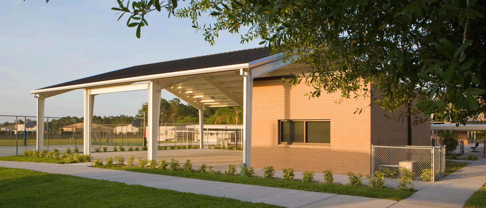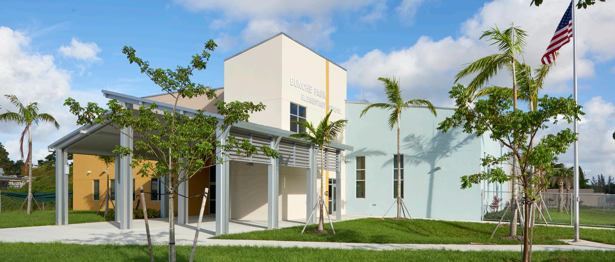 The school was designed with two onestory structures: a 103,000 SF academic “core” building and a 1,500 SF field structure. The core contains large multi-purpose spaces for art, music, dining, and media events and is surrounded by a perimeter of “universal” classrooms – modules designed to accommodate programs including kindergarten, primary, intermediate, exceptional education, and skills laboratories. Structurally upgraded, the facility further serves as a hurricane shelter. Sunrise Park Elementary is located on a site with a middle school and a nature preserve. Stratus designed a campus setting while also providing amenities for the middle school and resolving traffic congestion. New amenities include a physical education pavilion, two baseball fields, and basketball courts.