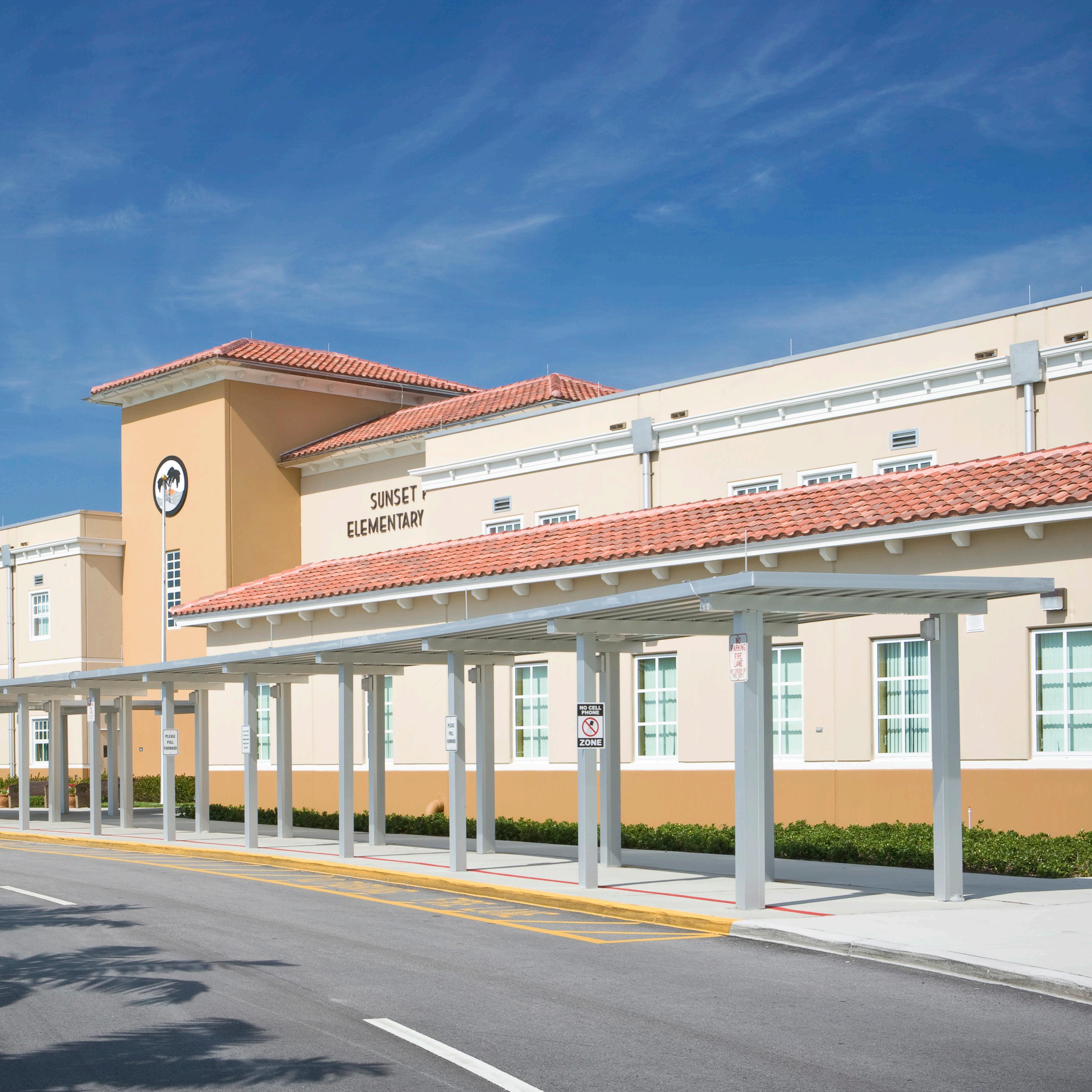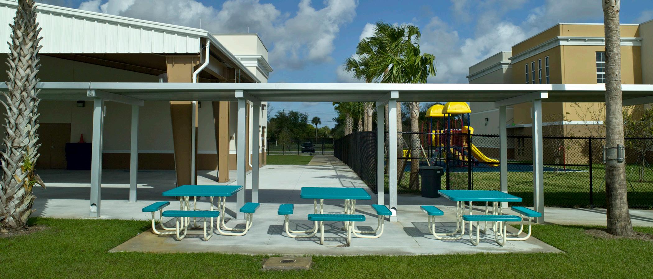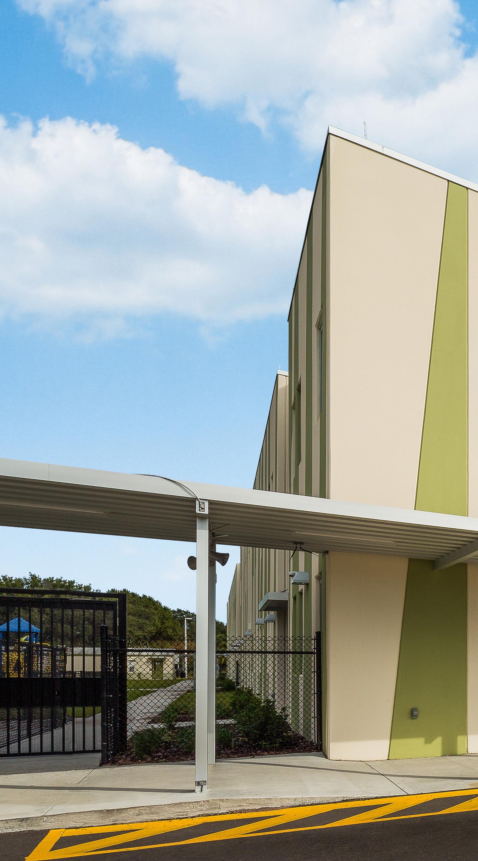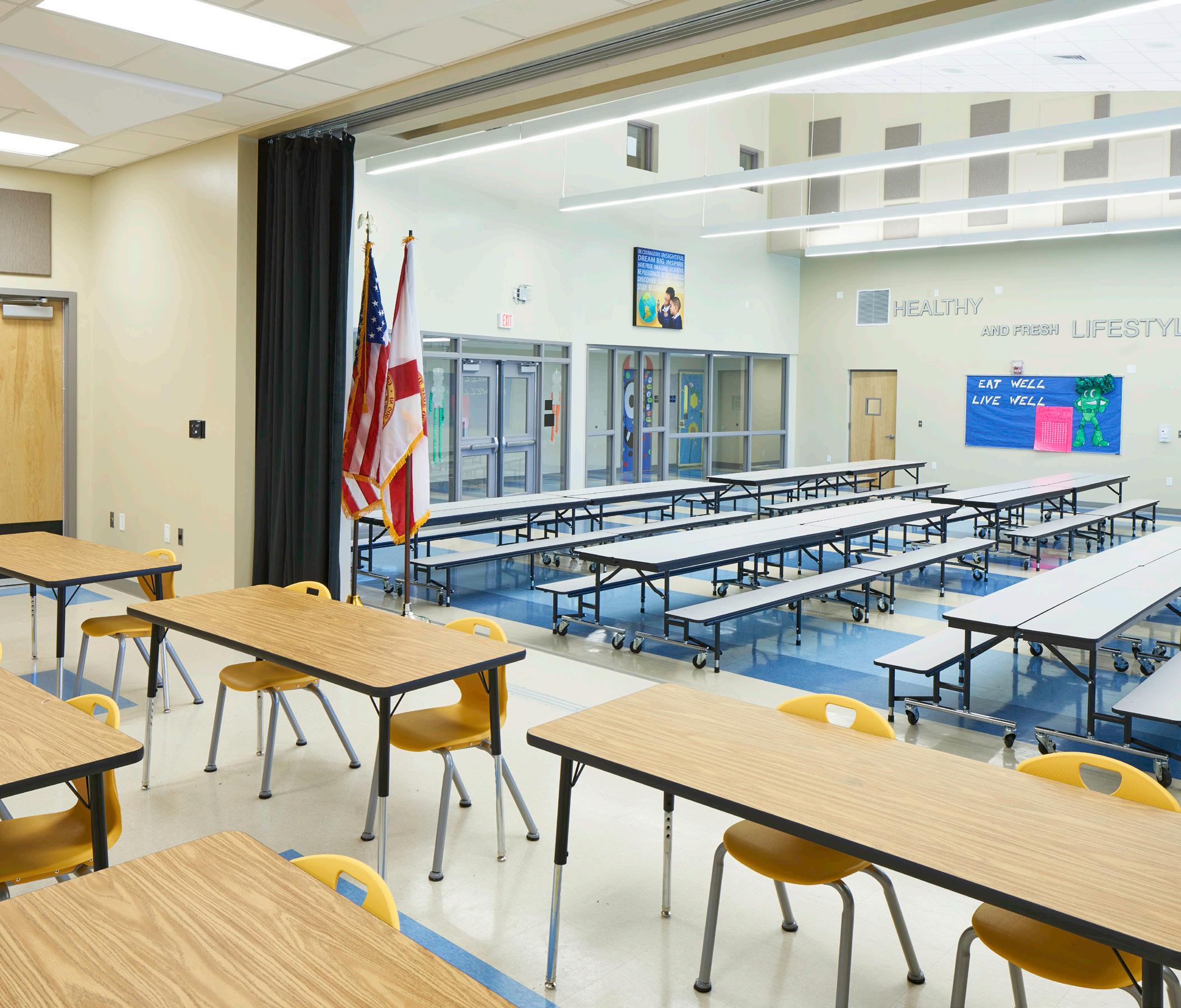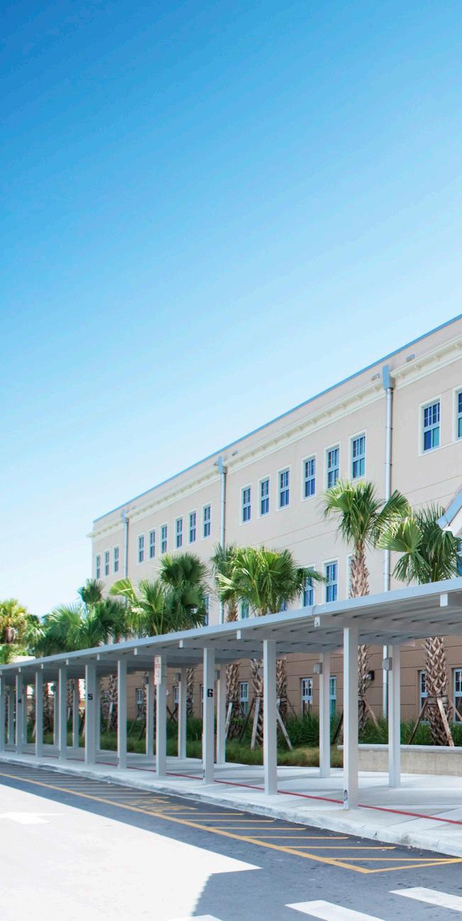 The school was designed with two onestory structures: a 103,000 SF academic “core” building and a 1,500 SF field structure. The core contains large multi-purpose spaces for art, music, dining, and media events and is surrounded by a perimeter of “universal” classrooms – modules designed to accommodate programs including kindergarten, primary, intermediate, exceptional education, and skills laboratories. Structurally upgraded, the facility further serves as a hurricane shelter. Sunrise Park Elementary is located on a site with a middle school and a nature preserve. Stratus designed a campus setting while also providing amenities for the middle school and resolving traffic congestion. New amenities include a physical education pavilion, two baseball fields, and basketball courts.