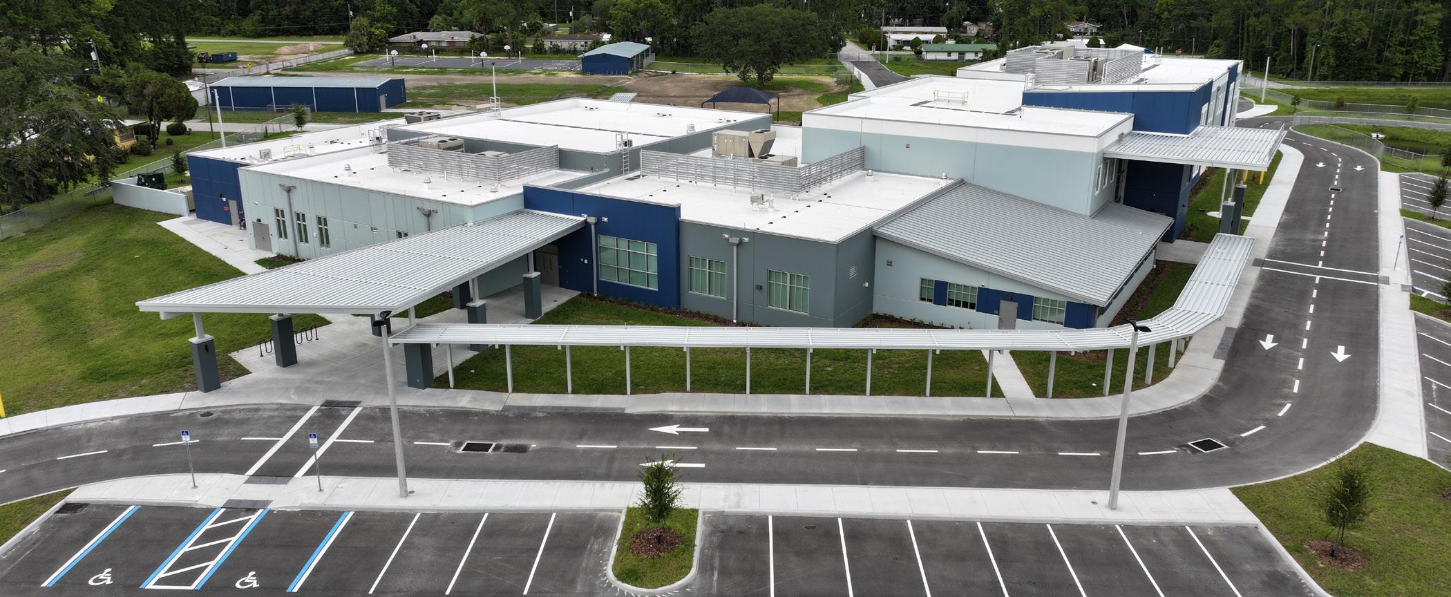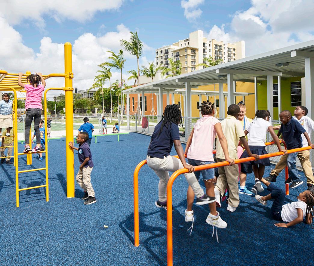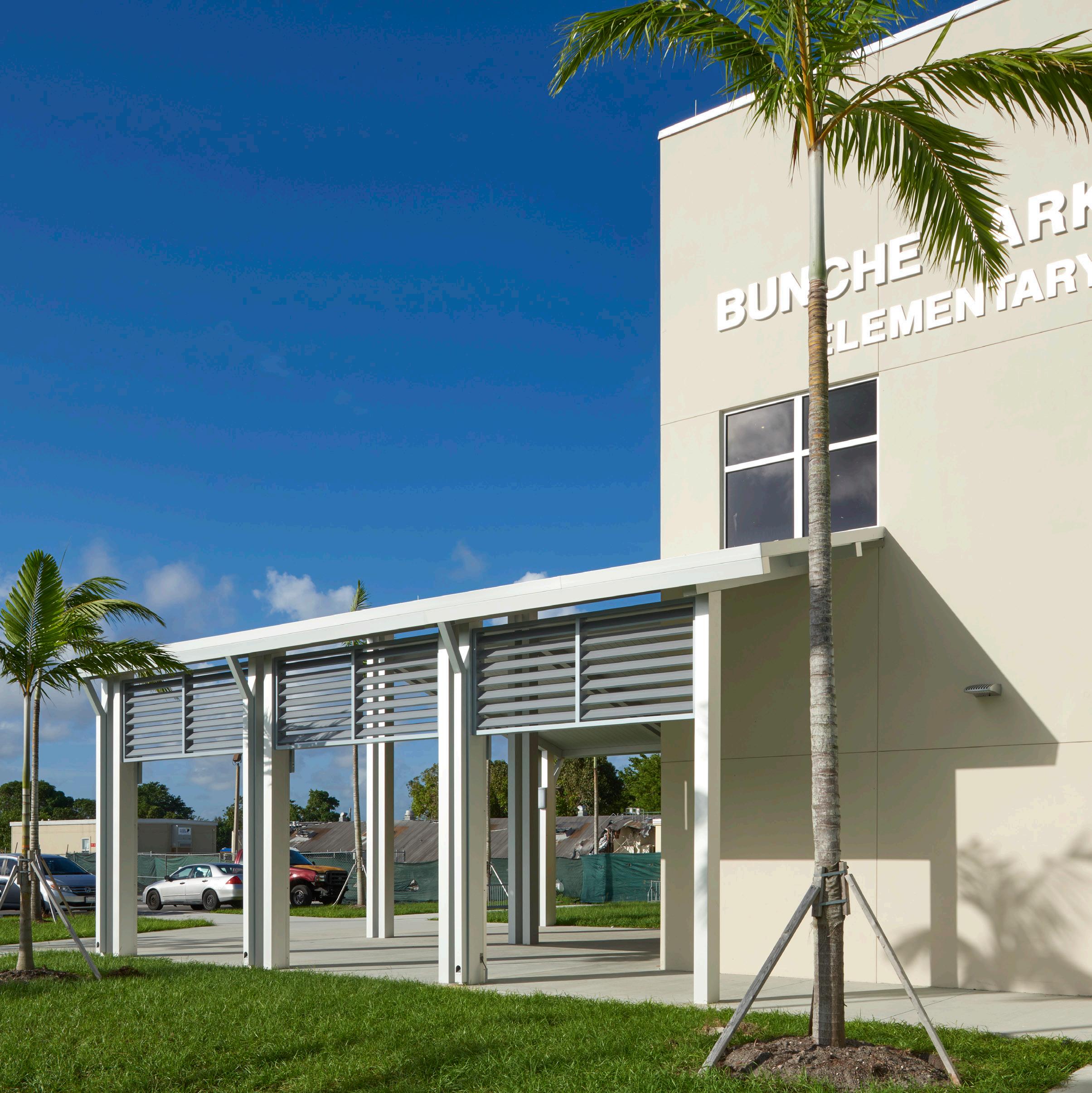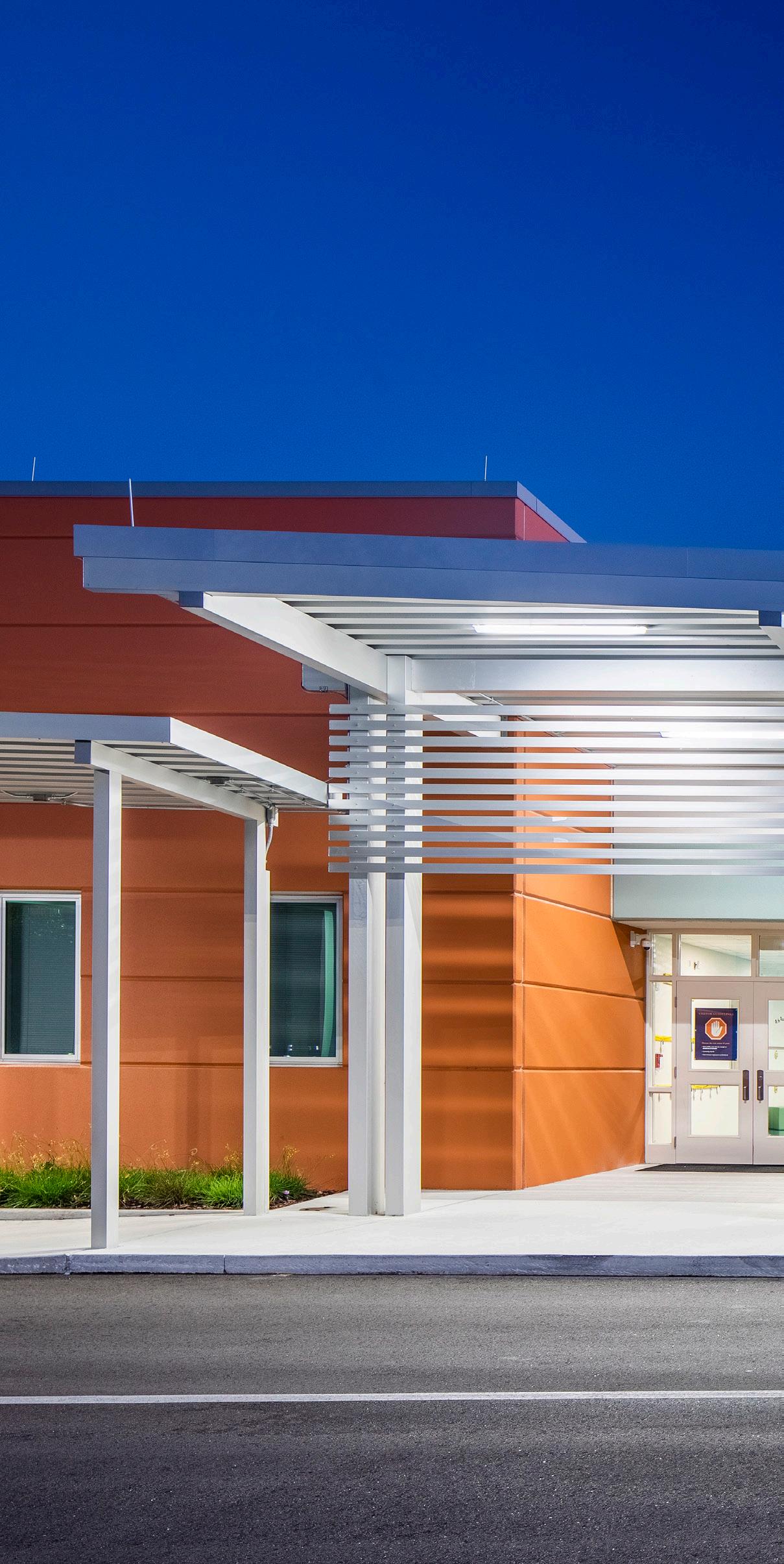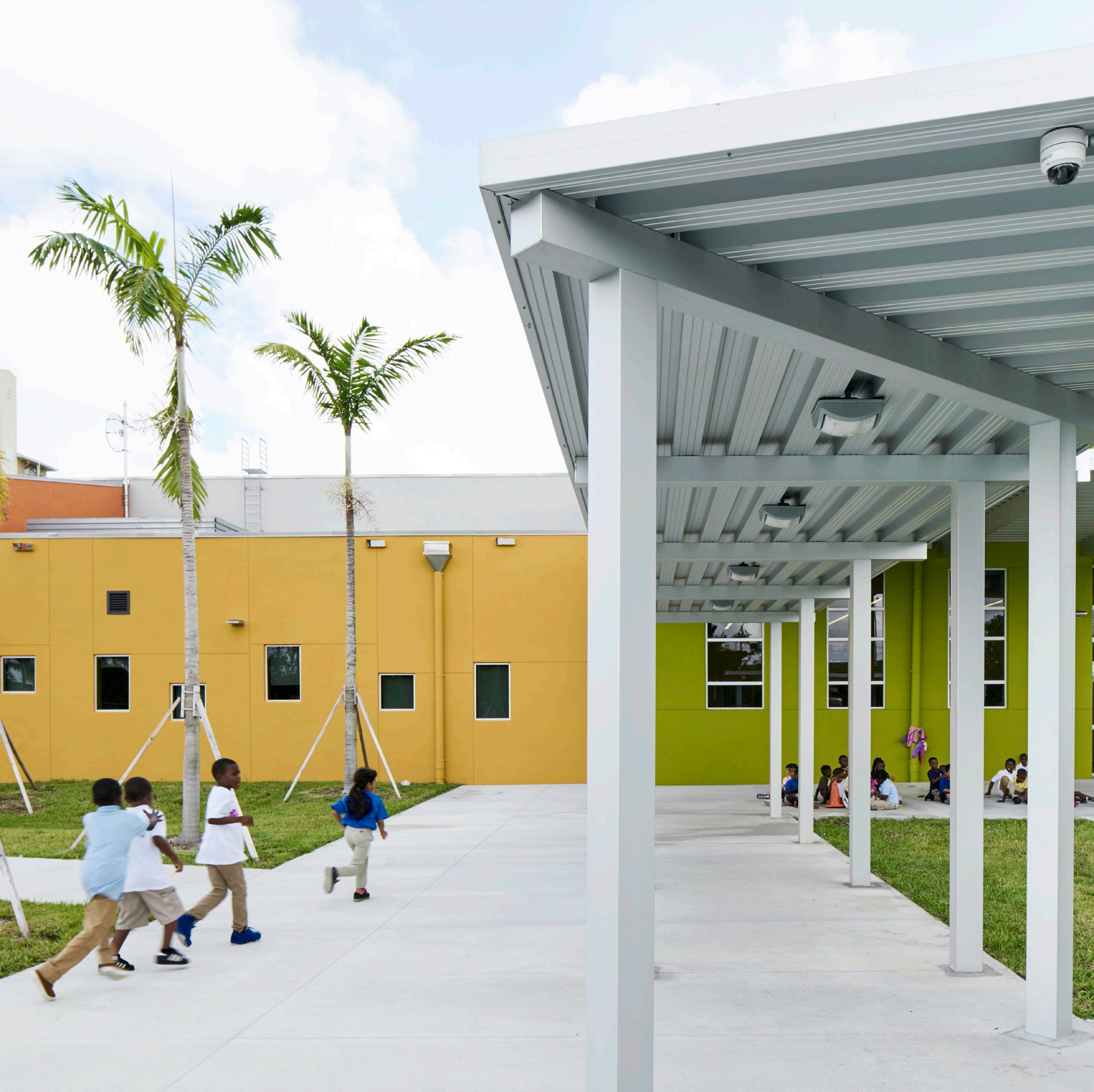 The school was designed with two onestory structures: a 103,000 SF academic “core” building and a 1,500 SF field structure. The core contains large multi-purpose spaces for art, music, dining, and media events and is surrounded by a perimeter of “universal” classrooms – modules designed to accommodate programs including kindergarten, primary, intermediate, exceptional education, and skills laboratories. Structurally upgraded, the facility further serves as a hurricane shelter. Sunrise Park Elementary is located on a site with a middle school and a nature preserve. Stratus designed a campus setting while also providing amenities for the middle school and resolving traffic congestion. New amenities include a physical education pavilion, two baseball fields, and basketball courts.