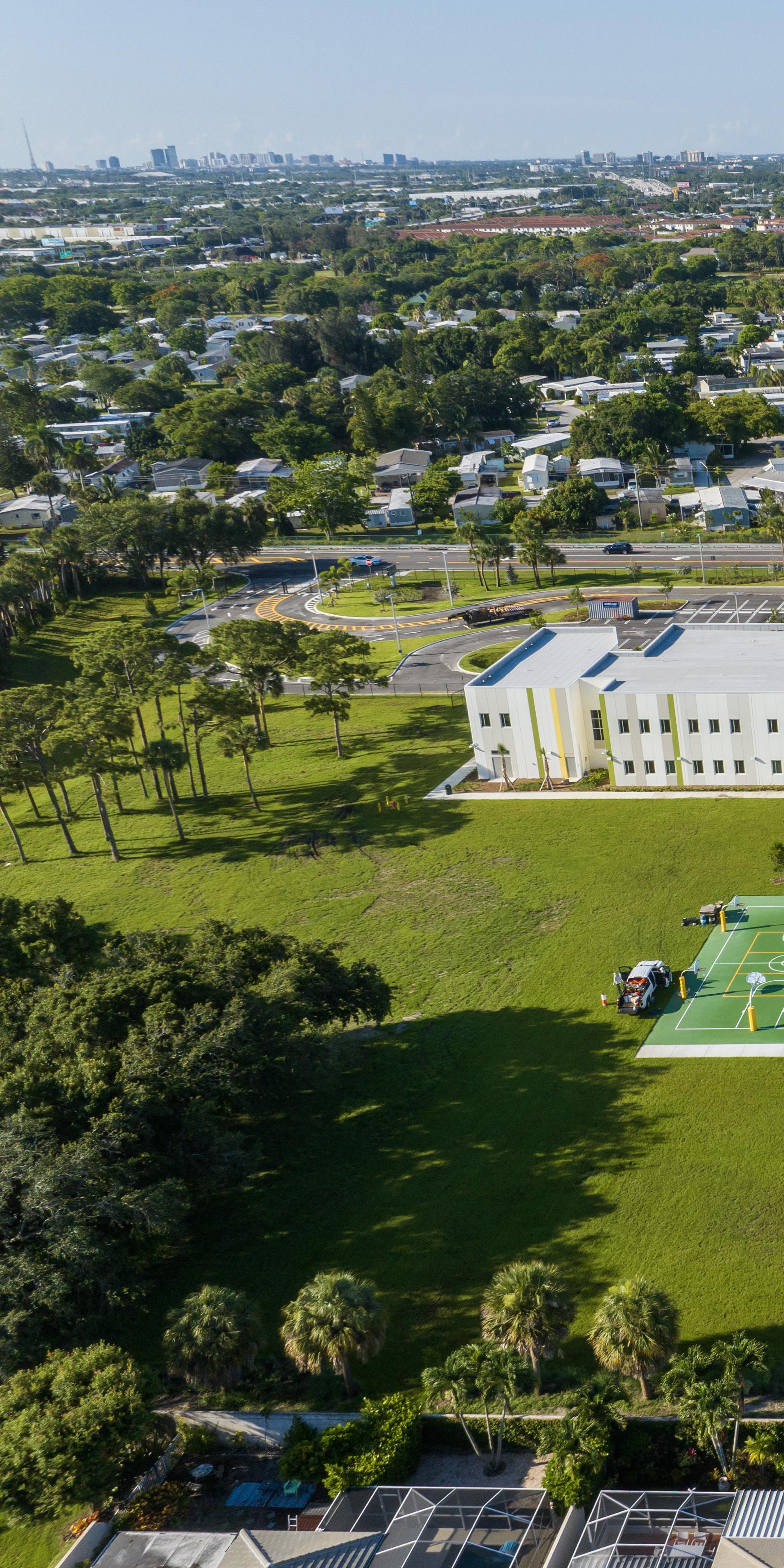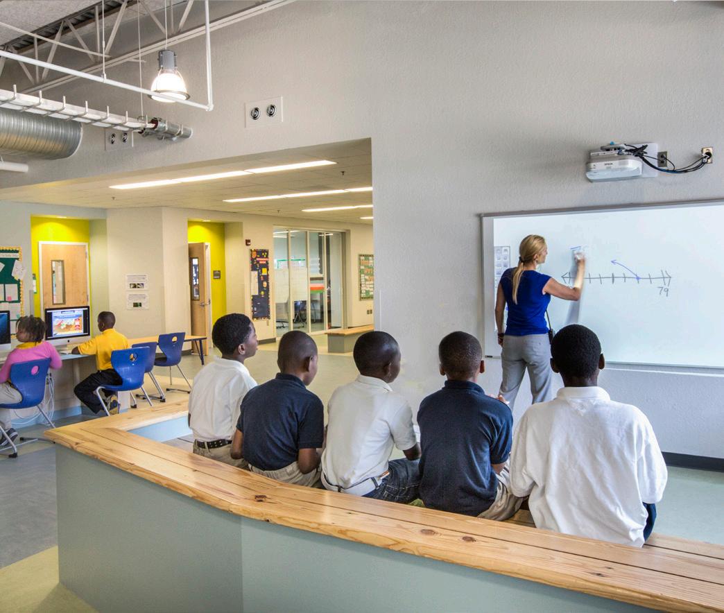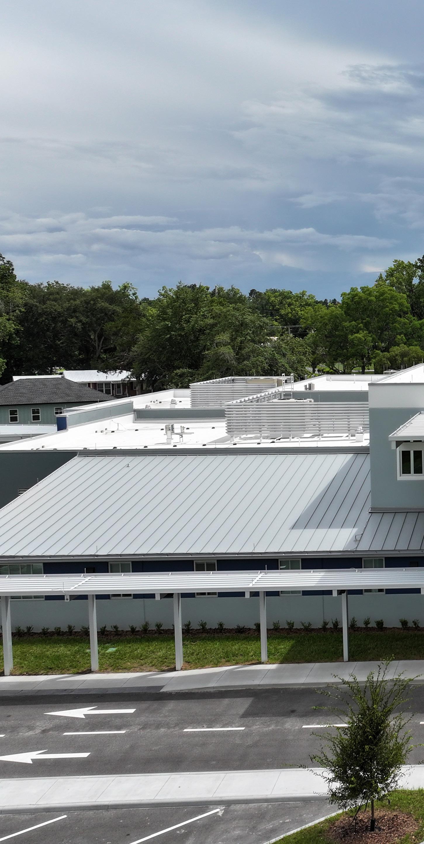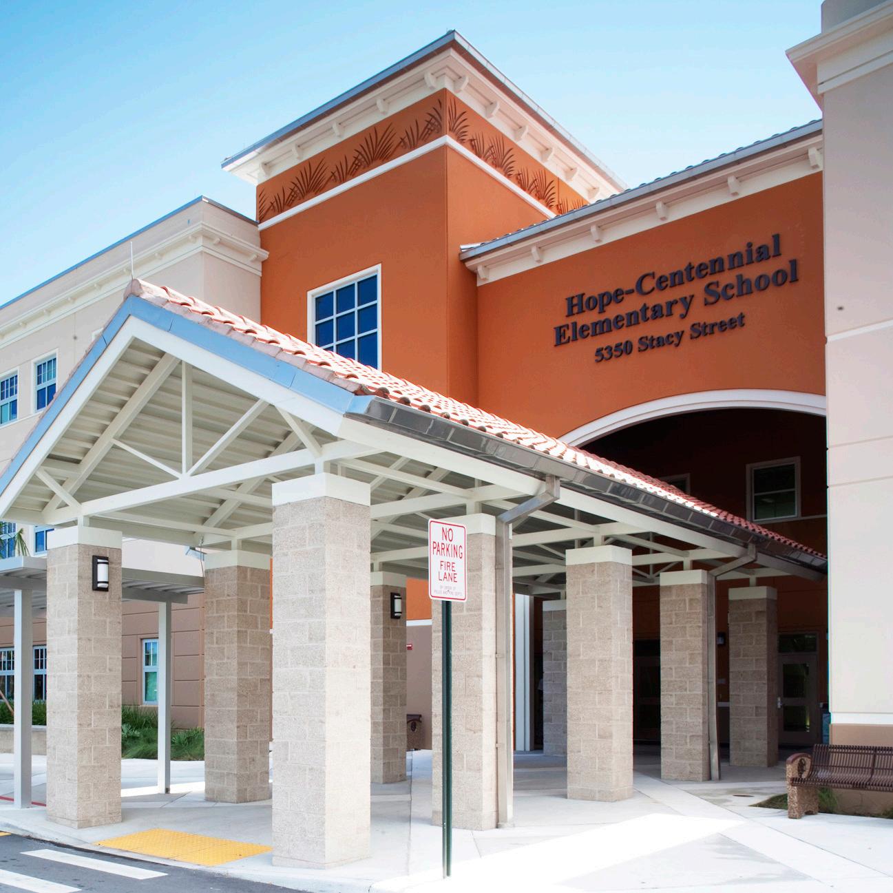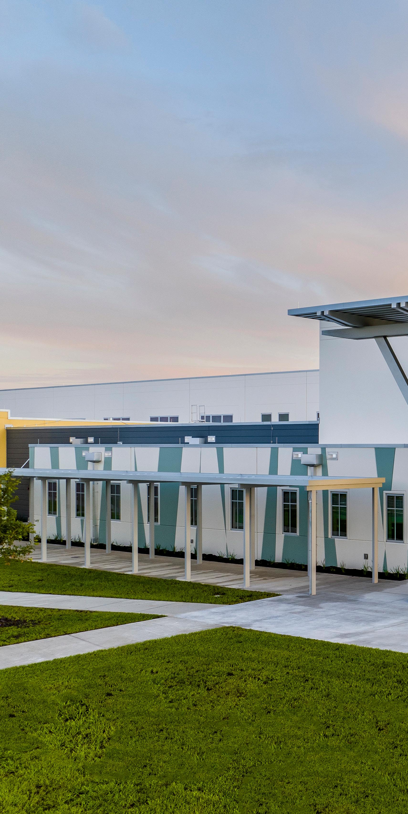 The school was designed with two onestory structures: a 103,000 SF academic “core” building and a 1,500 SF field structure. The core contains large multi-purpose spaces for art, music, dining, and media events and is surrounded by a perimeter of “universal” classrooms – modules designed to accommodate programs including kindergarten, primary, intermediate, exceptional education, and skills laboratories. Structurally upgraded, the facility further serves as a hurricane shelter. Sunrise Park Elementary is located on a site with a middle school and a nature preserve. Stratus designed a campus setting while also providing amenities for the middle school and resolving traffic congestion. New amenities include a physical education pavilion, two baseball fields, and basketball courts.