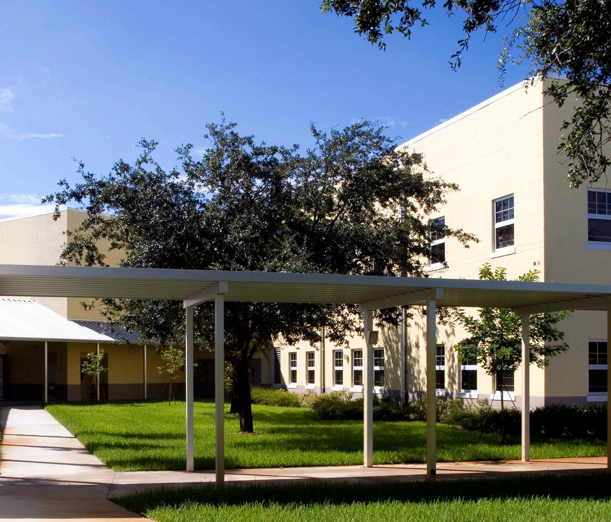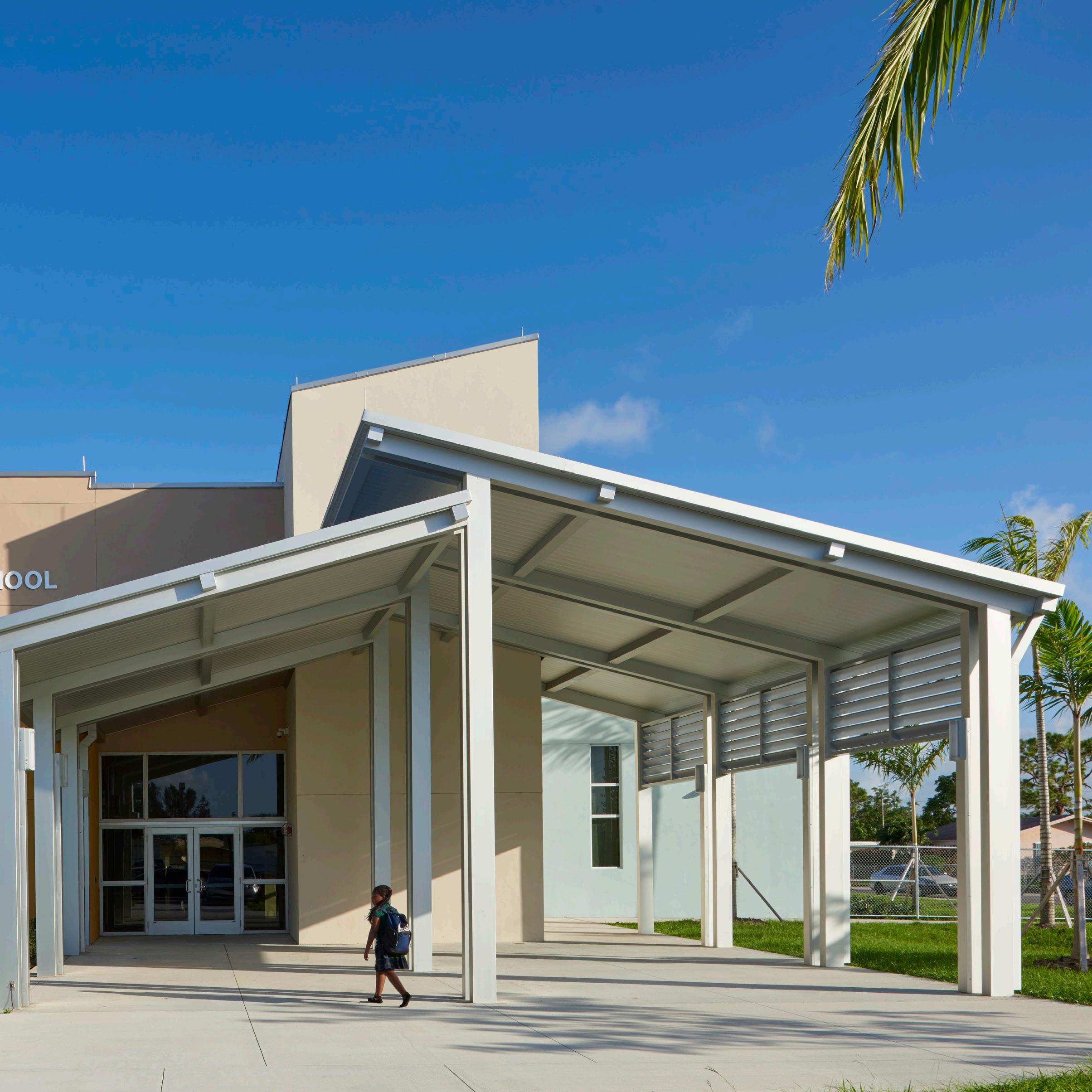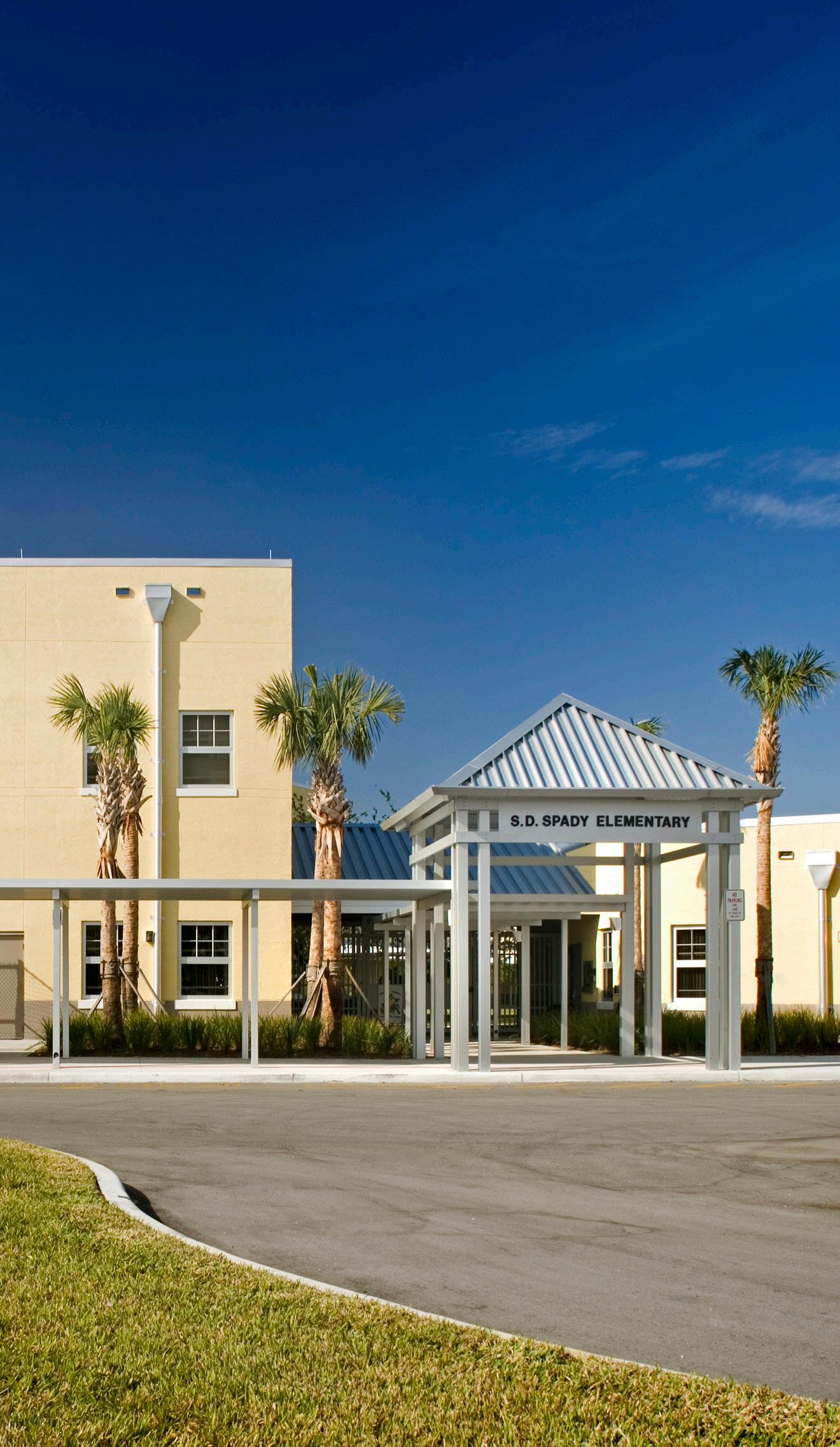 S.D. Spady Elementary School was the first African American school in Palm Beach County and the founding principal, Solomon David Spady, was appointed by Booker T. Washington. The replacement of the school was therefore a sensitive project and important for the entire community. Stratus’s design objective was to create architecture that recognizes the historic value of this school to the community. This was achieved by recalling the historic architecture of Delray Beach and incorporating metal roofs, Bahama shutters and residential scale openings similar to those found in the surrounding neighborhood homes.