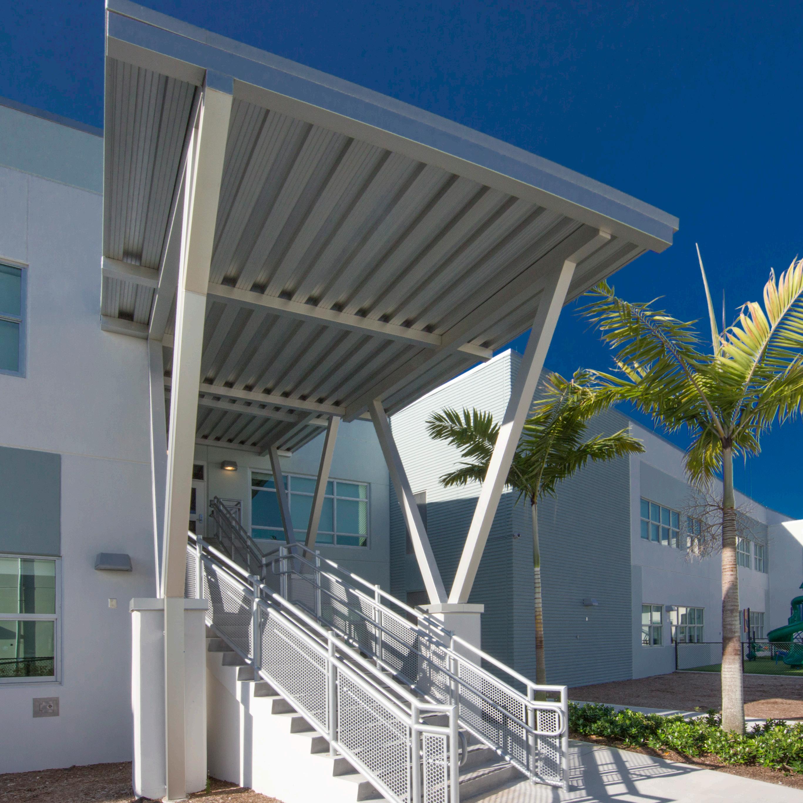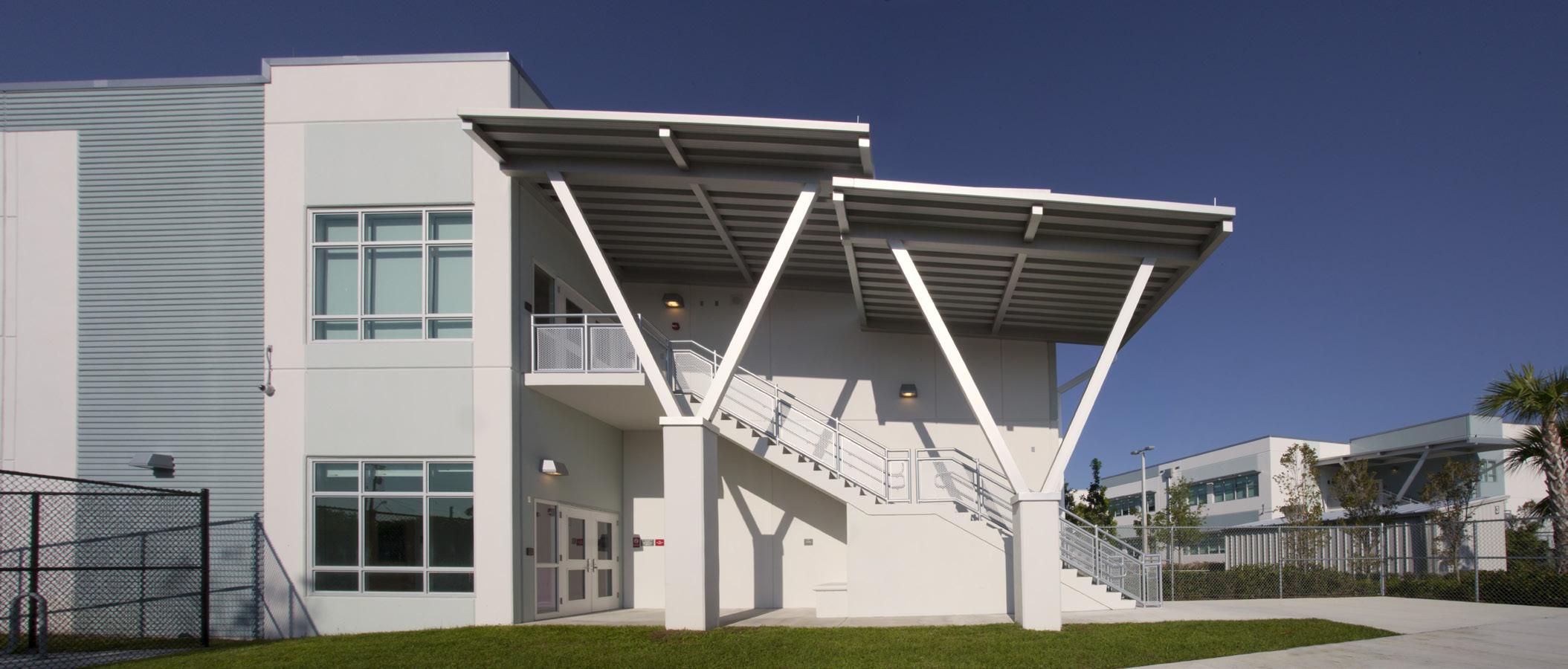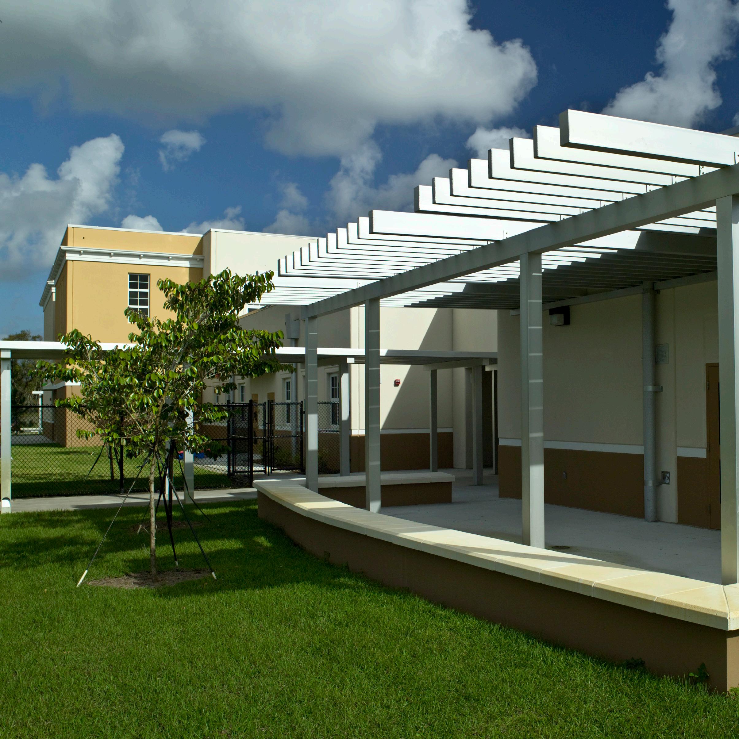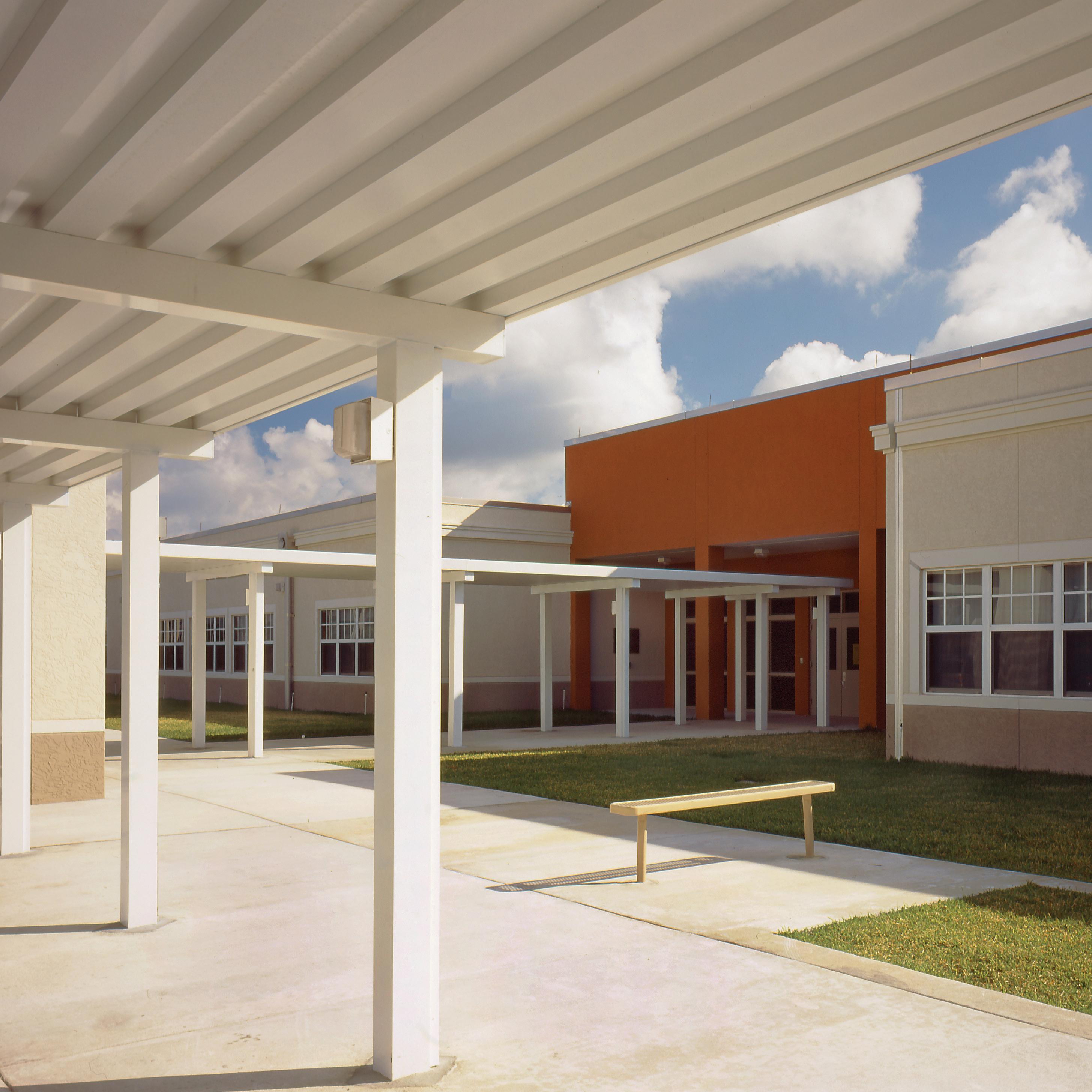 S.D. Spady Elementary School was the first African American school in Palm Beach County and the founding principal, Solomon David Spady, was appointed by Booker T. Washington. The replacement of the school was therefore a sensitive project and important for the entire community. Stratus’s design objective was to create architecture that recognizes the historic value of this school to the community. This was achieved by recalling the historic architecture of Delray Beach and incorporating metal roofs, Bahama shutters and residential scale openings similar to those found in the surrounding neighborhood homes.