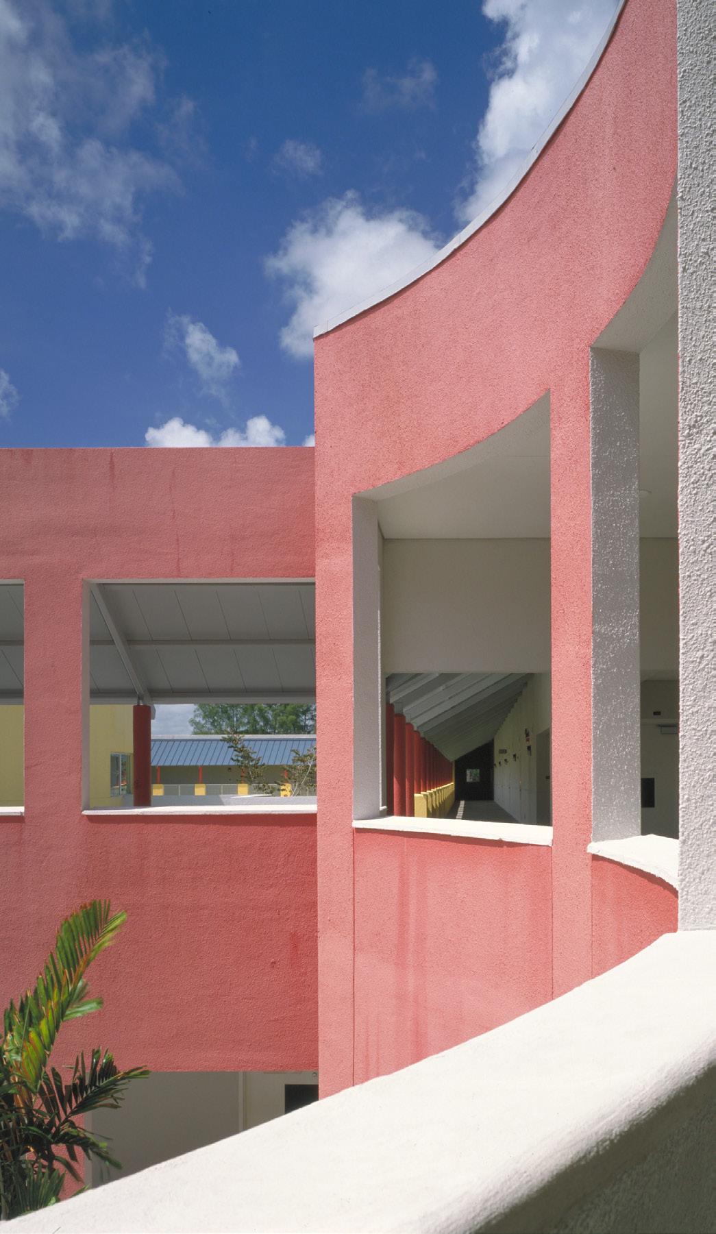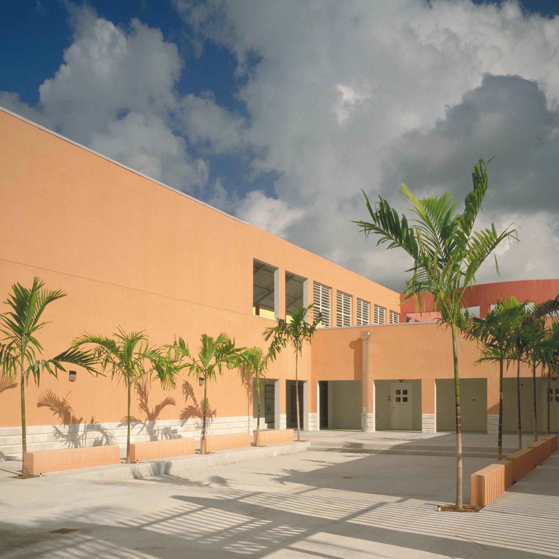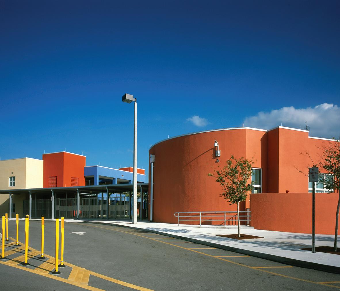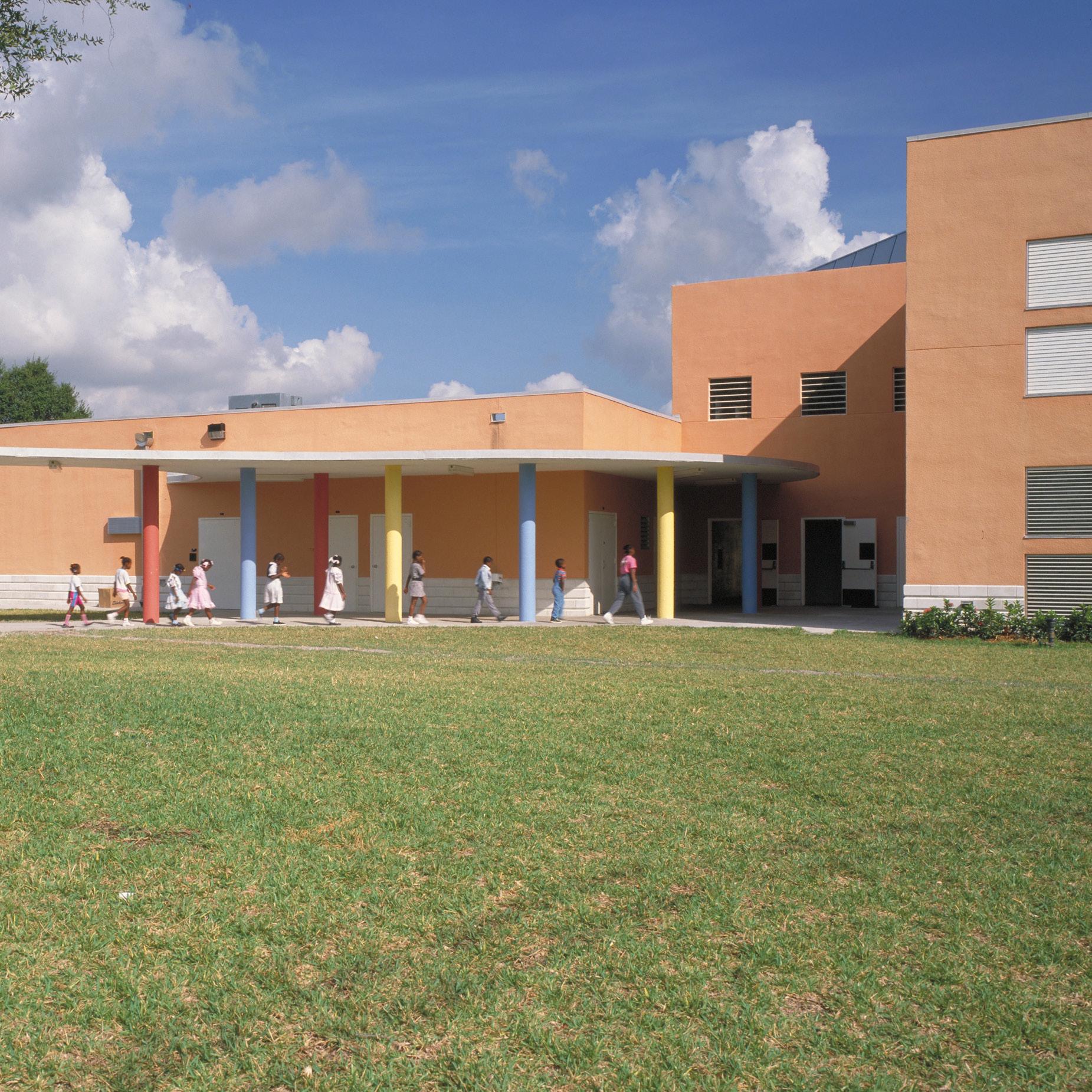 The design of this elementary school, located in an inner-city, Haitian neighborhood, was inspired by Miami’s single courtyard schools of the 1930s. In respect to the Caribbean derivation of most of its more than 1,000 students, Stratus emphasized light, color, and access to the outdoors, providing four open-air courtyards onto which all classrooms open. Inside, movable, soundproof partitions allow crowded classrooms to be reconfigured according to need. The bright Caribbean palette further enlarges the sense of spaciousness.