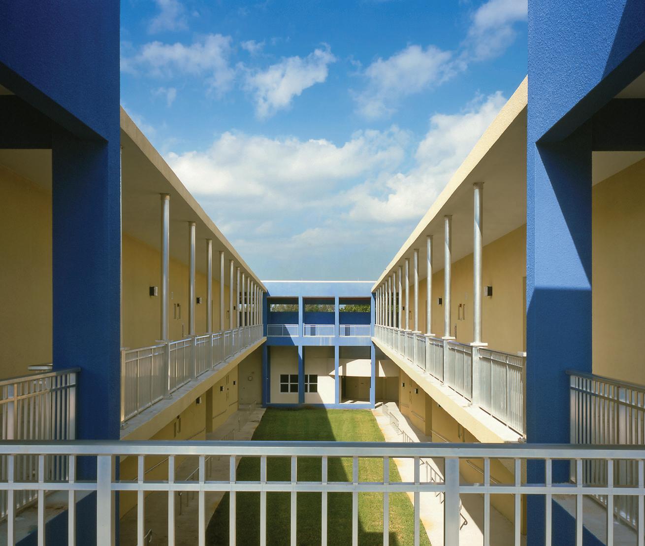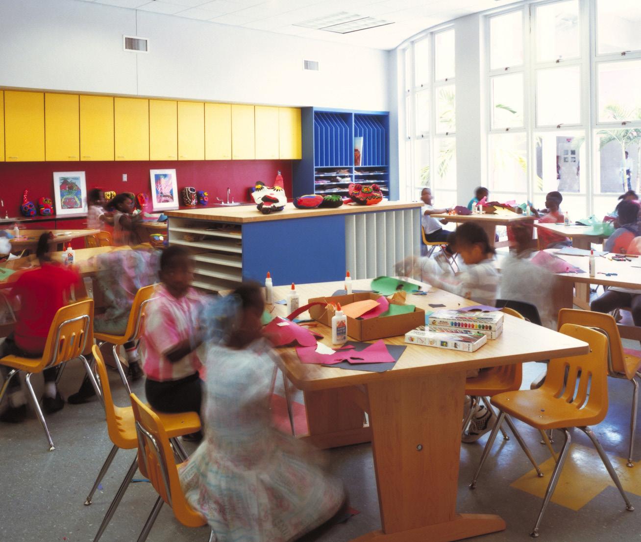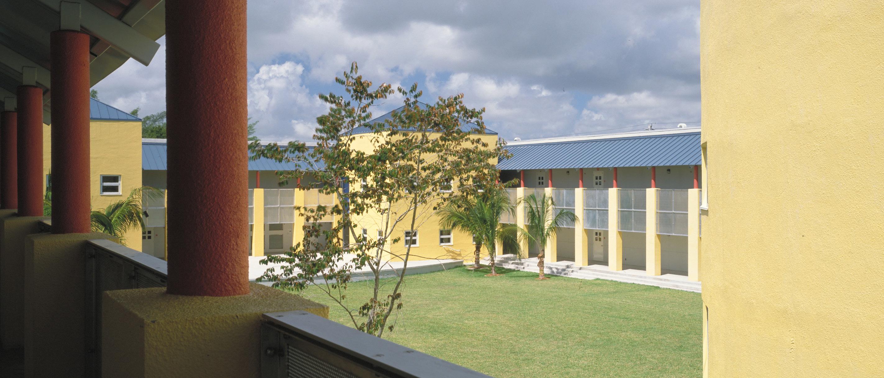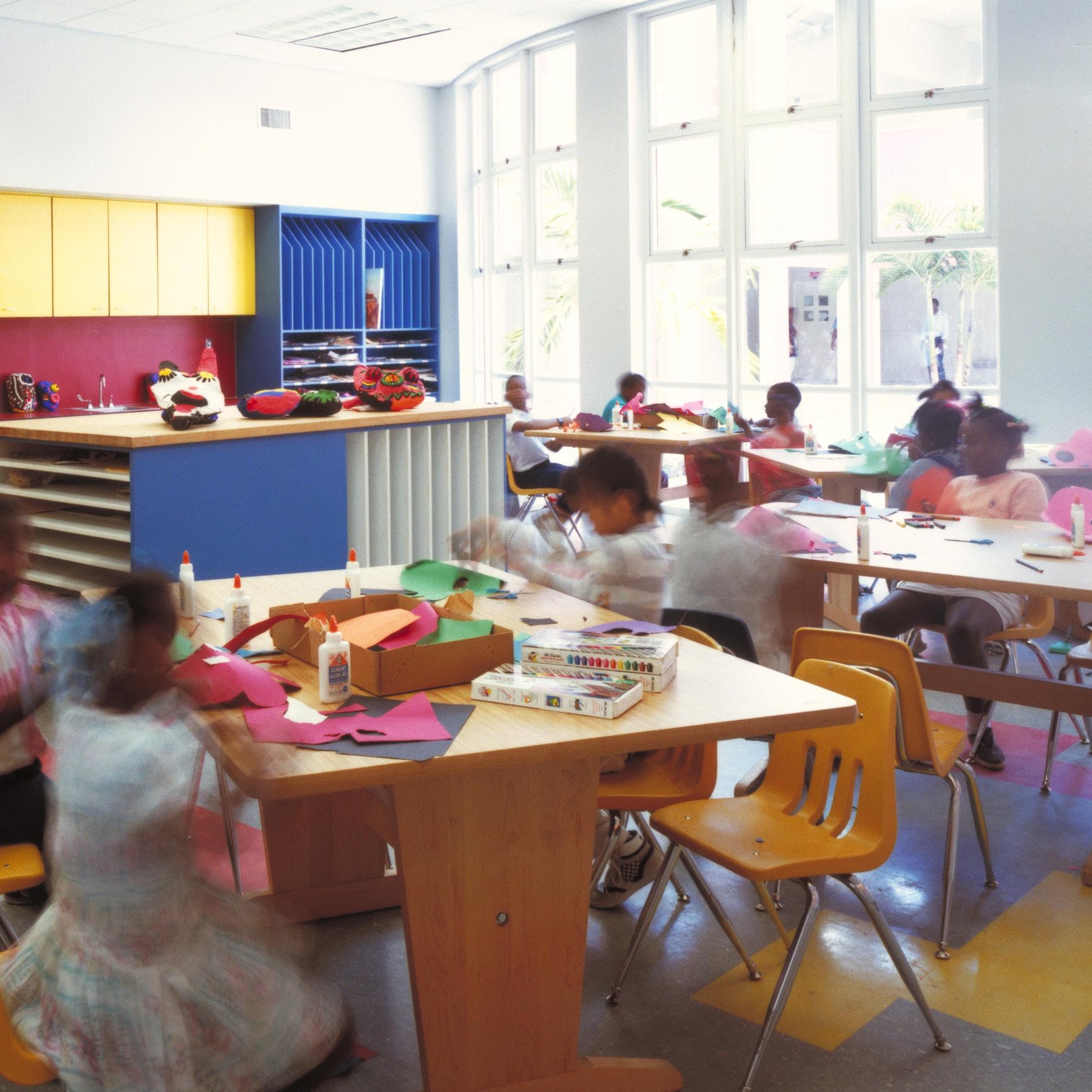 The design of this elementary school, located in an inner-city, Haitian neighborhood, was inspired by Miami’s single courtyard schools of the 1930s. In respect to the Caribbean derivation of most of its more than 1,000 students, Stratus emphasized light, color, and access to the outdoors, providing four open-air courtyards onto which all classrooms open. Inside, movable, soundproof partitions allow crowded classrooms to be reconfigured according to need. The bright Caribbean palette further enlarges the sense of spaciousness.