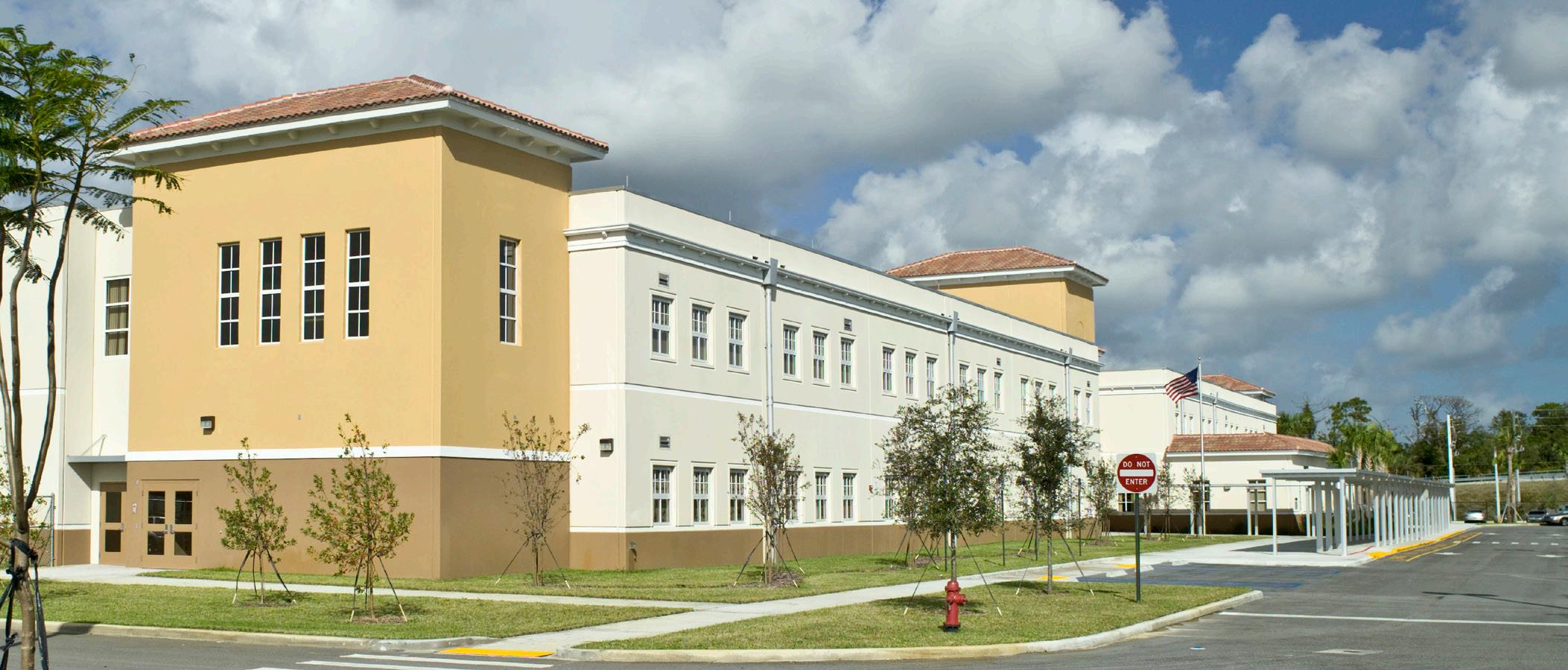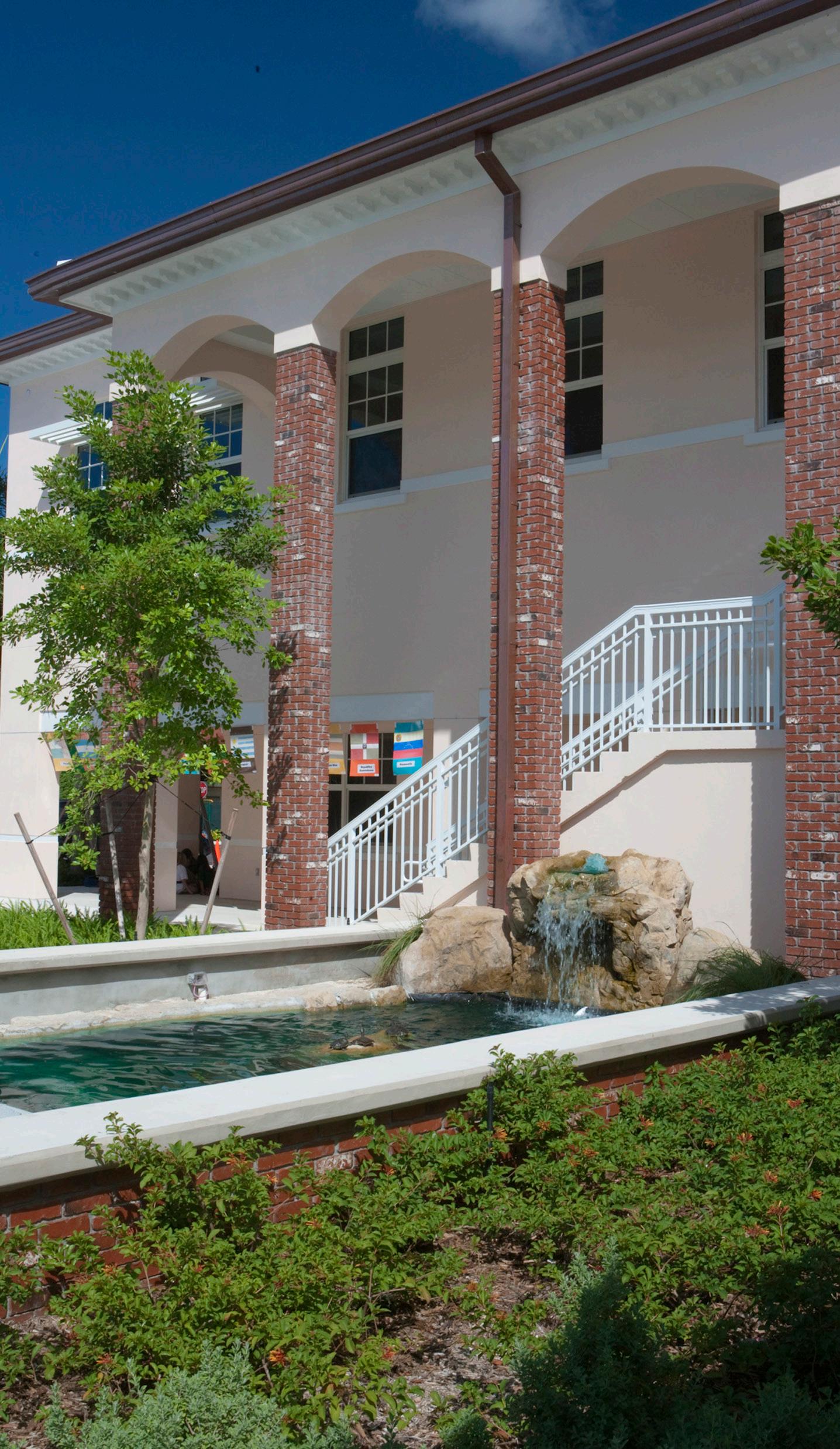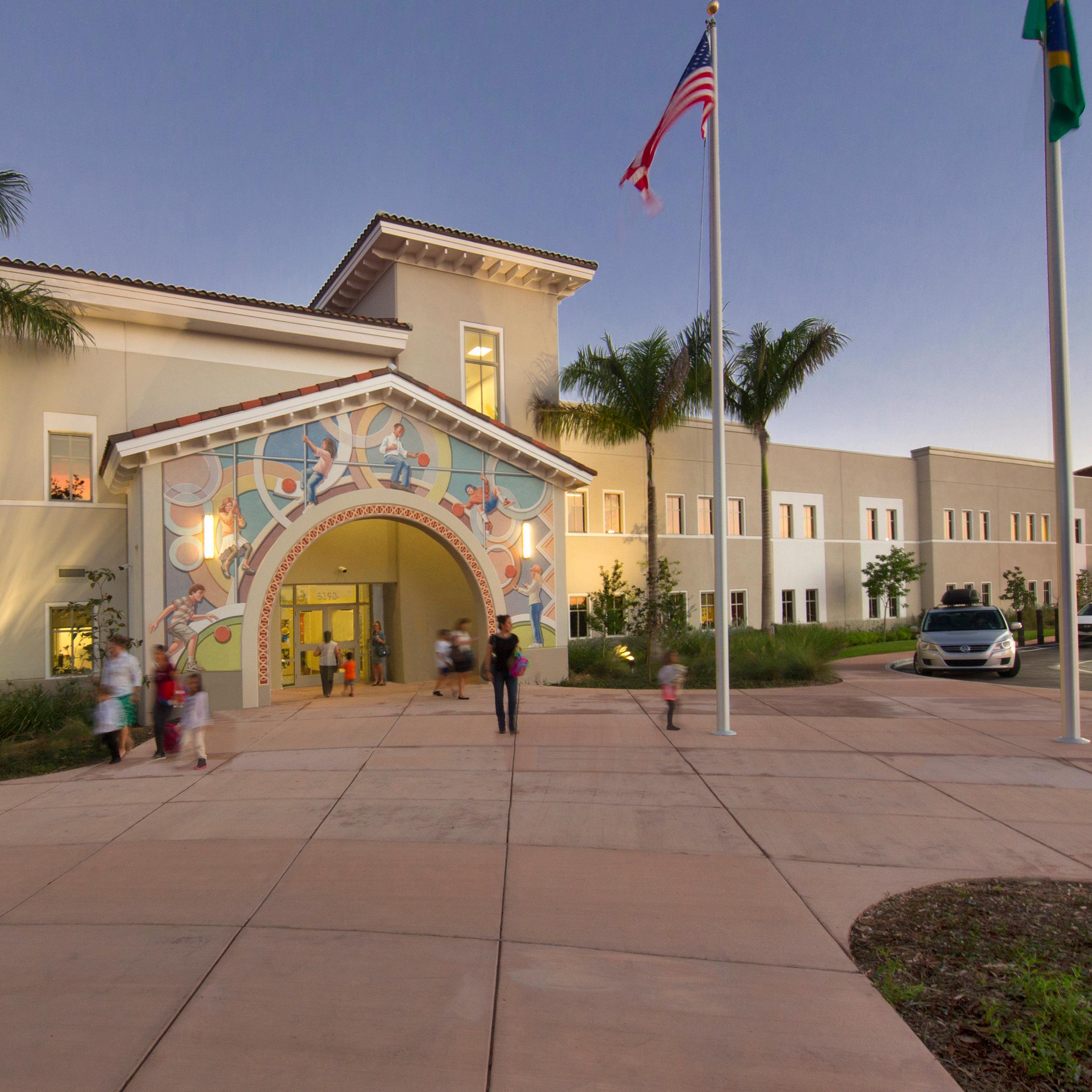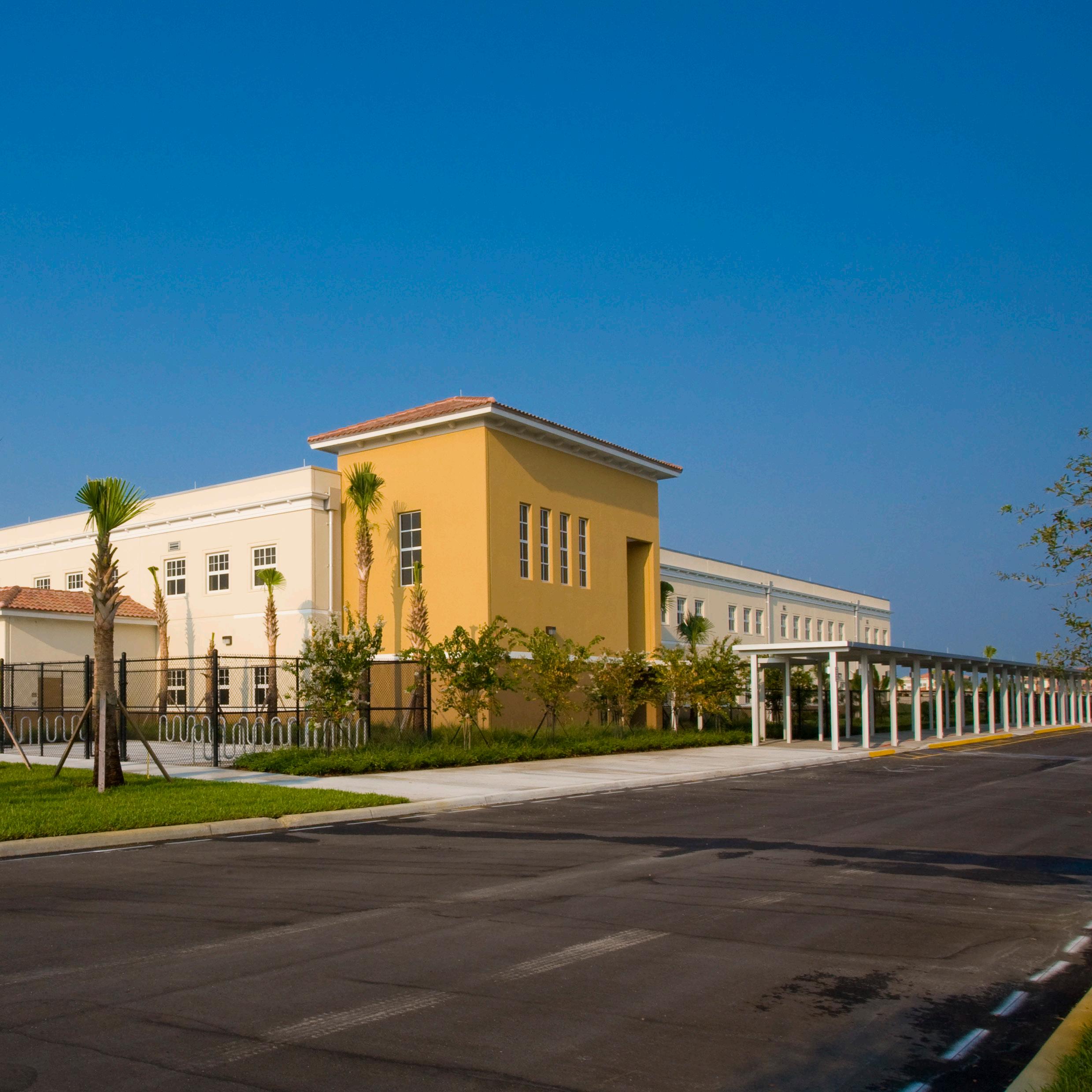 The exterior architectural characteristic of the building is compatible with City of Doral design guidelines and is in harmony with the surrounding community. The educational curriculum at the compact, two-story elementary school includes a dual-language immersion magnet program. During the program validation phase, Stratus updated the intended facilities list established for the elementary charter school with educational enrichment areas for 21st century learning while remaining in full compliance with the prescribed PK 5 elementary curriculum.