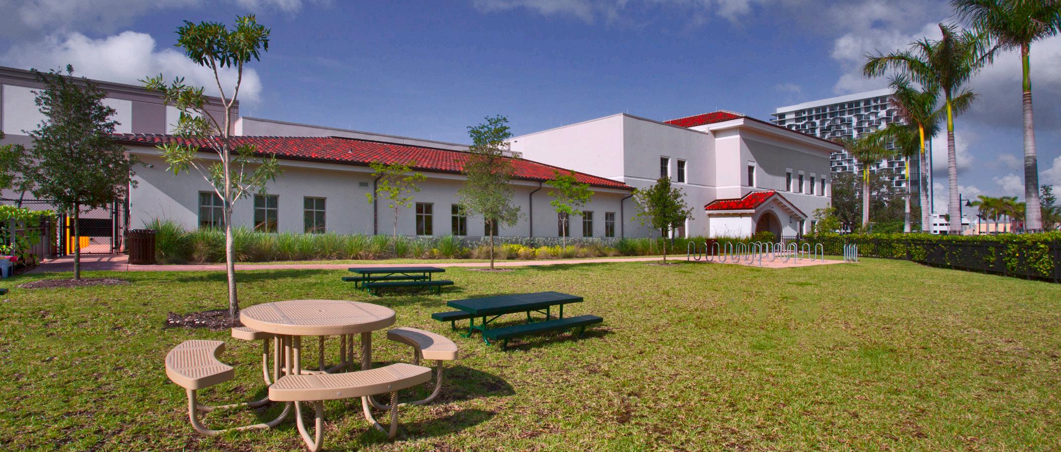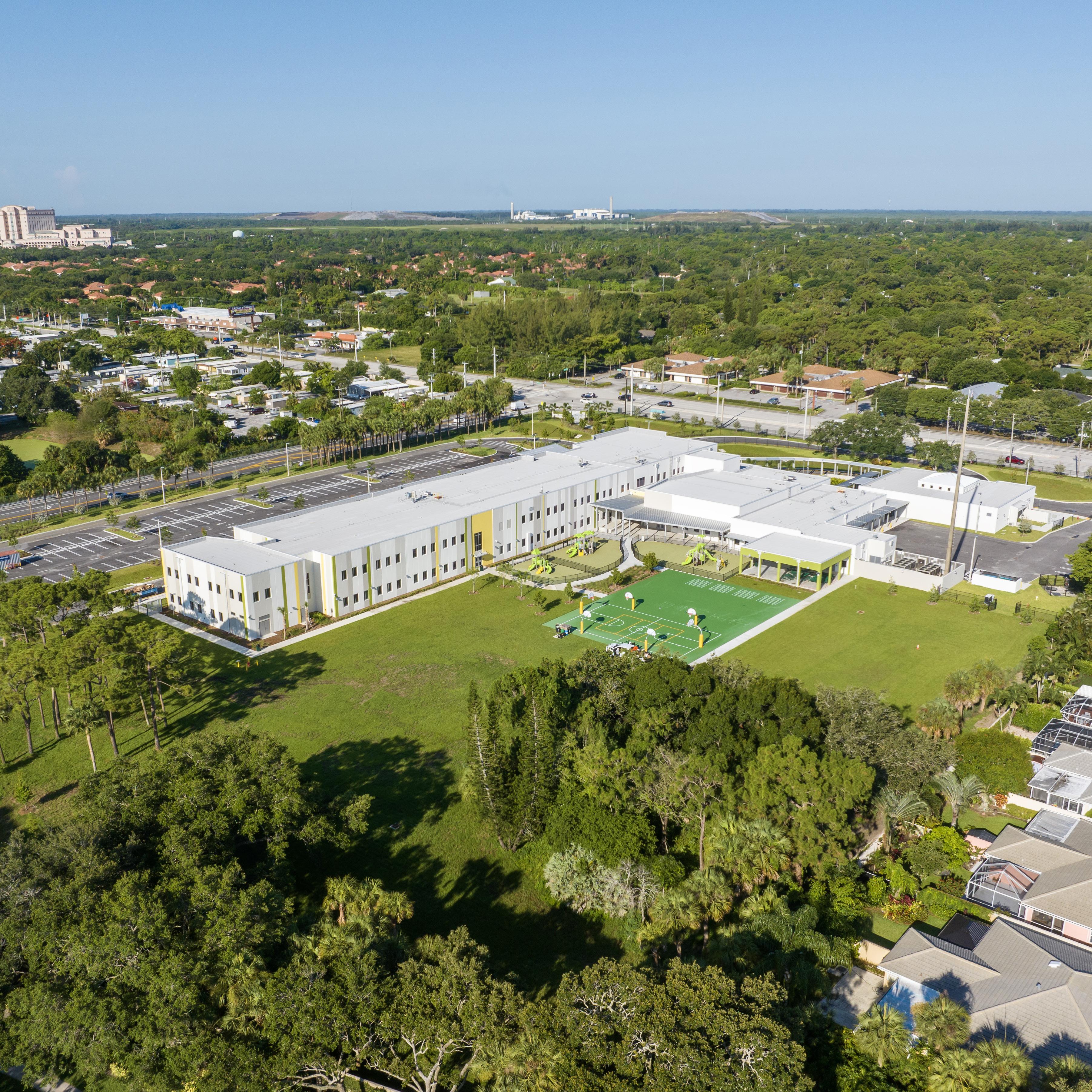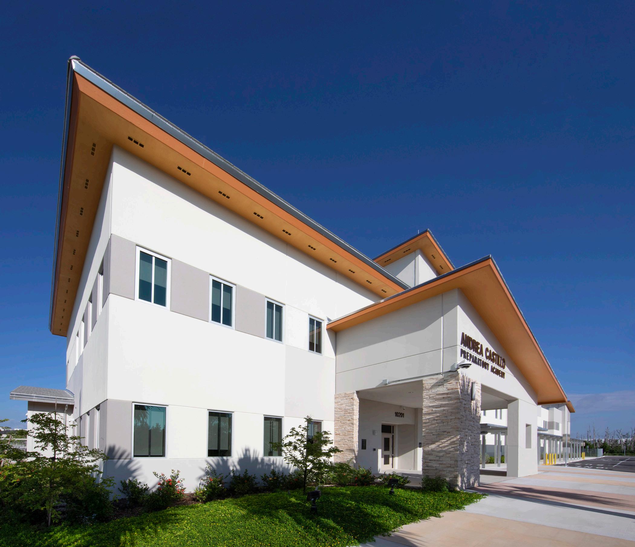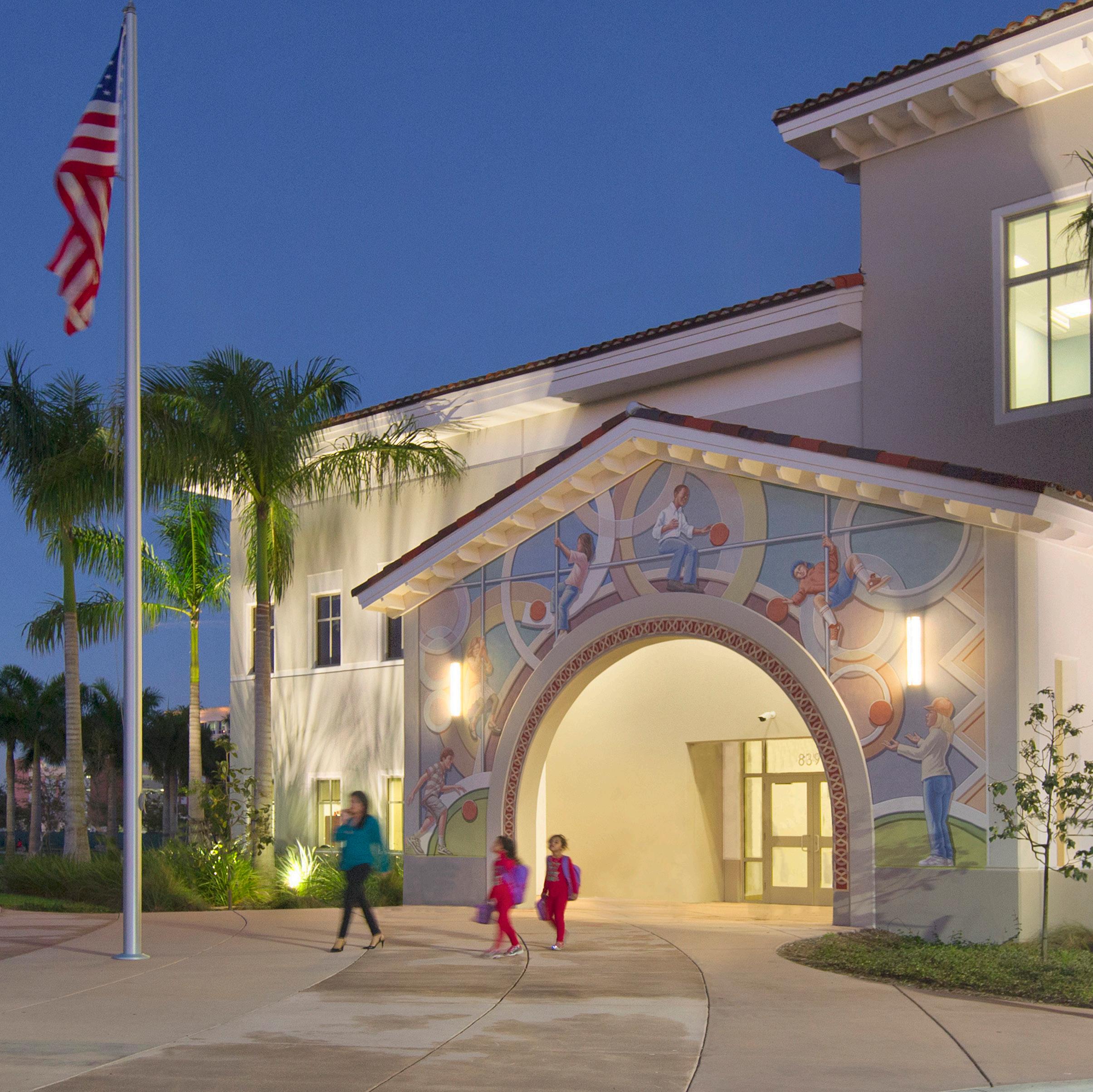 The exterior architectural characteristic of the building is compatible with City of Doral design guidelines and is in harmony with the surrounding community. The educational curriculum at the compact, two-story elementary school includes a dual-language immersion magnet program. During the program validation phase, Stratus updated the intended facilities list established for the elementary charter school with educational enrichment areas for 21st century learning while remaining in full compliance with the prescribed PK 5 elementary curriculum.