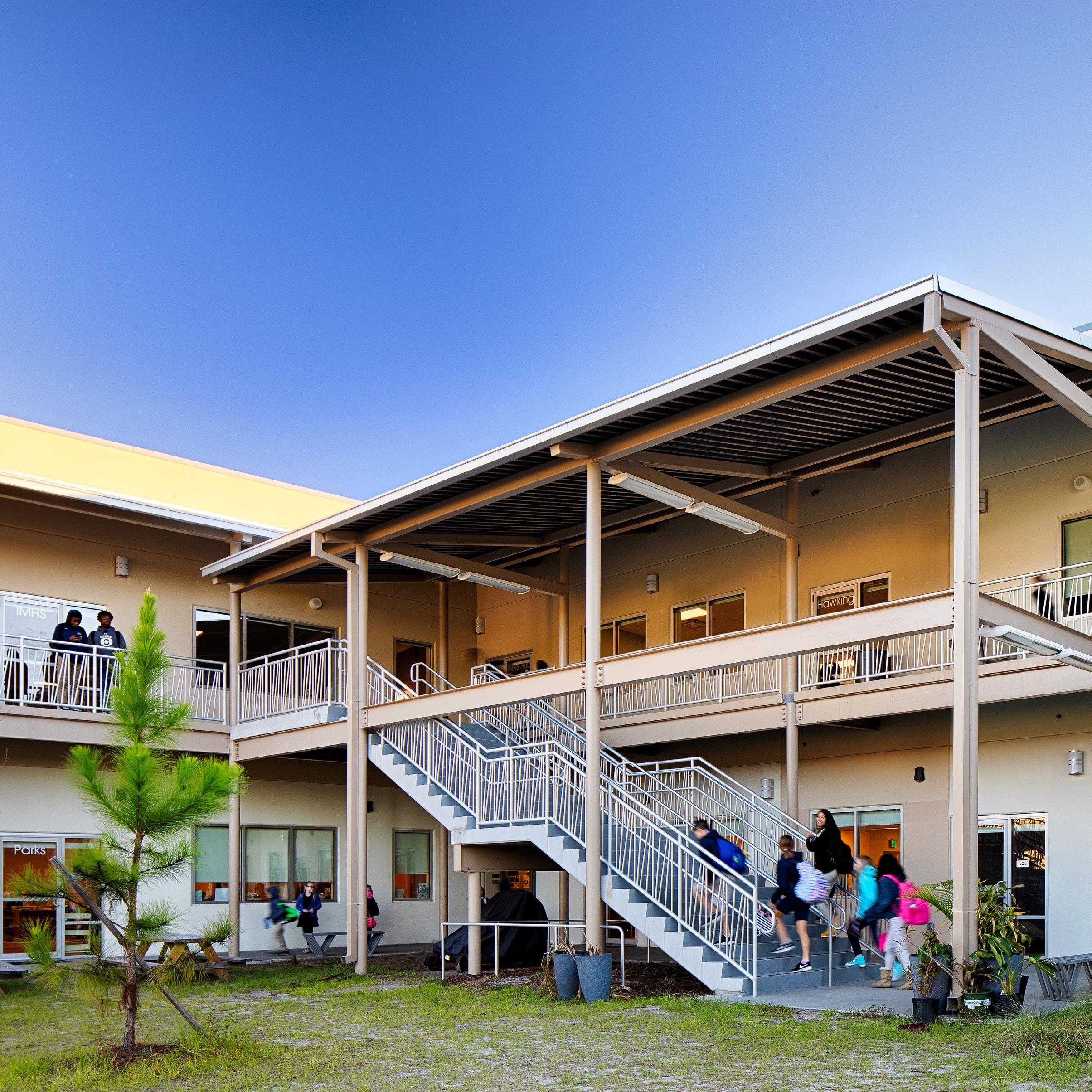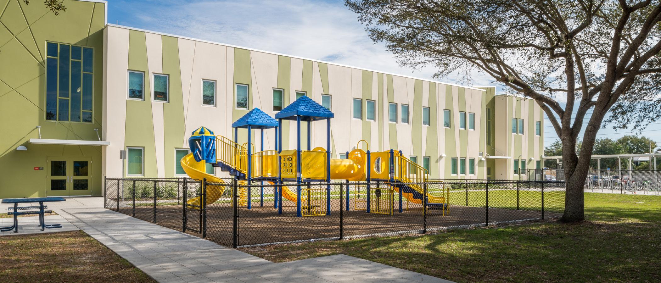 Tradewinds Elementary is a K 5 school with a 979-student Stations. The project involved the design of two one-story structures: a 103,000 SF academic “core” building and a 1,500 SF field structure. The core contains large multipurpose spaces for art, music, dining,and media events and is surrounded by a perimeter of “universal” classrooms – modules designed to accommodate all programs including kindergarten, primary, intermediate, exceptional education and skills laboratories.