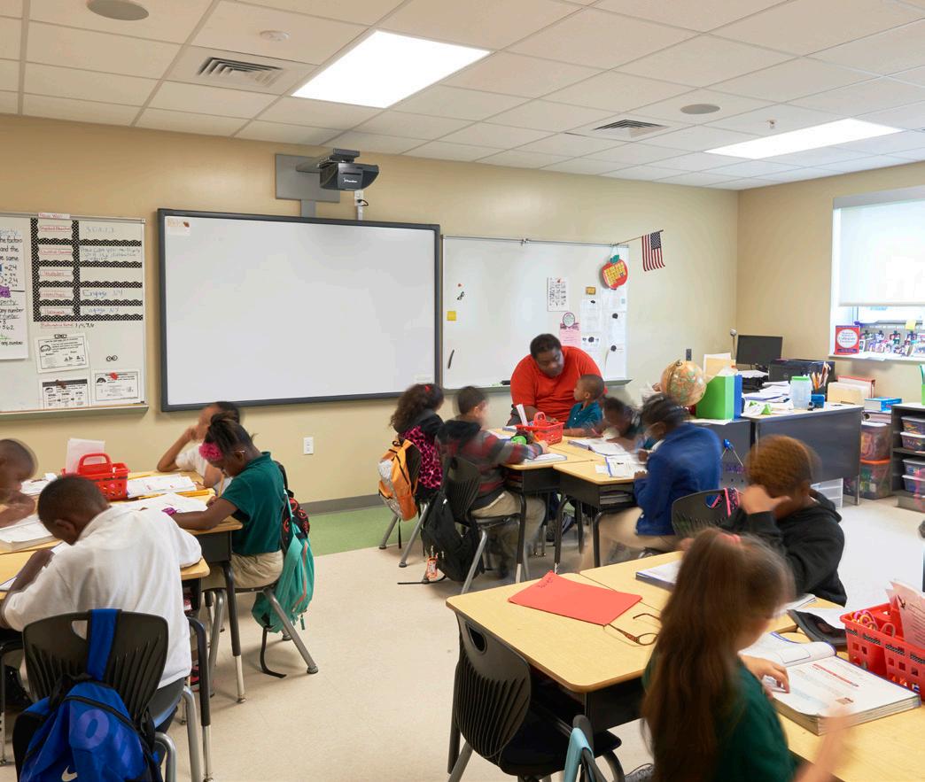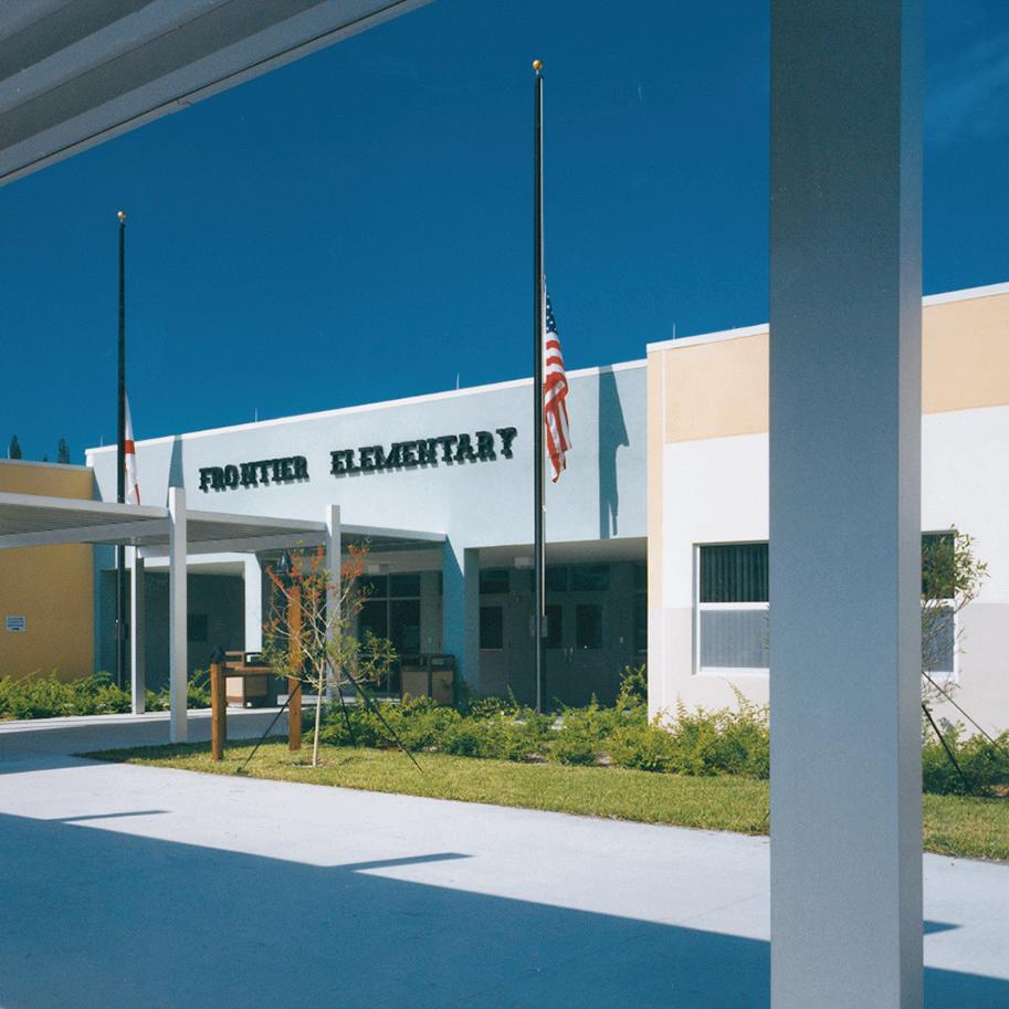 The school was designed with two onestory structures: a 103,000 SF academic “core” building and a 1,500 SF field structure. The core contains large multipurpose spaces for art, music, dining, and media events and is surrounded by a perimeter of “universal” classrooms – modules designed to accommodate programs including kindergarten, primary, intermediate, exceptional education, and skills laboratories. Structurally upgraded, the facility further serves as a hurricane shelter. Frontier Elementary’s major cost savings were the result of inventive site planning. Stratus suggested creating a five acre lake on the site from which fill could be used to raise the school’s elevation, a measure geographically critical for flood prevention.
