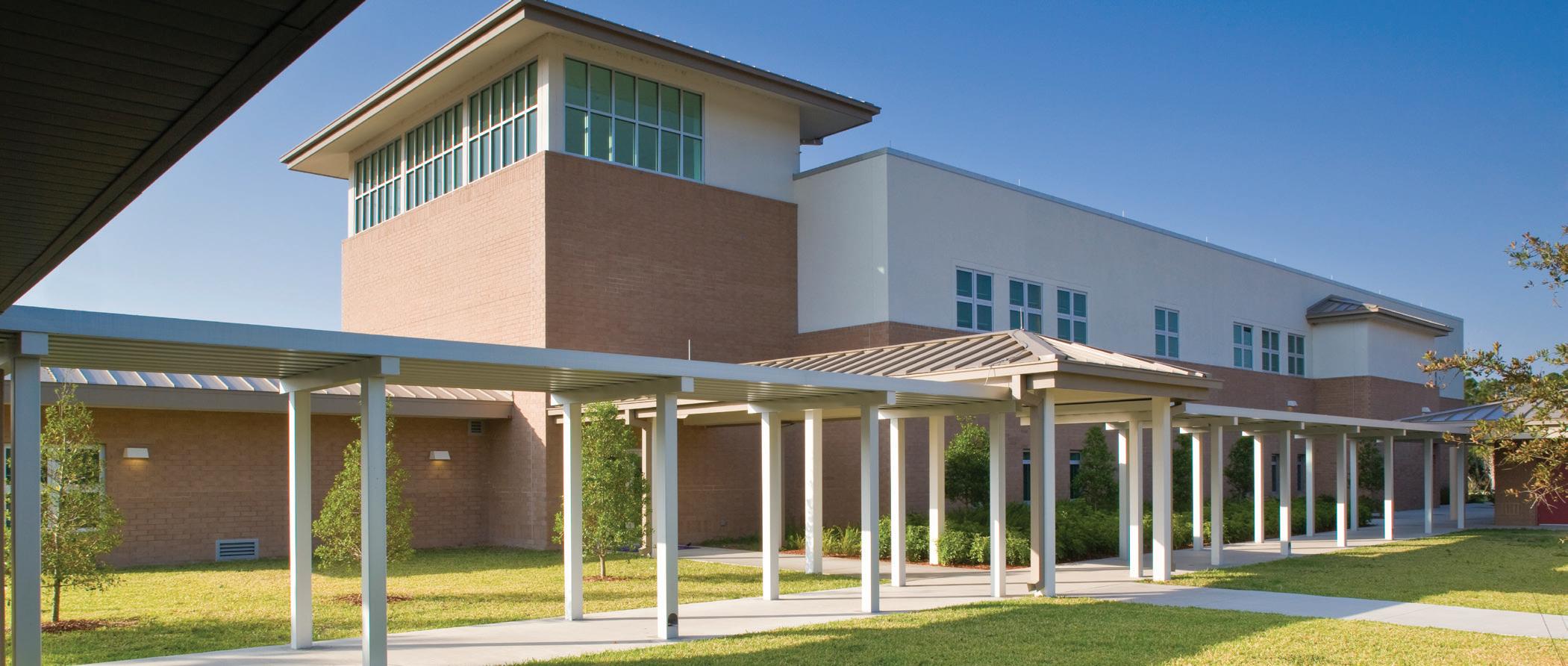 Grand Bay Elementary School is a compact prototype designed to expand to 1,150 student stations on a small 6.5 acre site. During the program validation phase, Stratus updated the exterior facades for community compatibility and created educational enrichment areas for 21st Century Learning while remaining in full compliance with the prescribed PK 5 elementary curriculum and to ensure student station funding compliance.