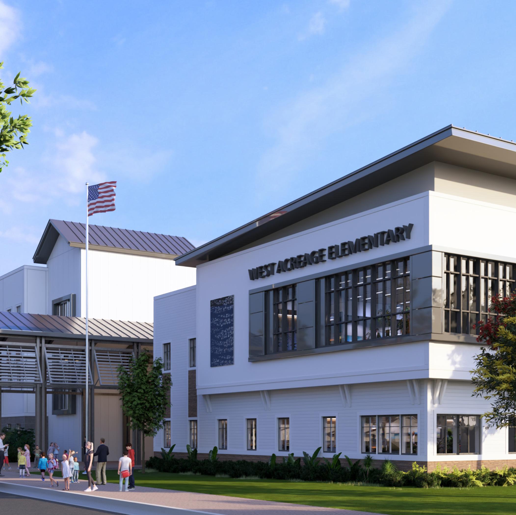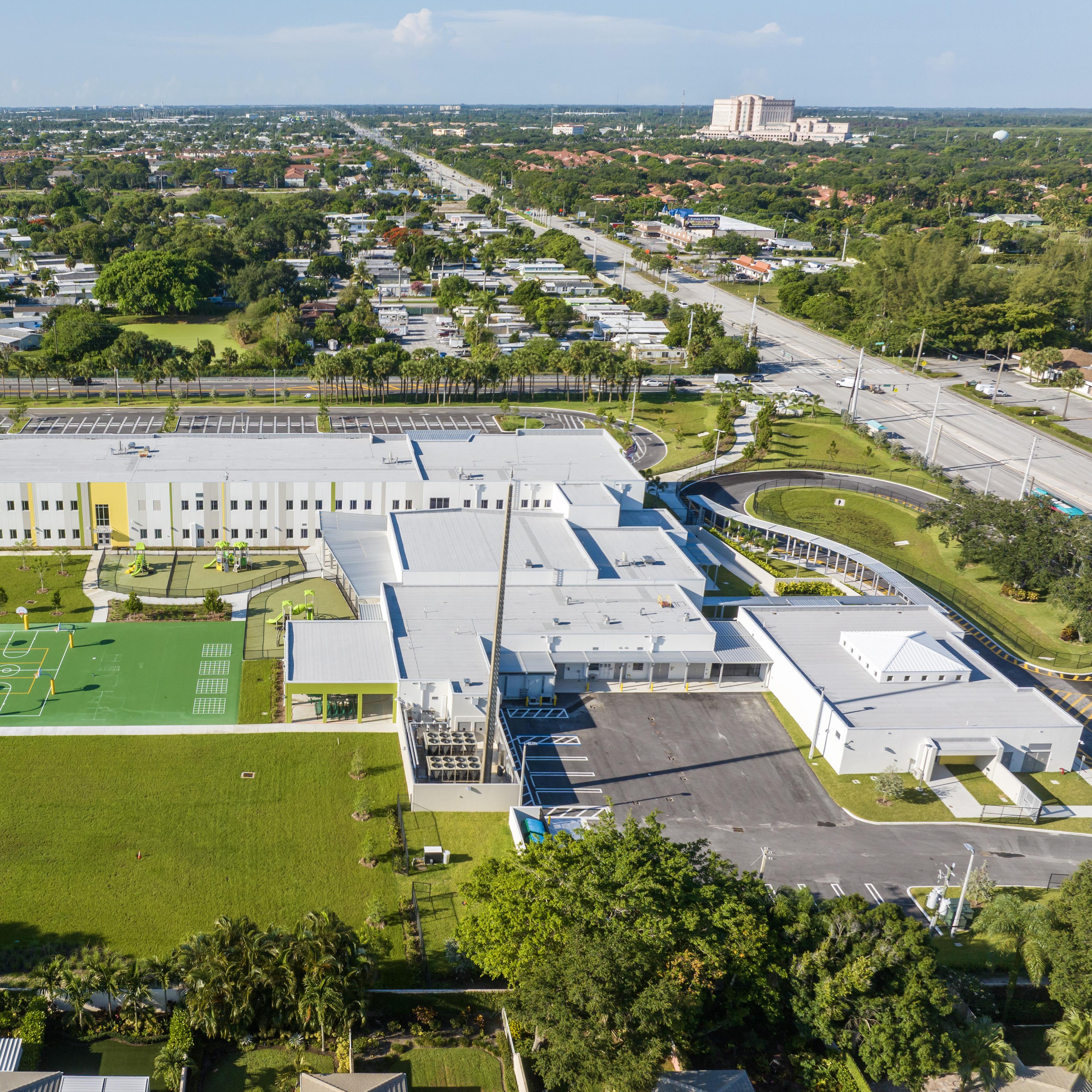 A compact, three-story, 970-student prototype designed for tight sites and phased replacement. Its adaptable footprint— modifiable to two or one story—let classes continue beside new construction. The DOE‑compliant school delivers efficient, flexible 21st‑century learning spaces, enhanced post-pandemic ventilation with compartmentalized HVAC and bipolar ionization, plus art, science, computer labs, ESE rooms, and renovated athletics areas with separate parent/bus loops. The prototype is now reused for West Acreage Elementary, a 971‑seat campus opening August 2025.