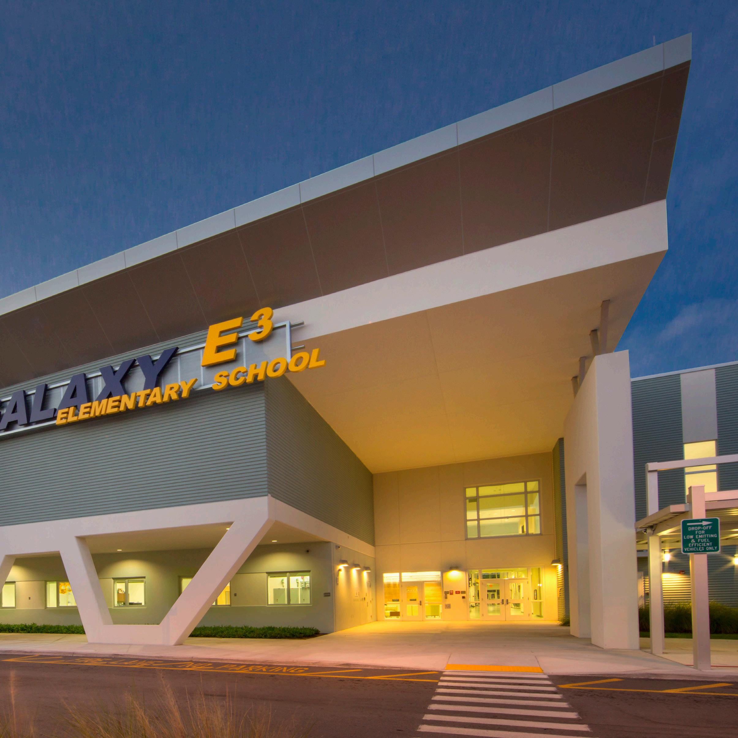 Galaxy E3 Elementary invented a new direction for K 5 instruction in Palm Beach County, the nation’s 11th largest school district. This is the first CHOICE (magnet) elementary school specifically designed to provide E3 learning to the District’s underprivileged and minority populations. The school curriculum focuses on Energy, Environment and Engineering and includes a focus on science and math. To complement the curriculum, the school was the first LEED® Platinum school in the country to integrate the curriculum into building and site design.