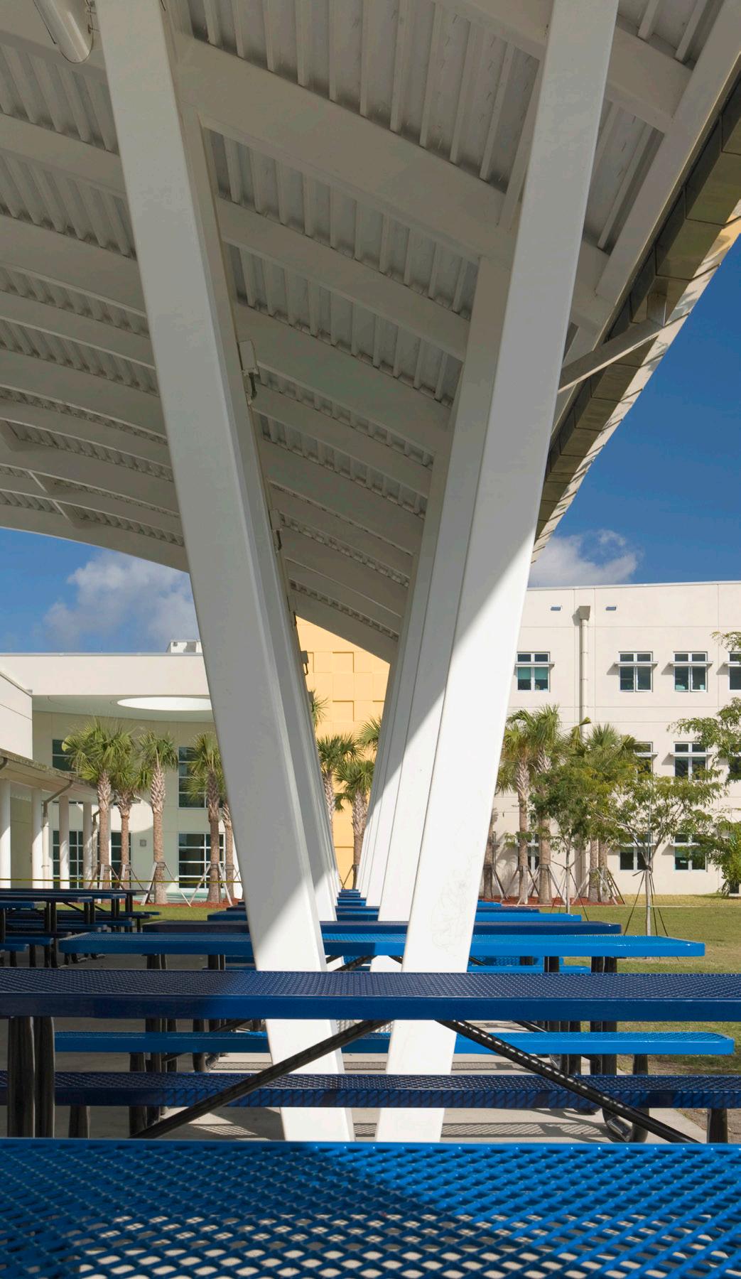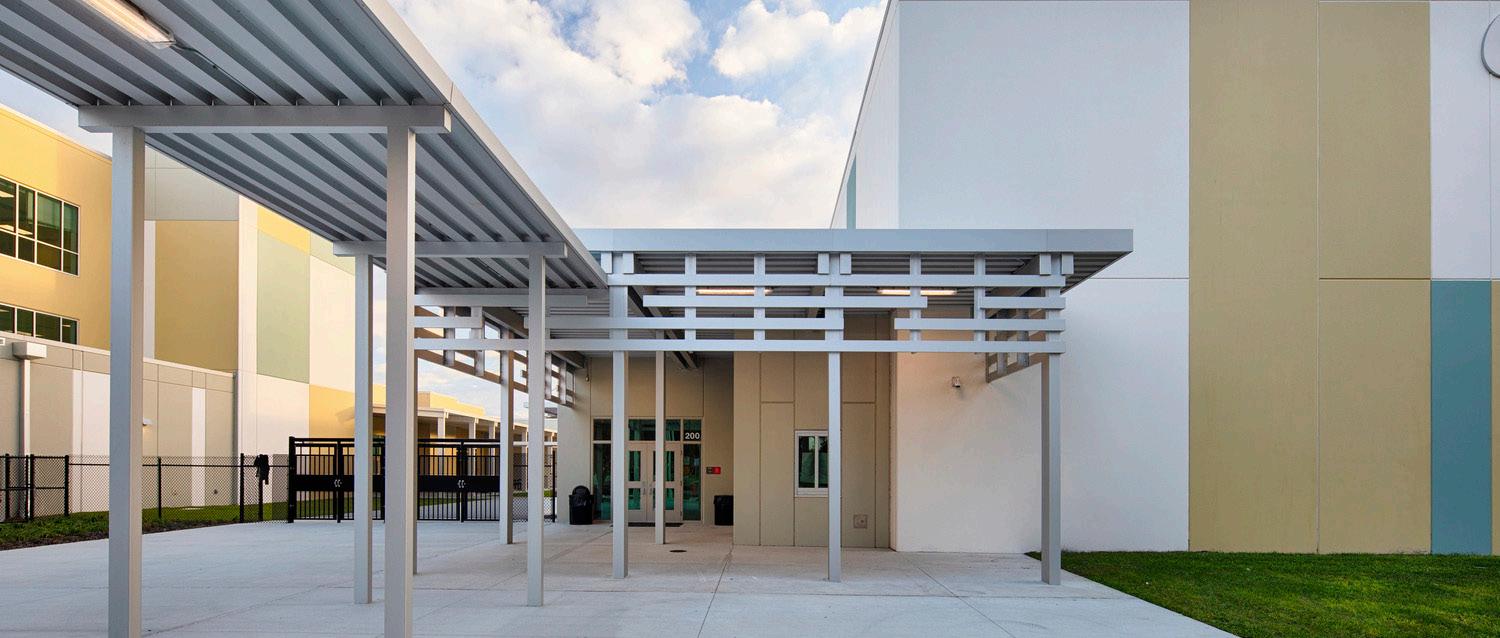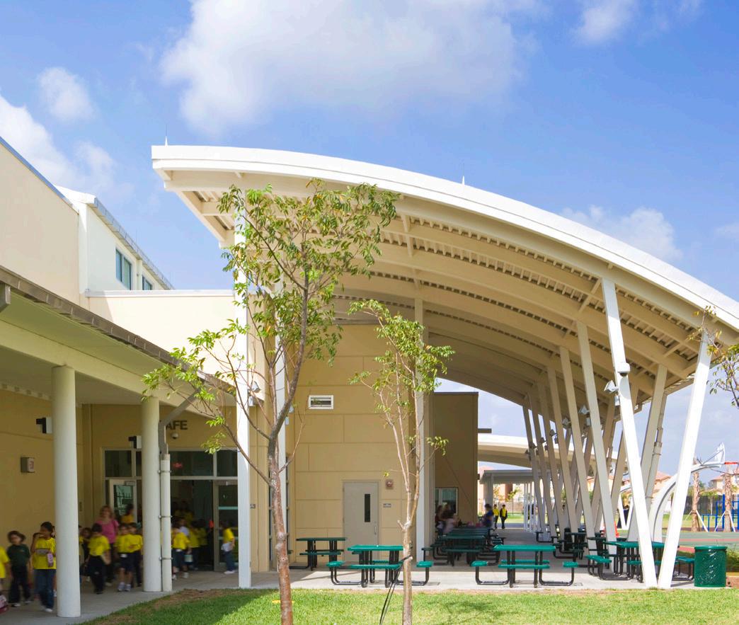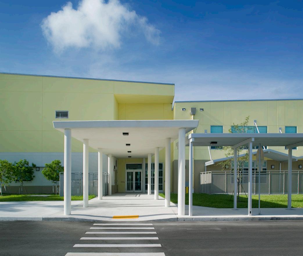 Arch Creek Elementary-Middle School is an adapted repeat of the original integrated Pre-K-8 facility designed for Miami-Dade County Public Schools. This school actually contains two separate facilities, an elementary and middle school, housed on the same campus. The schools are separated into two classroom wings, which are arranged in houses and are sprinkled with break-out collaboration areas, project rooms, wet areas and story-telling alcoves.