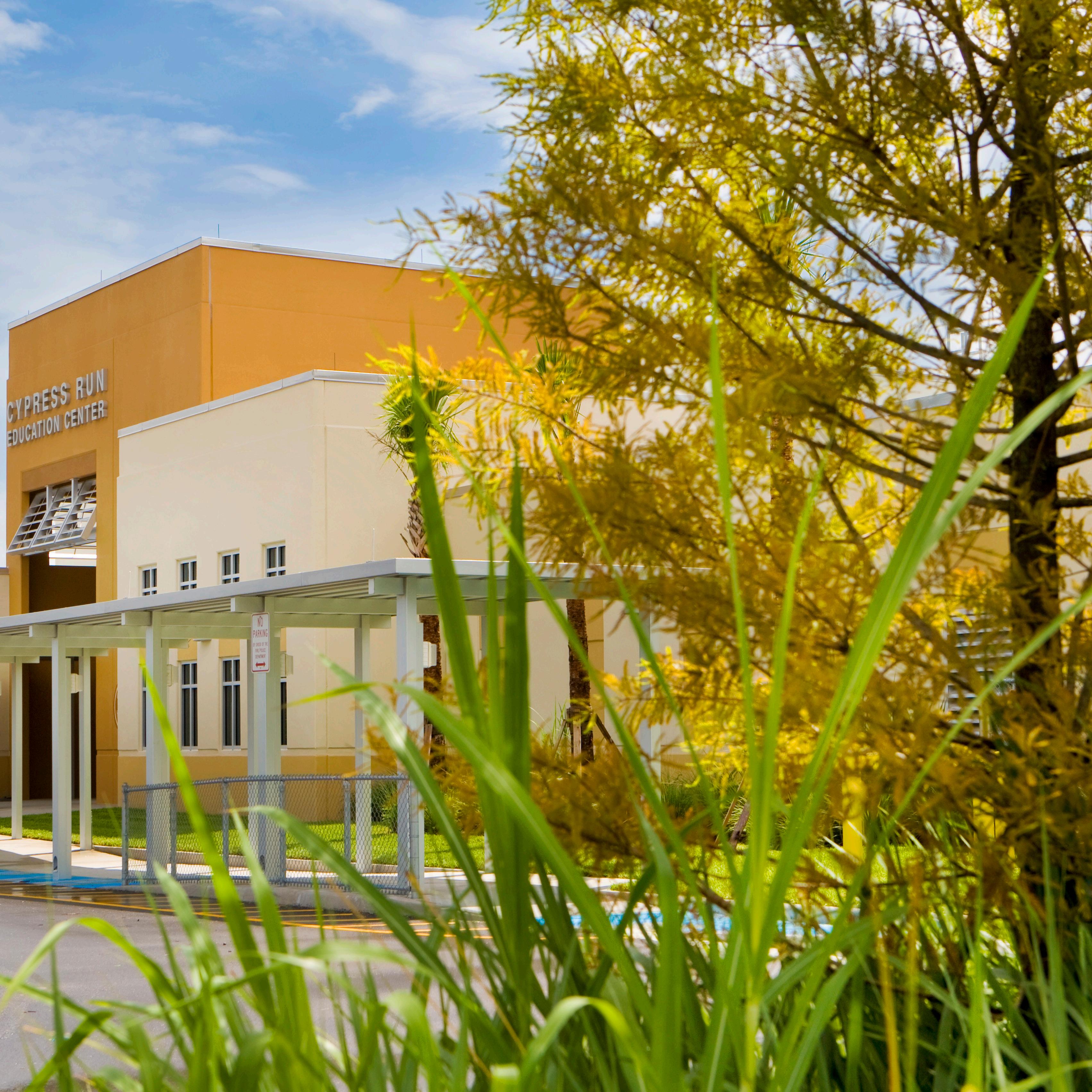 Cypress Run Education Center is a repeat of the Pine Ridge Education Center prototype and is an education and vocational training facility for troubled youths. Specific adaptations for this school include the addition of agricultural and culinary arts programs. The look and feel of the replacement school is one of optimism and progression while the building design reinforces order, discipline and control. The school incorporates facilities for grade levels K-12, each meeting the needs of their specific educational goals while providing a place of safety, security and behavior management through integrated site and building design.