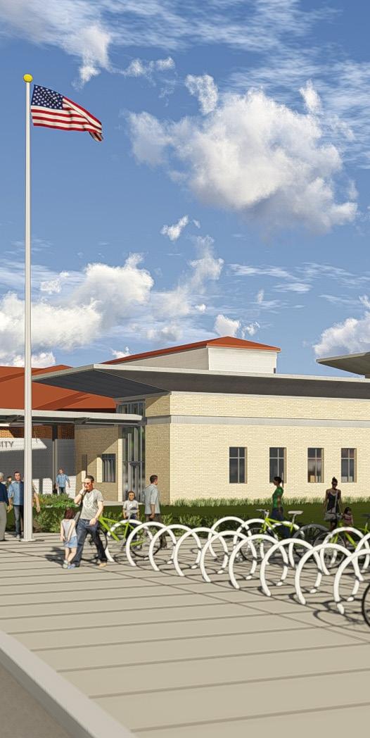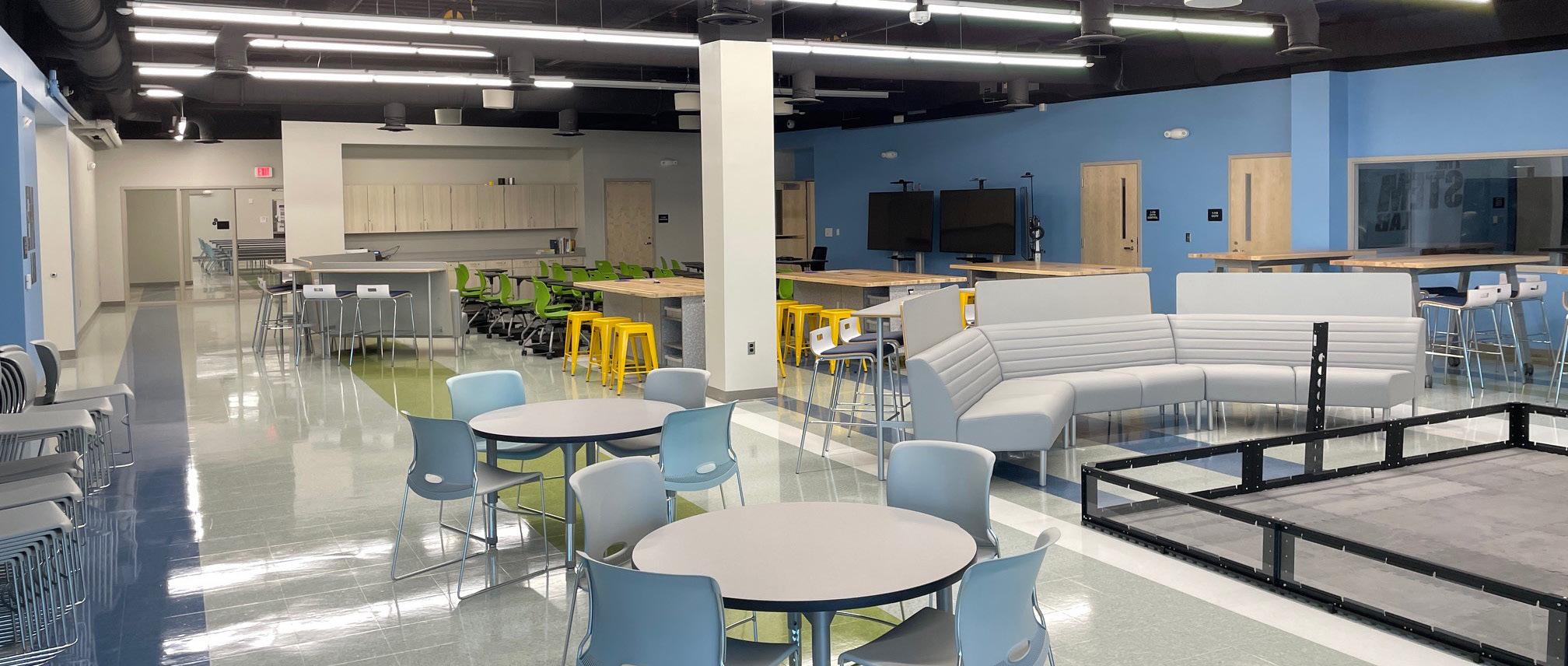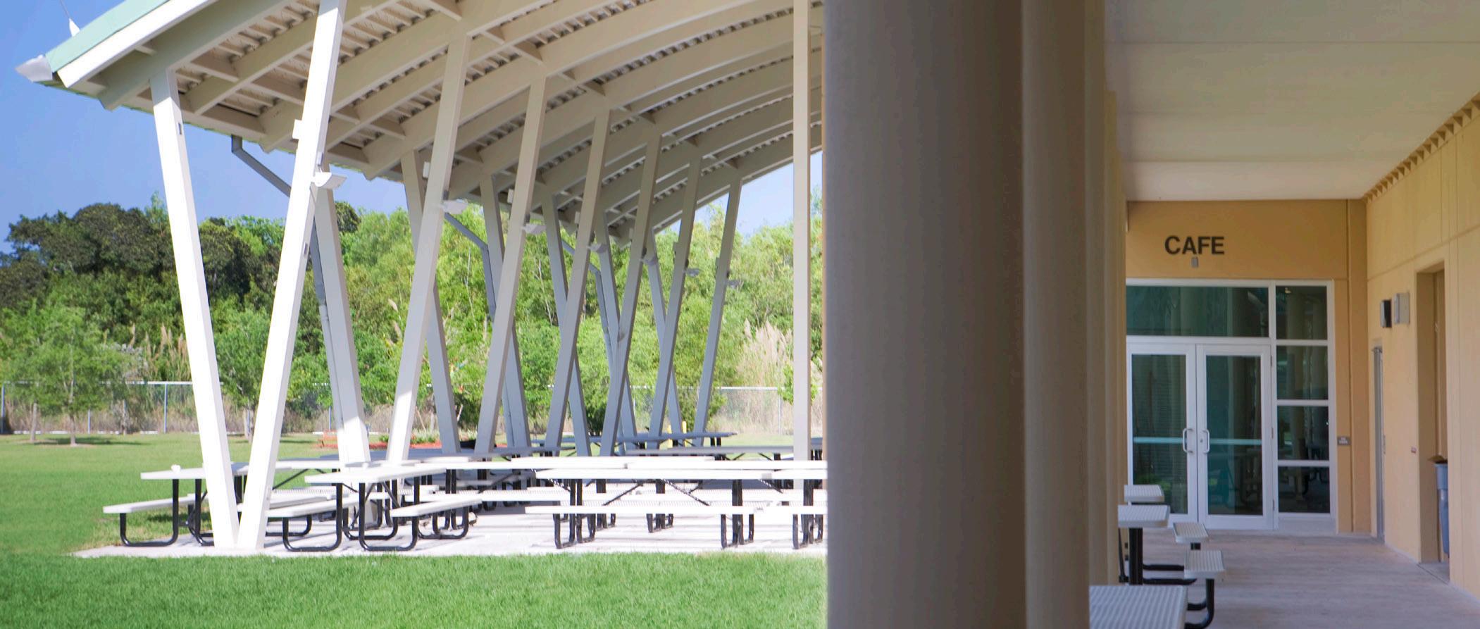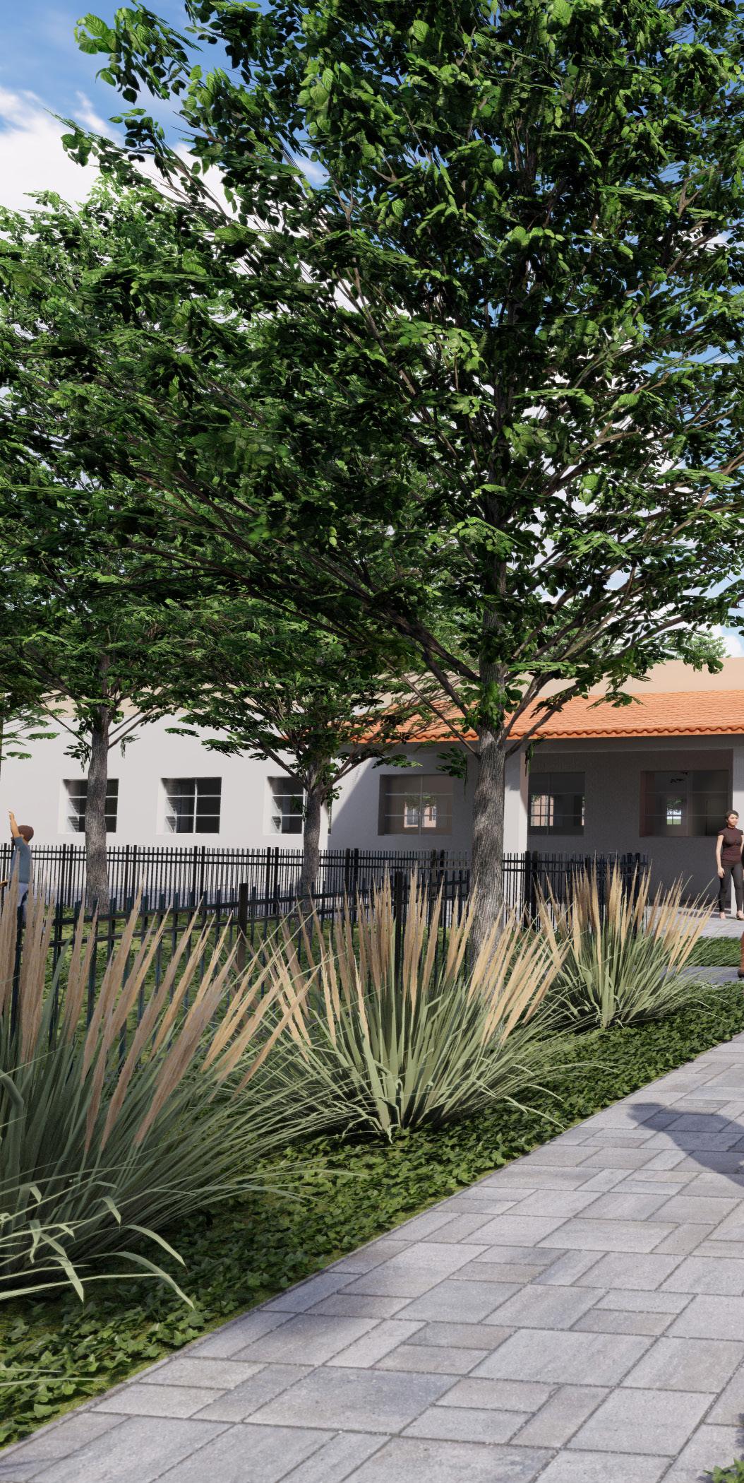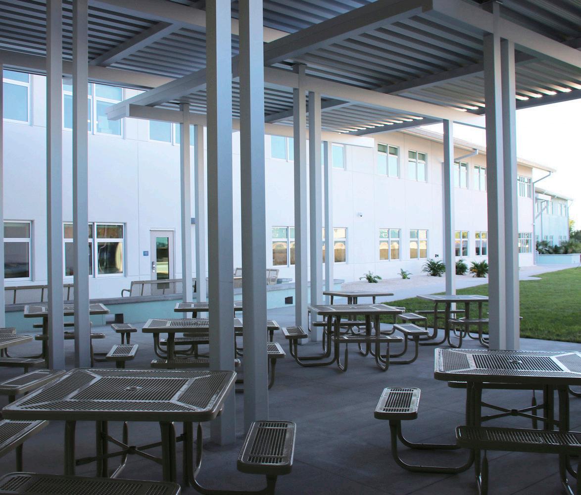 Stratus created a seamless campus via a dynamic site plan which emphasizes movement. The new school’s design creates an easily secured and circulated campus. A central entry plaza has been created to funnel students and visitors through administration. A courtyard with art patios, an elevated performance stage and shaded outdoor dining areas with benches and trees has also been included in the design.