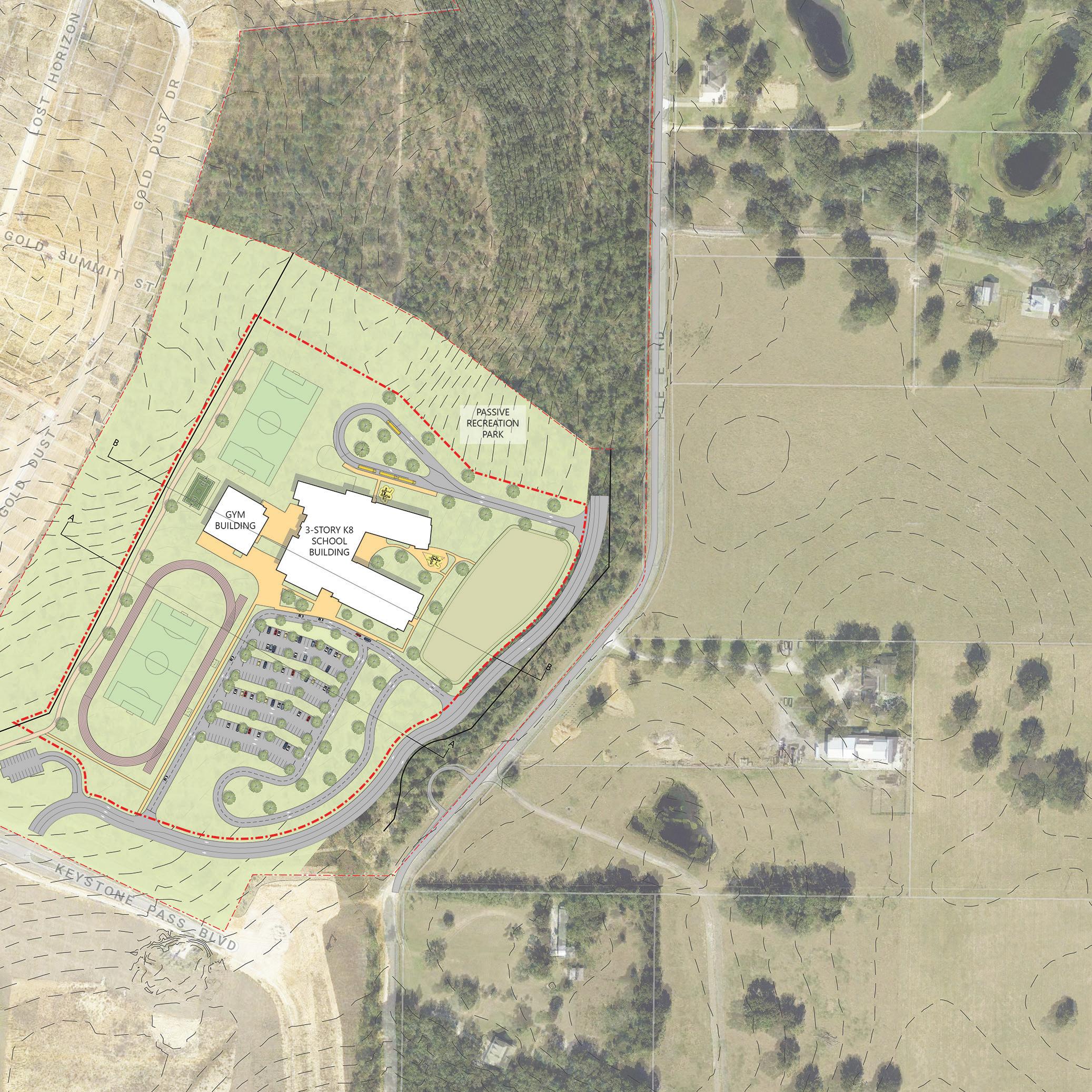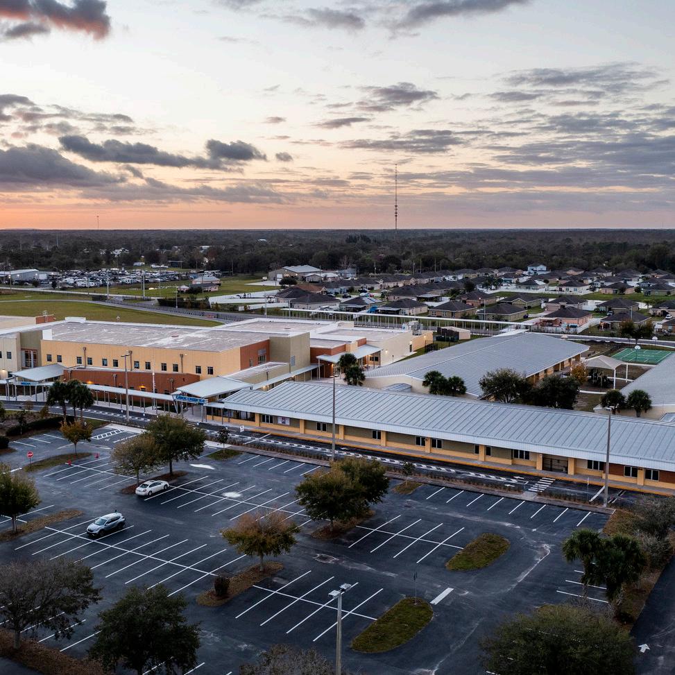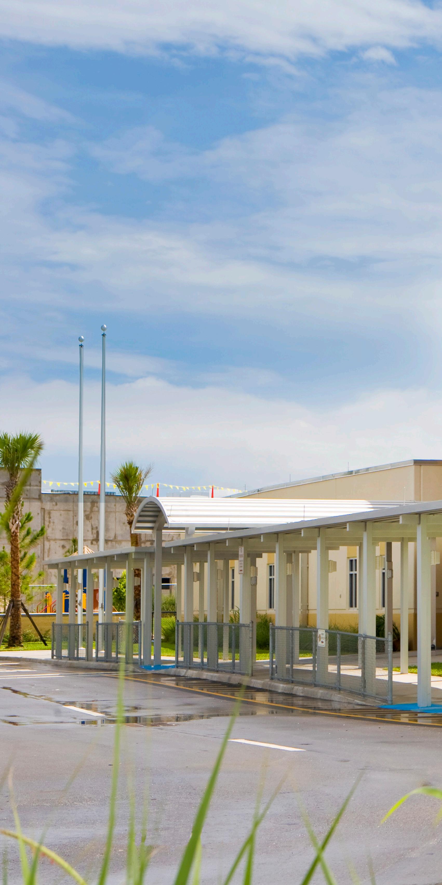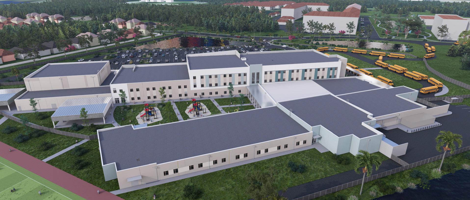 Pasco County Public Schools engaged Stratus to design a state-of-the-art K-8 school on a 22acre site within a large residential community. Currently under construction, the school is based on a proven three-story prototype used across Central Florida, delivering a compact, efficient, and future-ready facility. Beyond site adaptation, the design includes comprehensive master planning to create a “Learning Village” campus with integrated trails connecting to surrounding neighborhoods. Features include academic buildings, CTE labs (including aviation), a media center, gymnasium, dining facility with stage, and administrative offices. The project also includes collaboration with developers for utilities, access easements, stormwater systems, landscaping, and off-site utility connections.