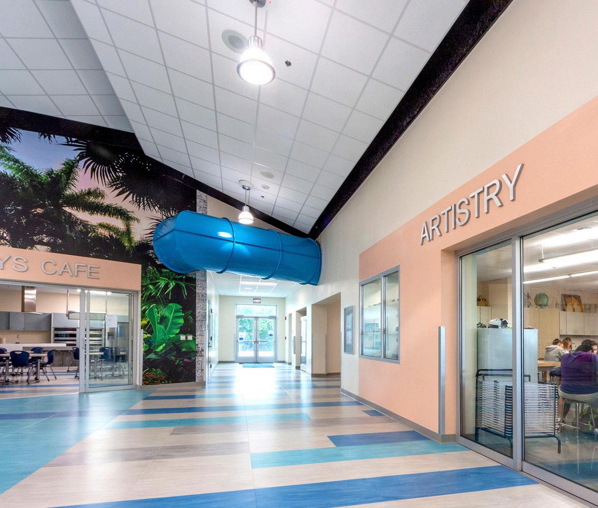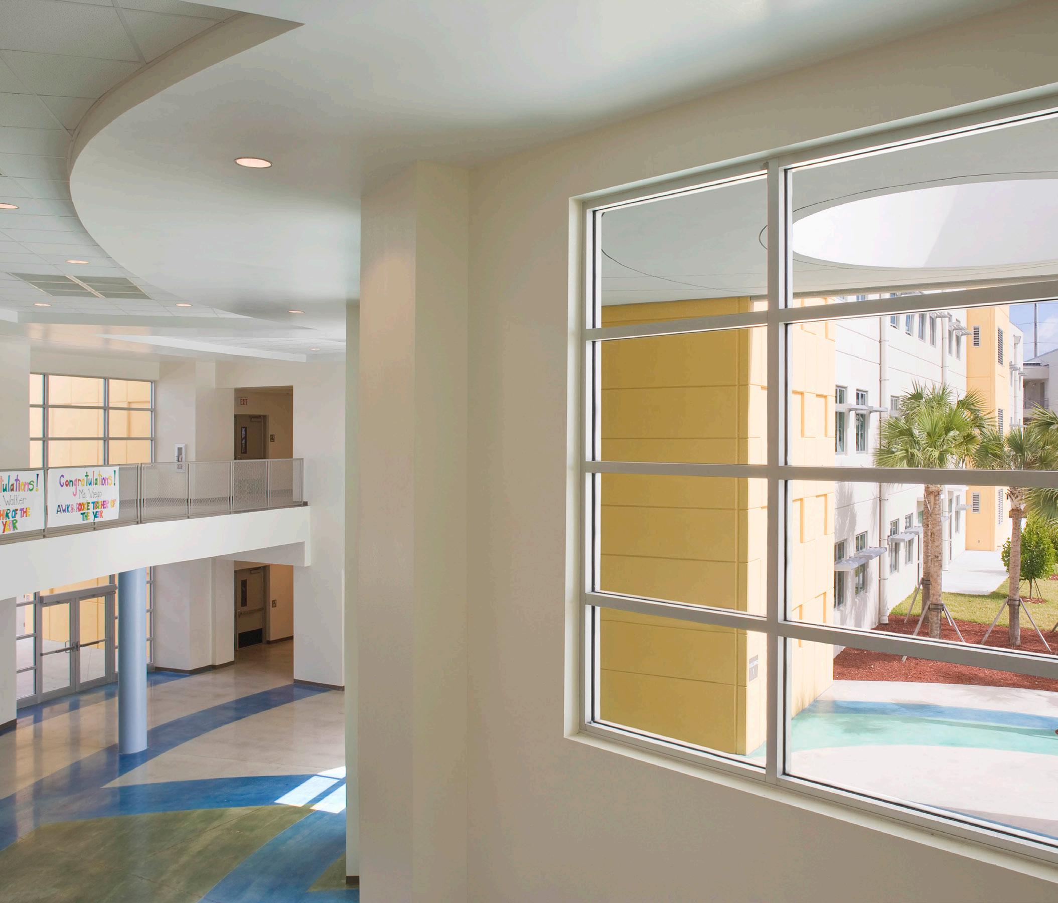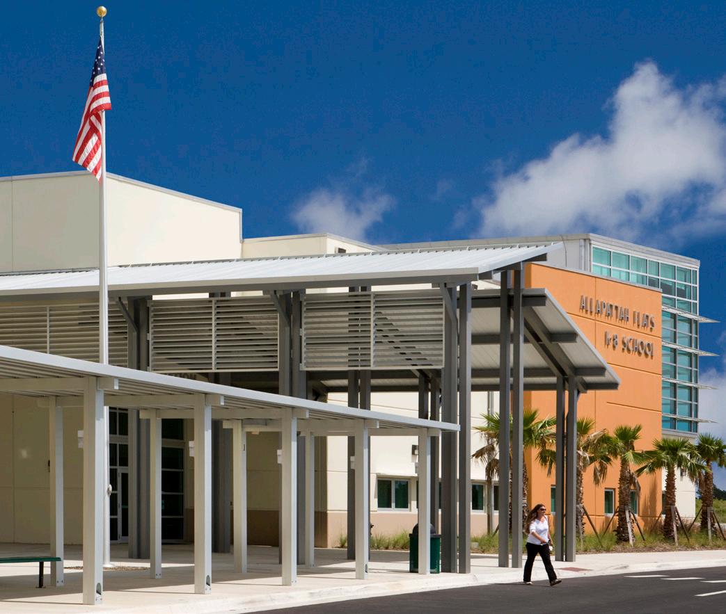 The first 21st century school designed for the Monroe County School District, the new school will inspire collaborative learning for the next generation of PK-8 Florida Keys students. The new two-story, 100,000 square foot school was built according to the Green Globes assessment standard for sustainable building design, operation and management.
