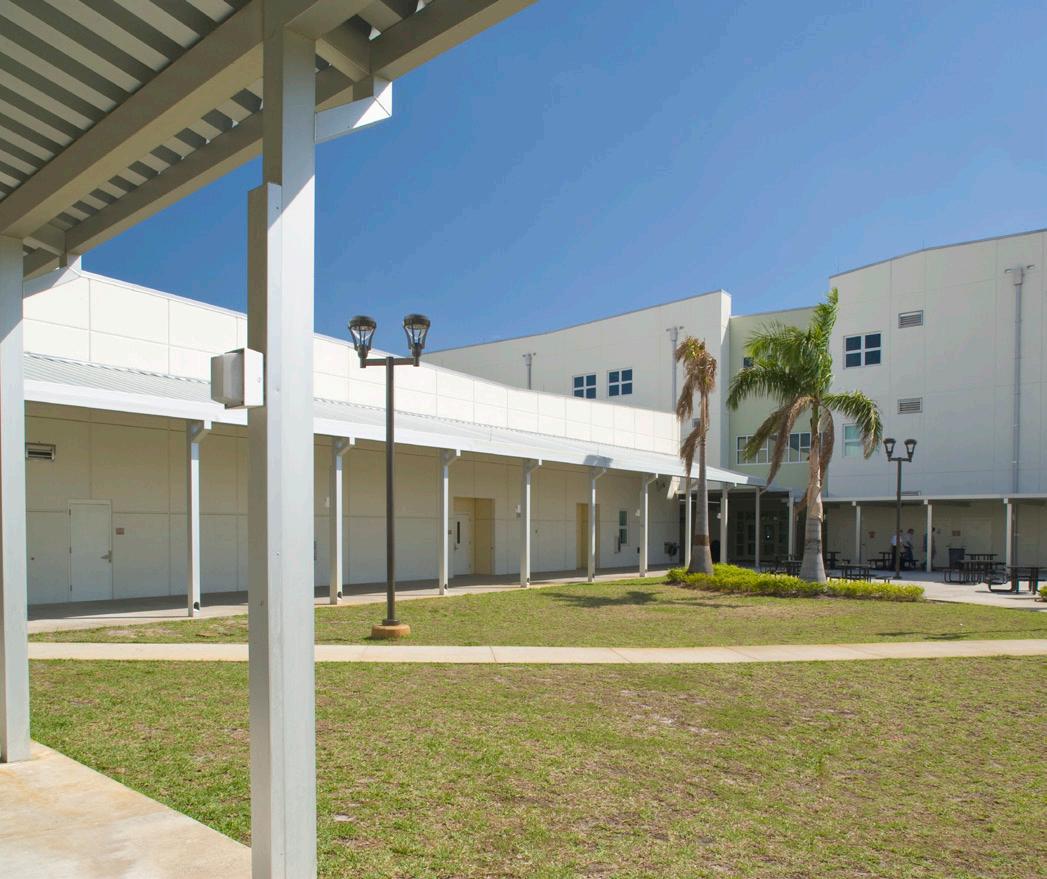 Stratus developed the facilities list and program for the new K-8 in conjunction with St. Lucie district staff. The prototype design delivers a school comprised of a series of “protoparts:” modular classroom buildings, an assembly building and an administration/ media building linked by “connectors” containing staircases, mechanical rooms, toilets and other support spaces. A variety of connector modules is provided creating classroom buildings which can respond to varying site conditions and configurations.