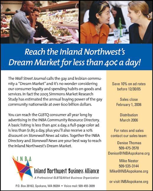 Spokane’s GLBTQA community has had a banner year. The Stonewall salutes our successes (see overview, page 4) and invites readers and friends to stand tall with us as we look to the inevitable challenges of 2006.