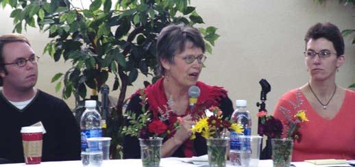 Panelist Lorin Miller, a transgendered mental health professional, raised questions about due process and our legal system. “There are few in this world, or in this audience, that don’t have a skeleton in their closet.” She noted that “Mr. West is currently wearing the Scarlet Letter.”