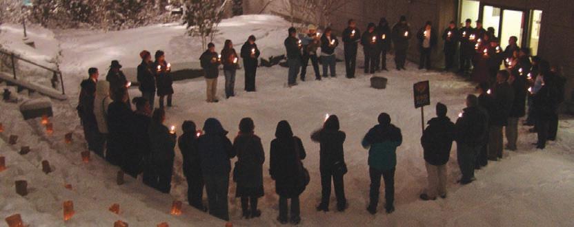 About 70 people braved a snowstorm and icy roads Dec. 1 to participate in the 2005 World AIDS Day candlelight vigil at the Museum of Arts and Culture in Spokane’s Browne’s Addition.