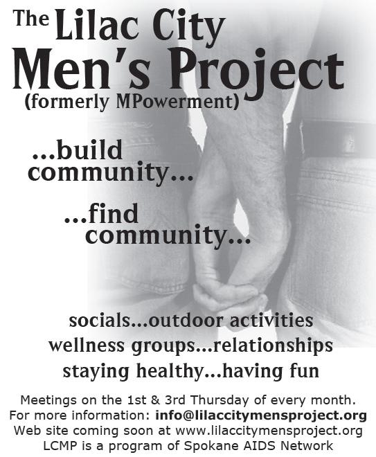 The Lilac City Men’s Project is but one organization, one bone in this GLBT community’s diverse body. To make our body walk and breathe will take a lot of work. But it will be worth it when we can all look around, smile at each other, and sigh “I’m home.”