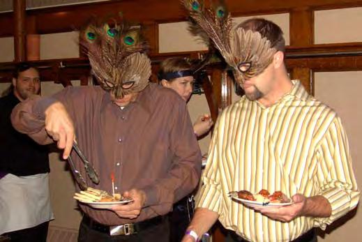 Photo Above Left: Michael Wernz and Michael Nestor pose at the Ball. Nestor later won the award for Best Hand Made Costume (Nestor made both costumes). Photo Above: Masquerade Ball partiers celebrate to the sound of Milonga Band at CenterStage.