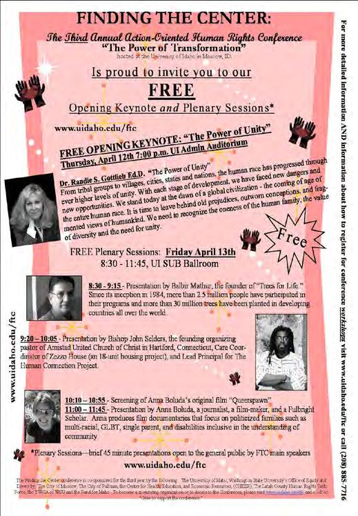 “We are very excited about the two upcoming commitment ceremonies we have planned. One will occur this summer, and the other is on our fall schedule.” Pastor Castro-Lang advised, “We get to know the couples; where they are in their relationship as well as in their spiritual journey, just like any other couple.” In June, Johnston will be conducting a commitment ceremony for two local women. The couple, who were unavailable for comment, have been together for 7 or 8 years and will “return to Spokane in April or early May from the Southwest.” Castro-Lang will perform the holy union, planned for early Octo-