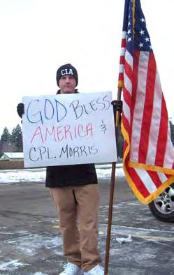 SPOKANE, Wash - Braving cold-numbing temperature, Drew Sweatte gathered supporters to counter-protest the potential presence of Westborow Baptist Church’s homophobic funeral picketers at the funeral service of Marine Cpl. Darrel James Morris. The service was held at Morris’