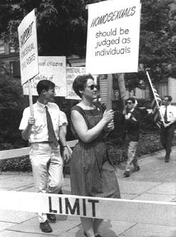 In February, the gay and lesbian community suffered an immeasurable loss. Barbara Gittings, a leader for more than fifty years in the struggle for gay rights, died of breast cancer at the age of 75. Ms. Gittings was a founding member of the New York Chapter of the Daughters of Bilitis, and she began leading protests in Washington, D. C. in 1965. She and a small number of other gay men and lesbians—dressed in “gender-conforming” suits and dresses—marched in front of the White House with signs demanding equal rights for homosexuals.