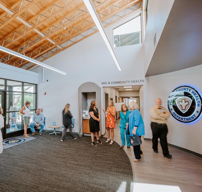 The county purchased an existing daycare to demo and transform into offices and clinics. Renovated interior spaces will receive new finishes and a fresh coat of paint, while two small additions include a metal garage drive through for immunizations.